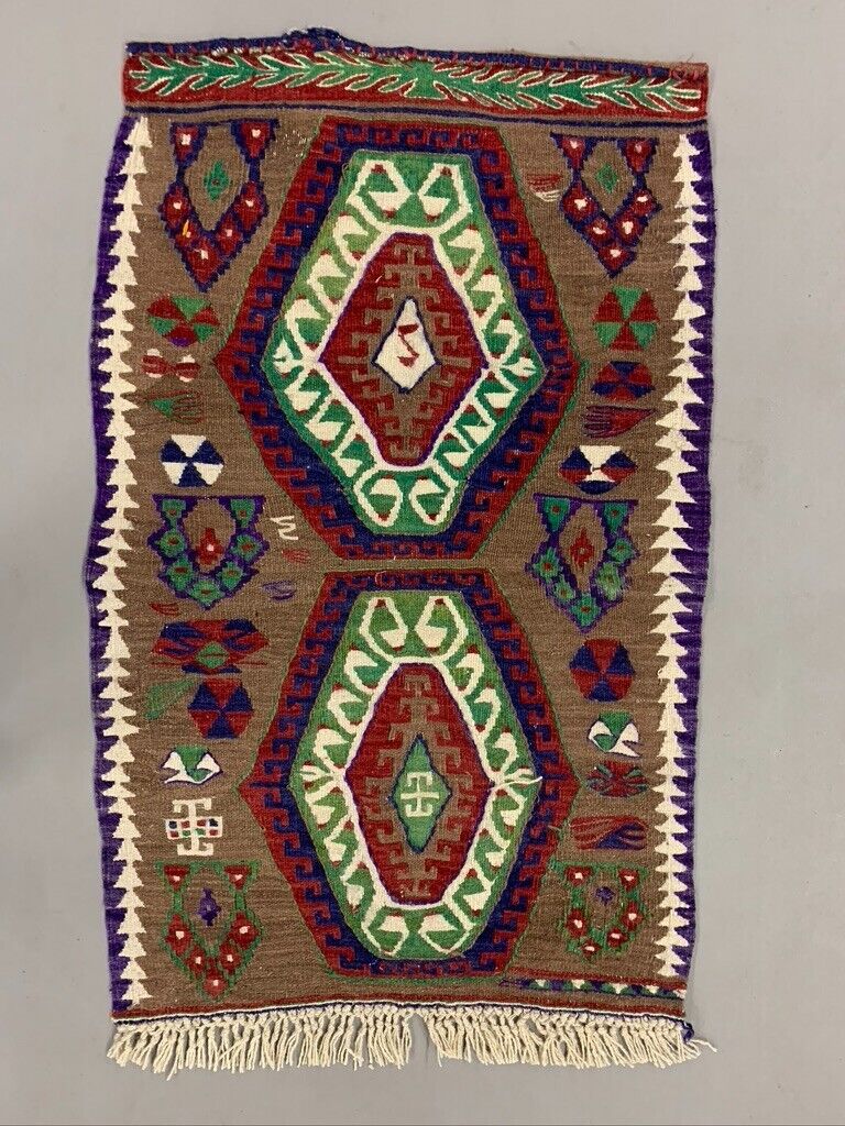 Small Vintage Turkish Kilim Rug 98x80 cm Wool Kelim