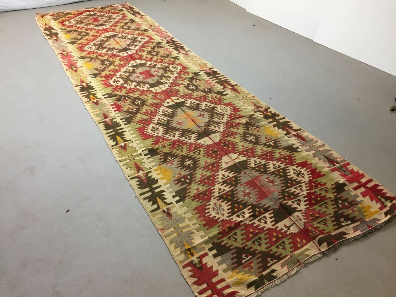 Antique Turkish Kilim Rug Runner shabby old country home Kelim 413x127cm Large