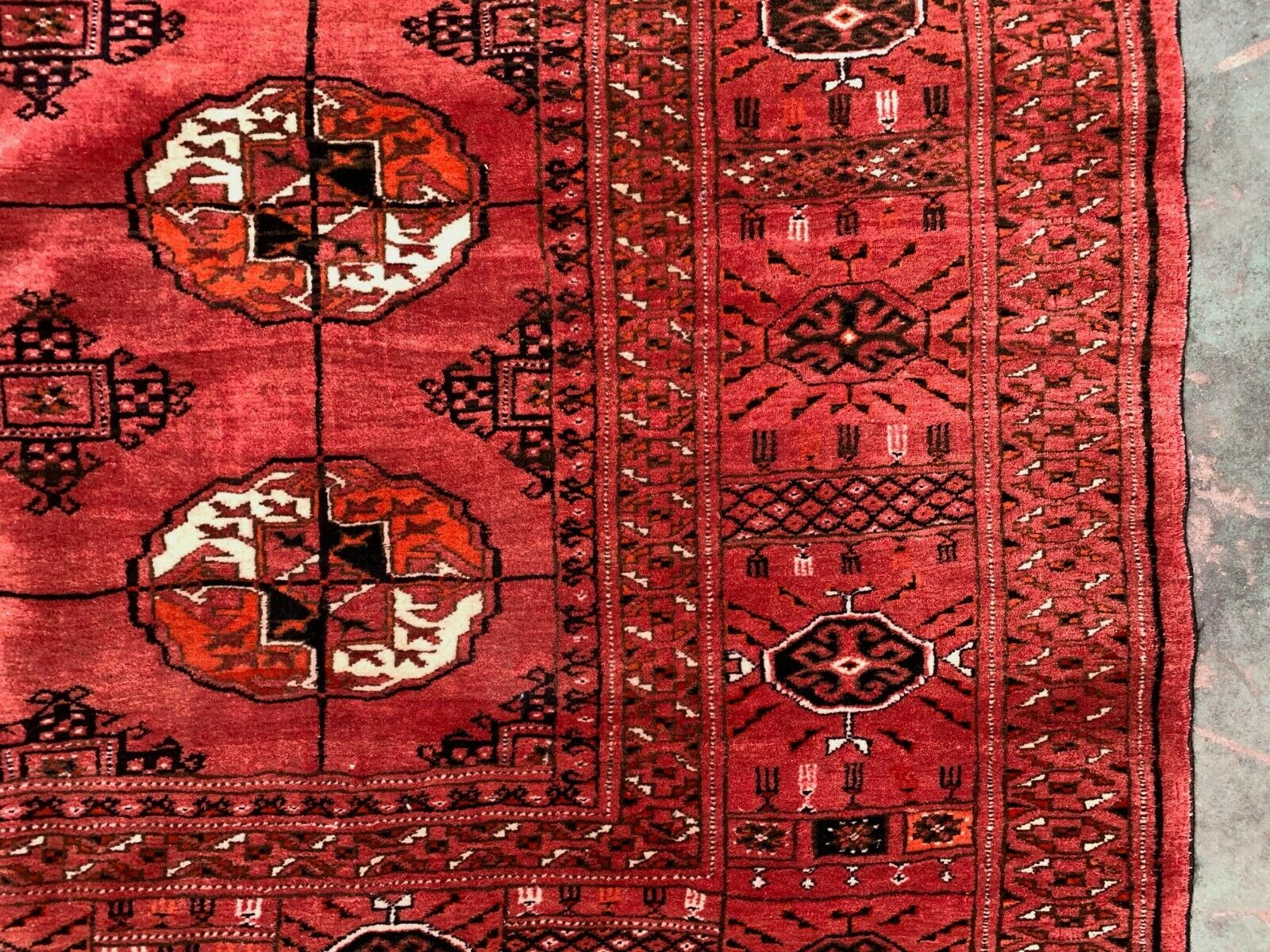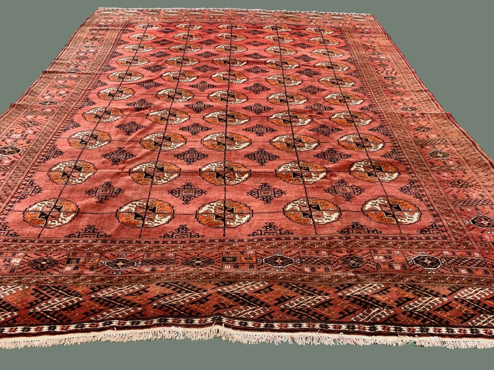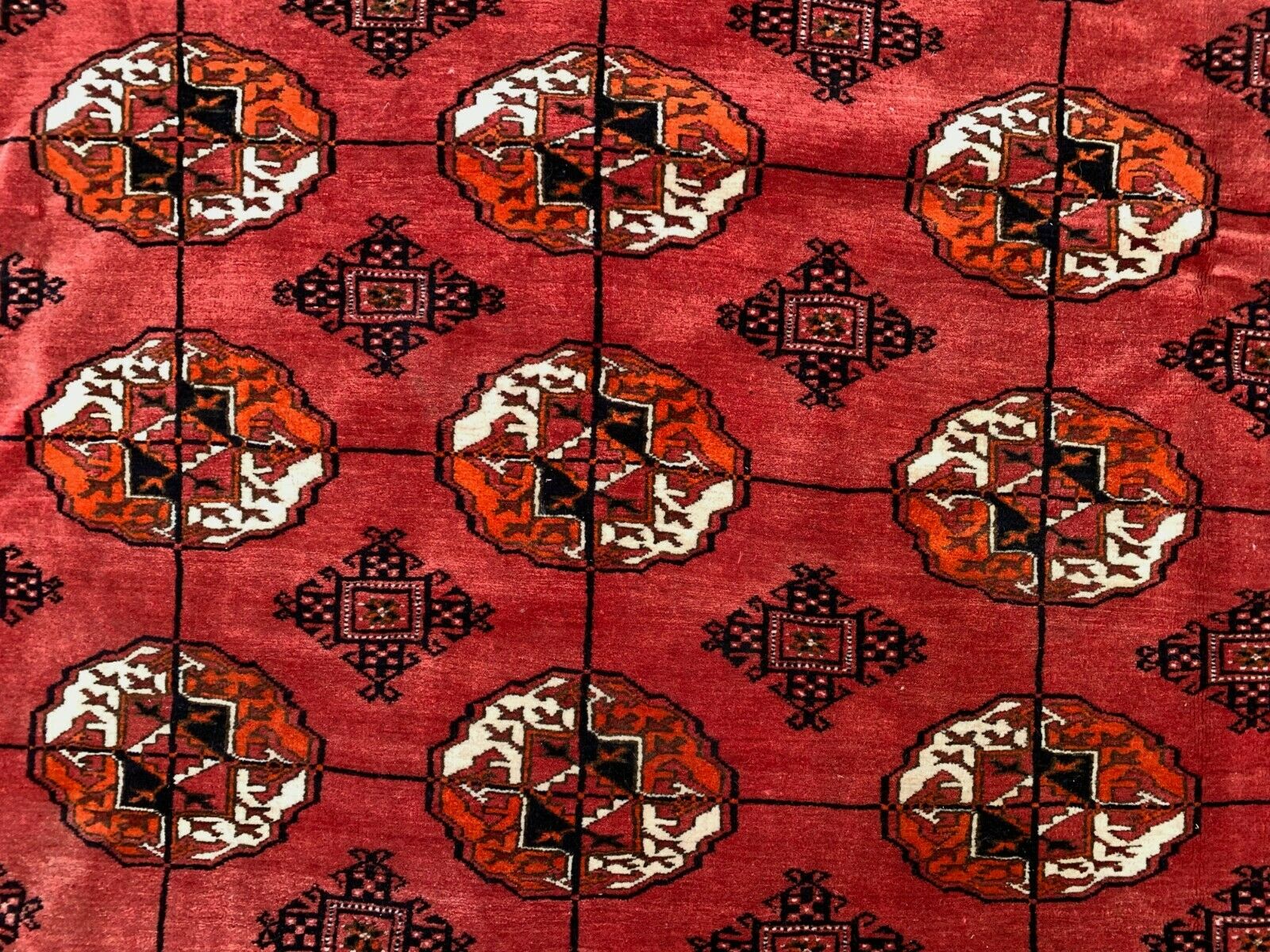 Antique Turkmen Tekke Main Carpet, 280x230 cm Turkoman Bokhara Red Black Beige