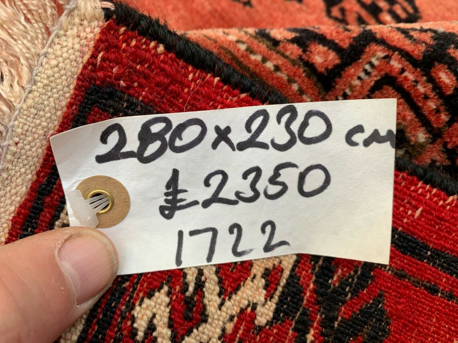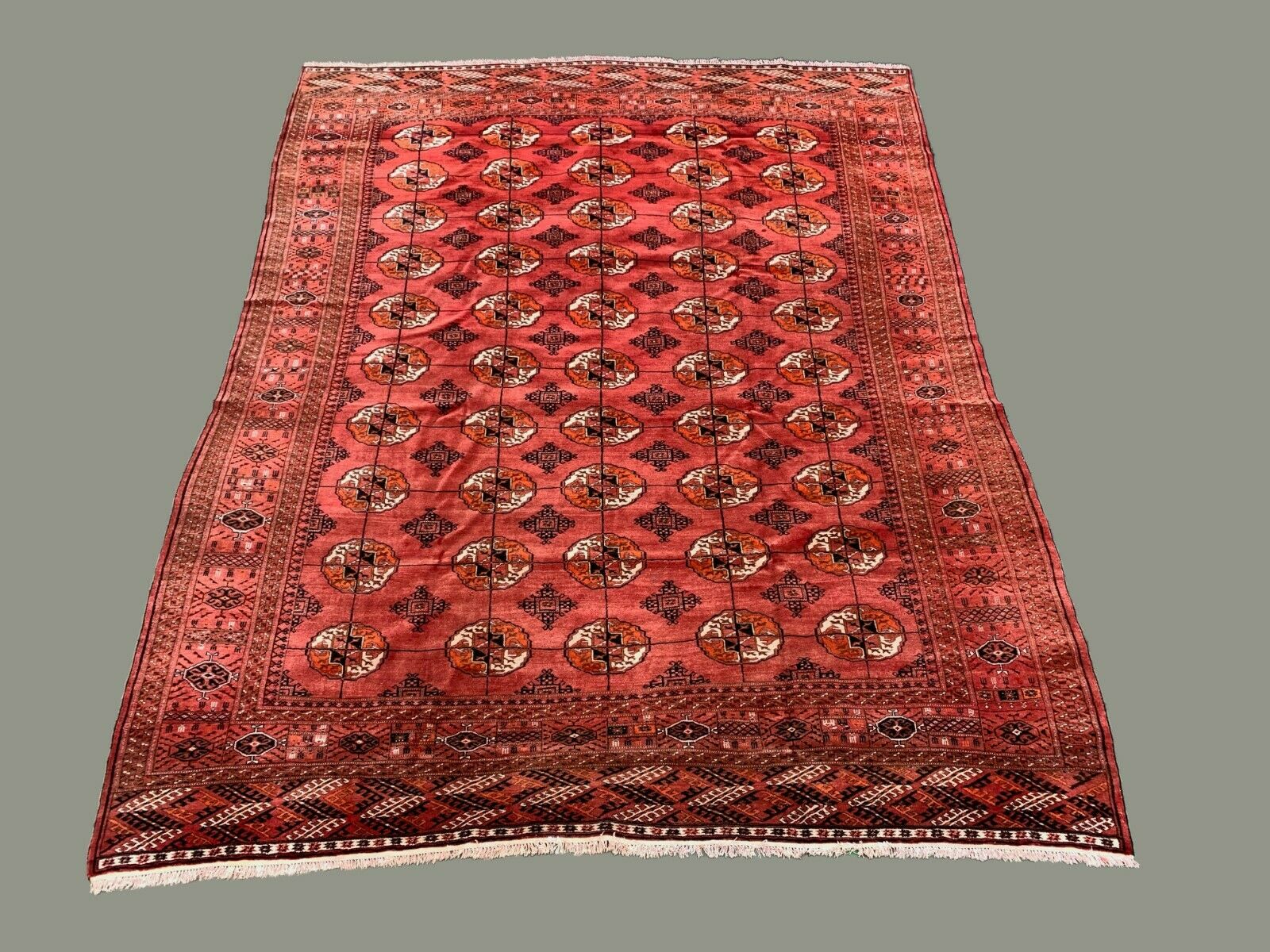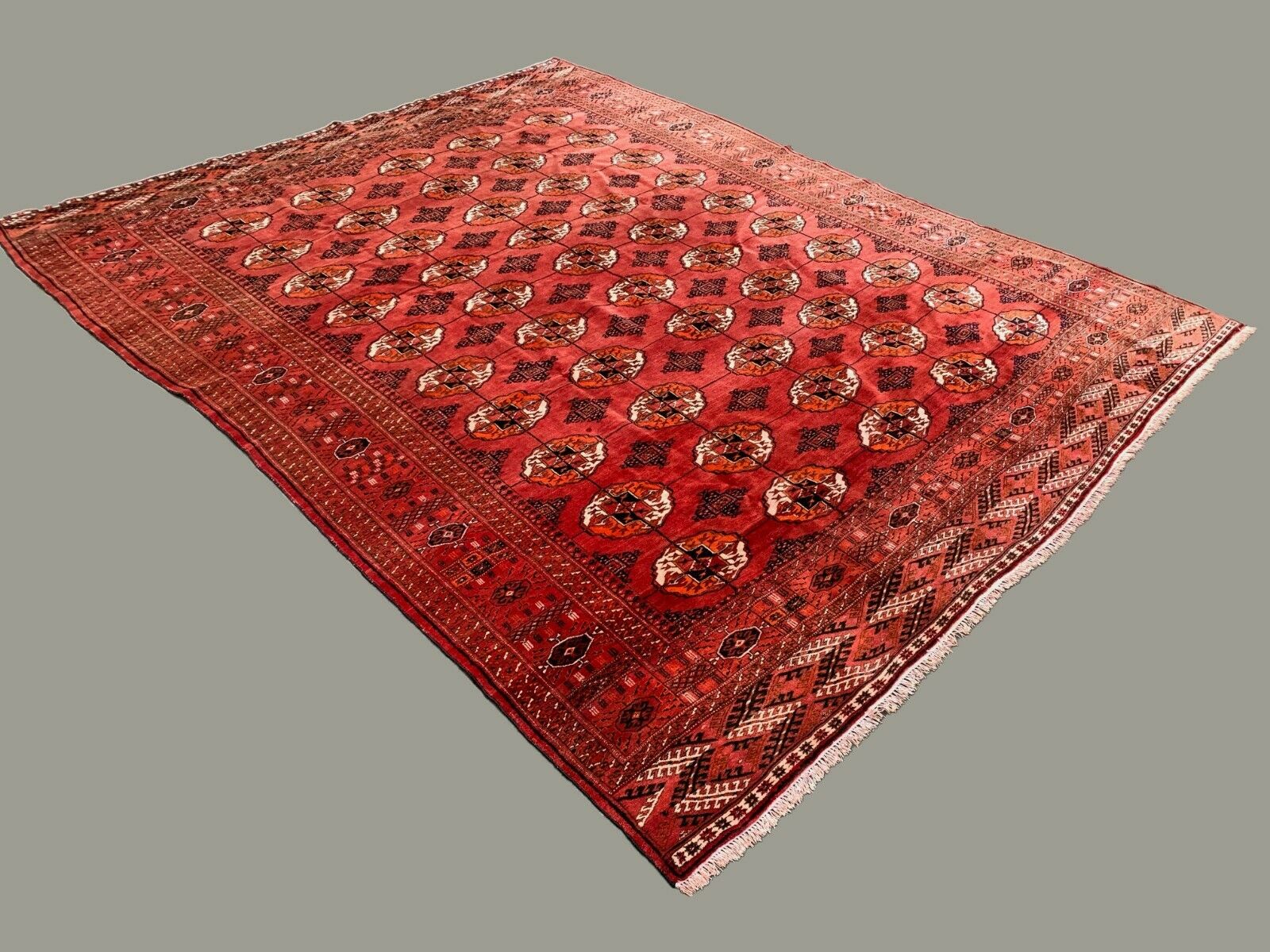 Antique Turkmen Tekke Main Carpet, 280x230 cm Turkoman Bokhara Red Black Beige
