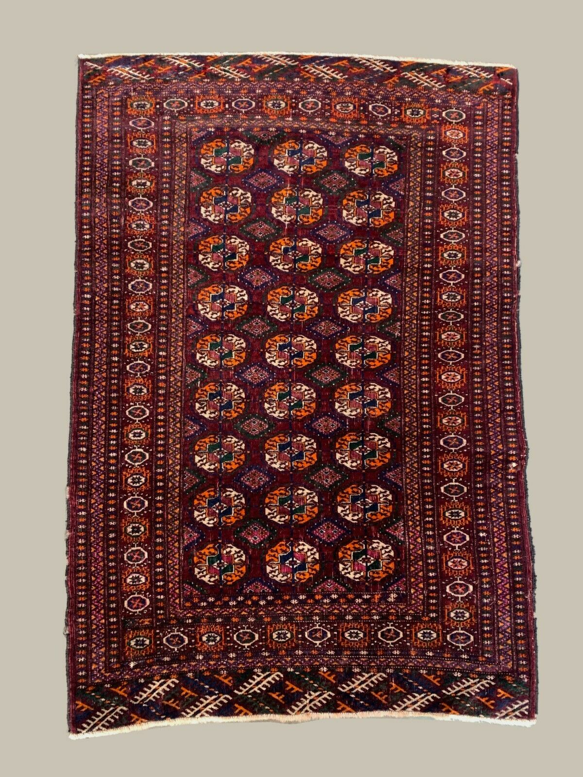 Antique Turkmen Tekke Rug, 144x97 cm Turkoman Bokhara Red Black Beige