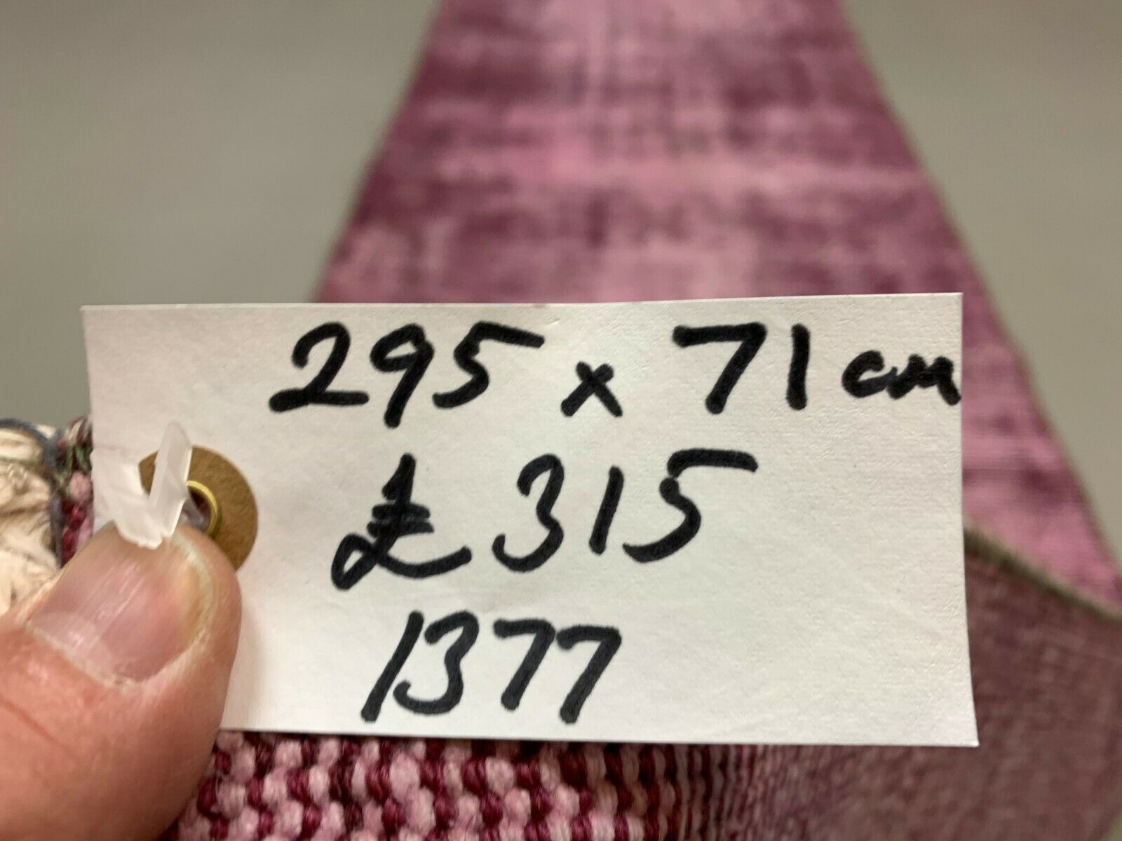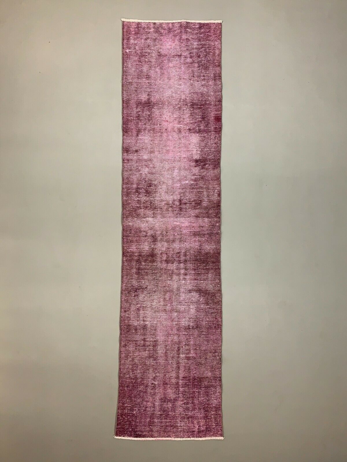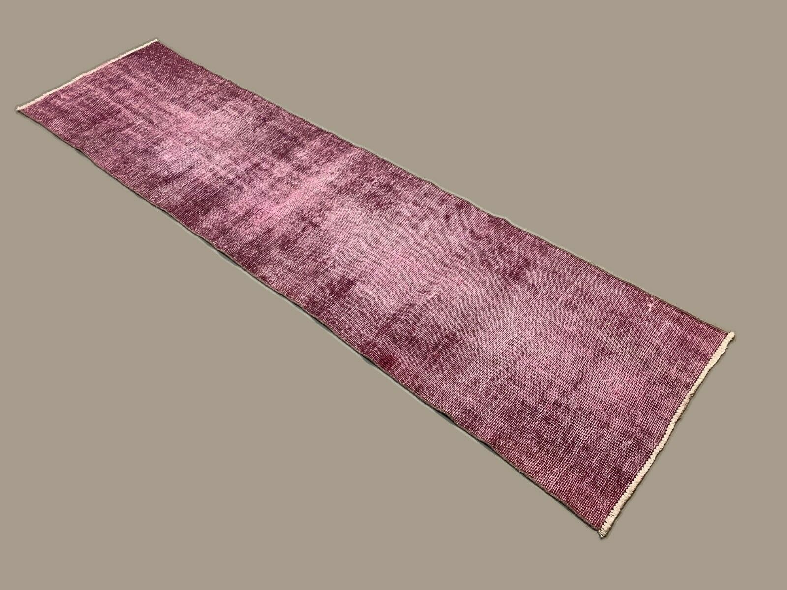 Distressed Turkish Narrow Runner 295x71 cm wool Vintage rug, Overdyed Purple