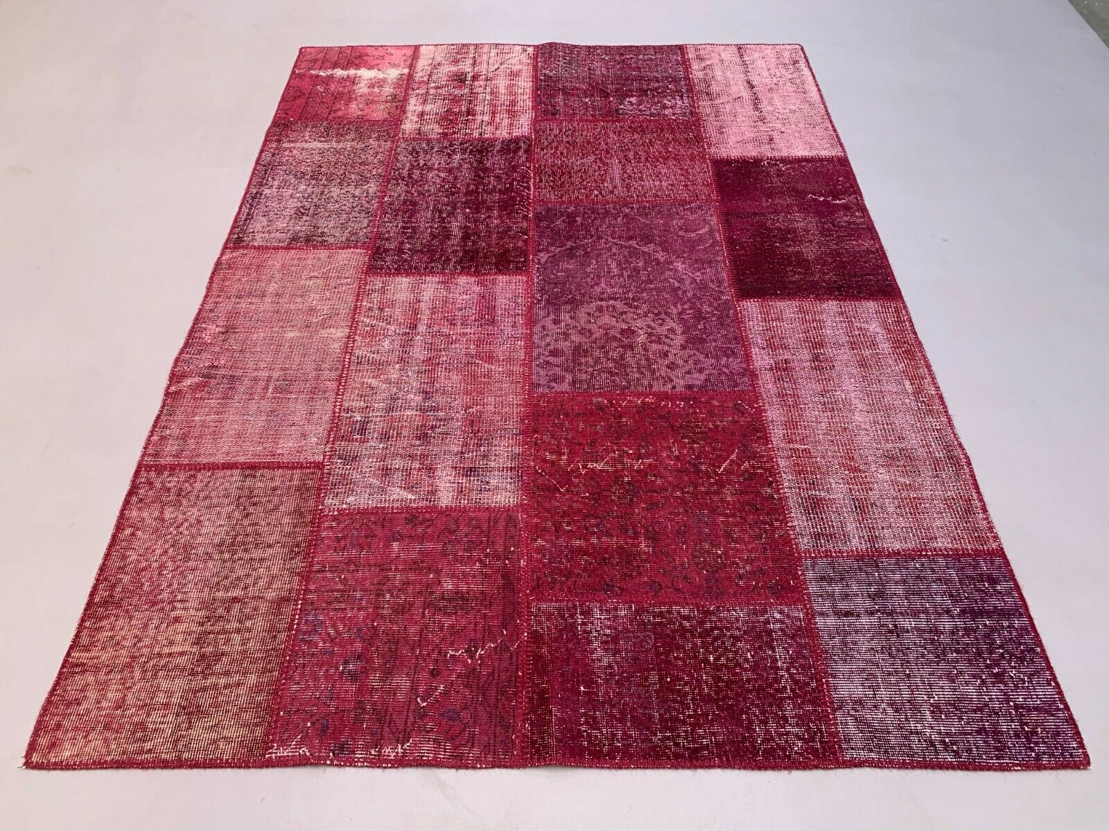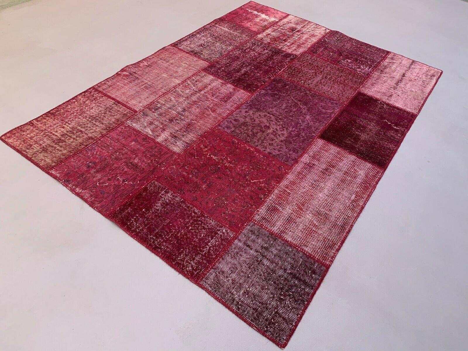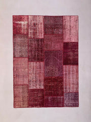 Distressed Turkish Patchwork Rug 240x170 cm wool Vintage shabby Tribal Red Large