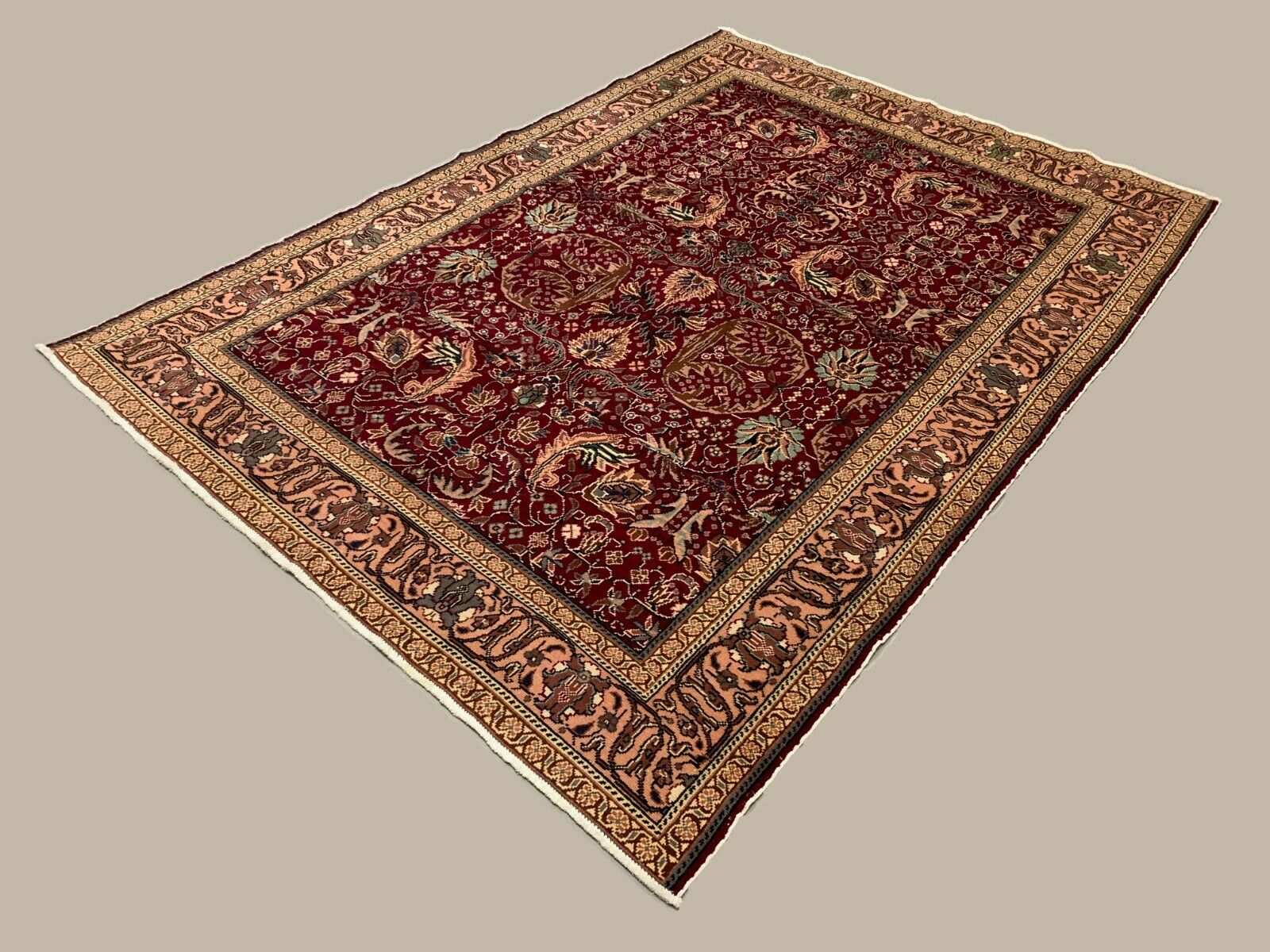 Distressed Turkish Rug 214x150 cm wool Vintage shabby Chic Tribal Red, Beige