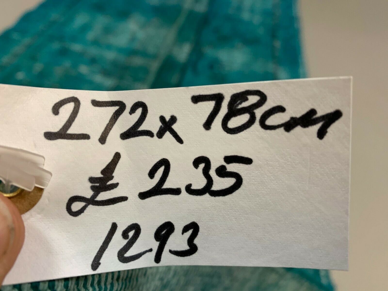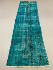 Distressed Turkish Runner 272x78 cm wool Vintage rug, Overdyed Blue