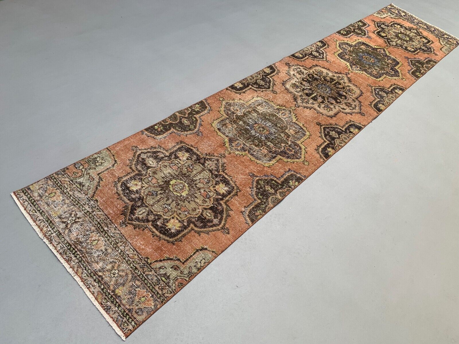 Distressed Turkish Runner 393x81 cm wool Vintage Tribal Rug