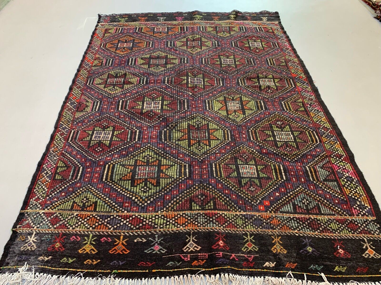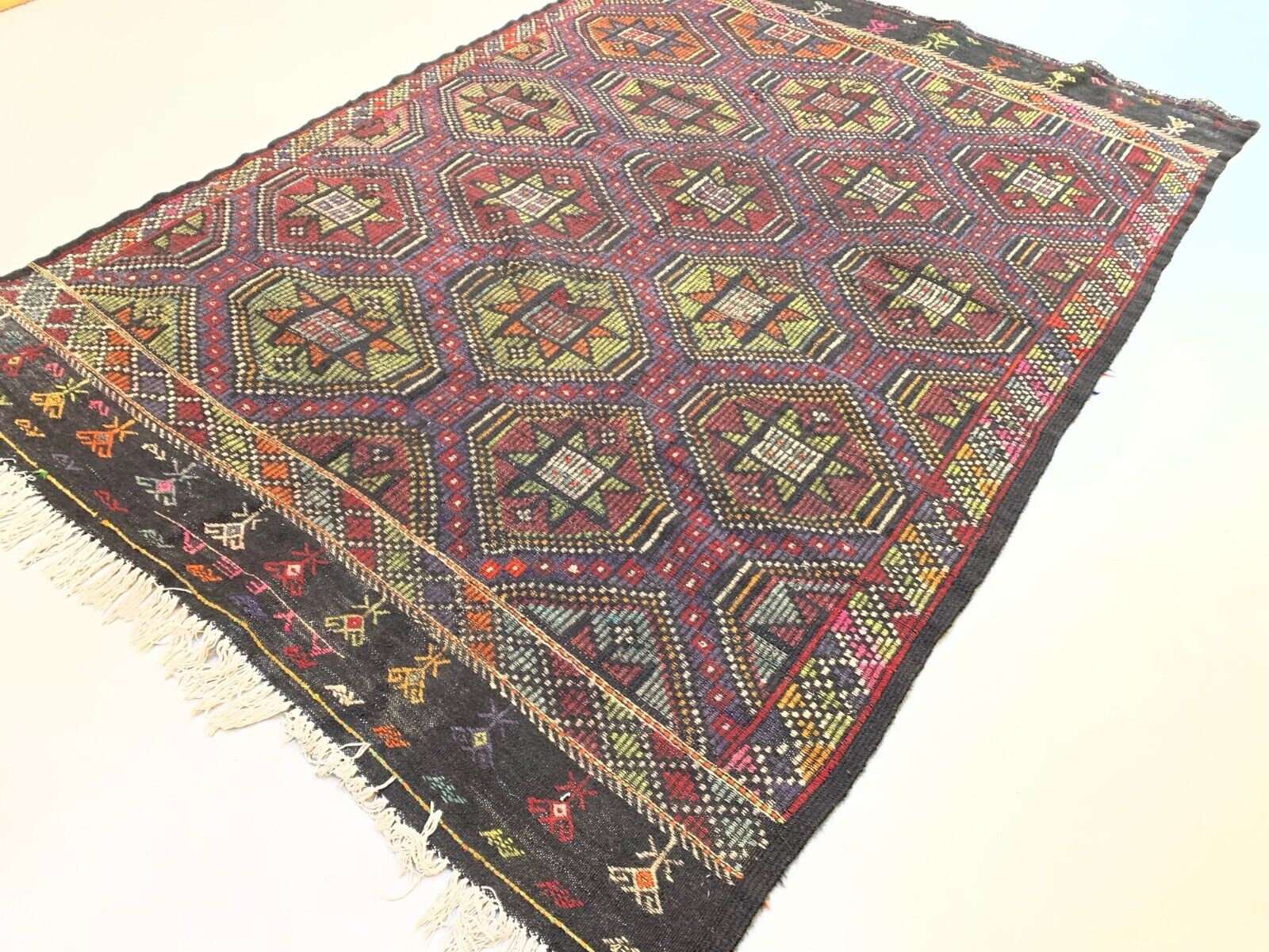 Large Vintage Turkish Kilim Rug 272x189 cm Wool Jajim Kelim