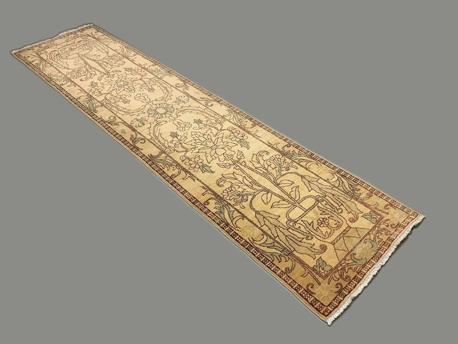 Long Ziegler Runner 342x82 cm, Afghan Chobi Rug, Red Green Beige