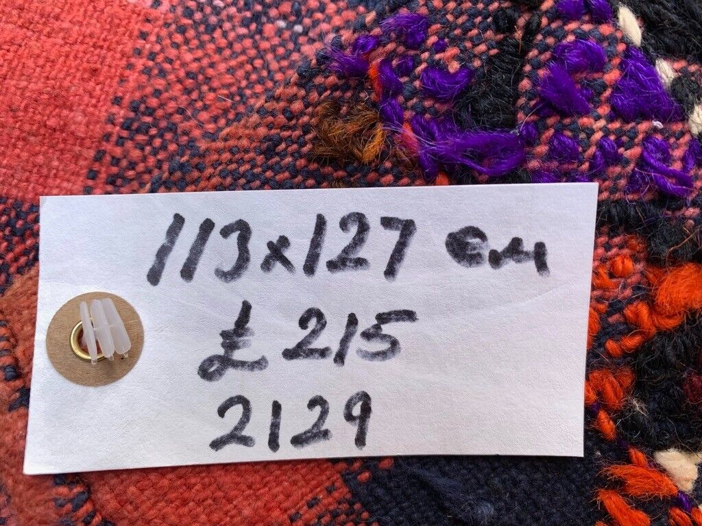 Medium Vintage Turkish Kilim Rug 113x127 cm Wool Kelim, Square