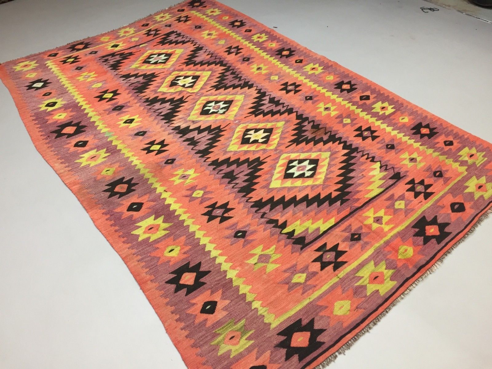 Old Turkish Kilim kelim, country house boho vintage rustic antique 240x163cm