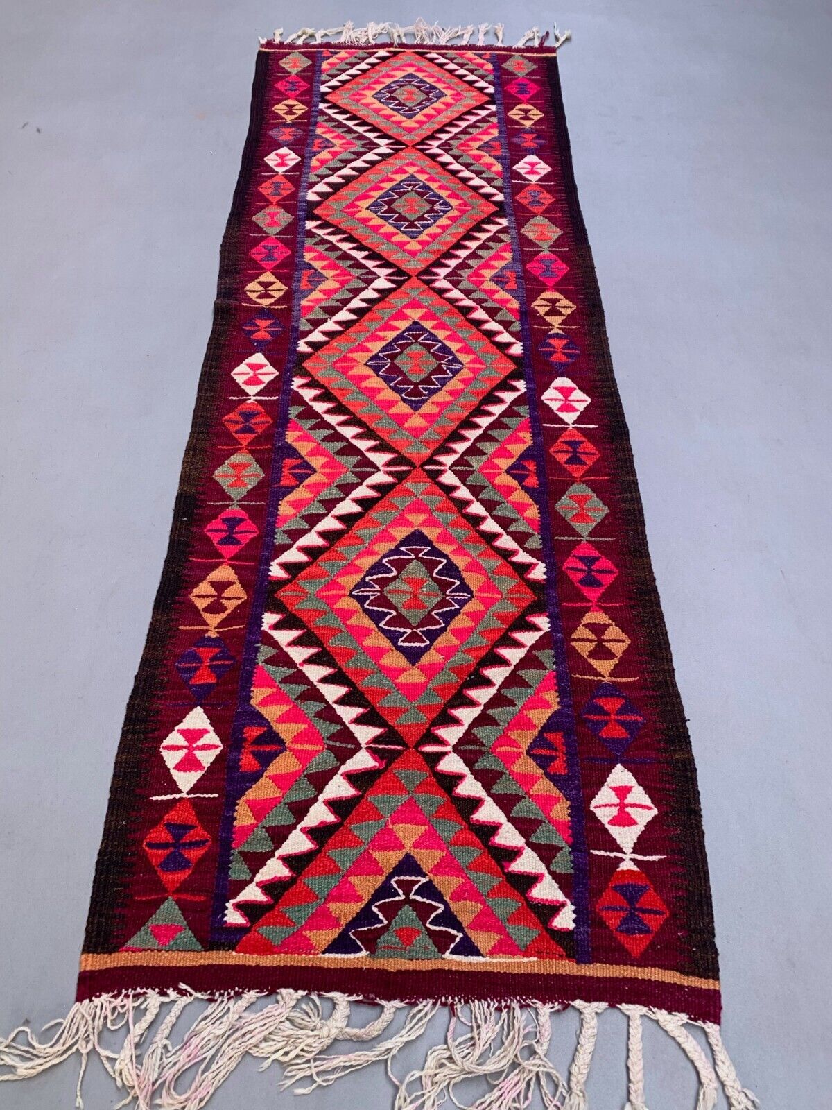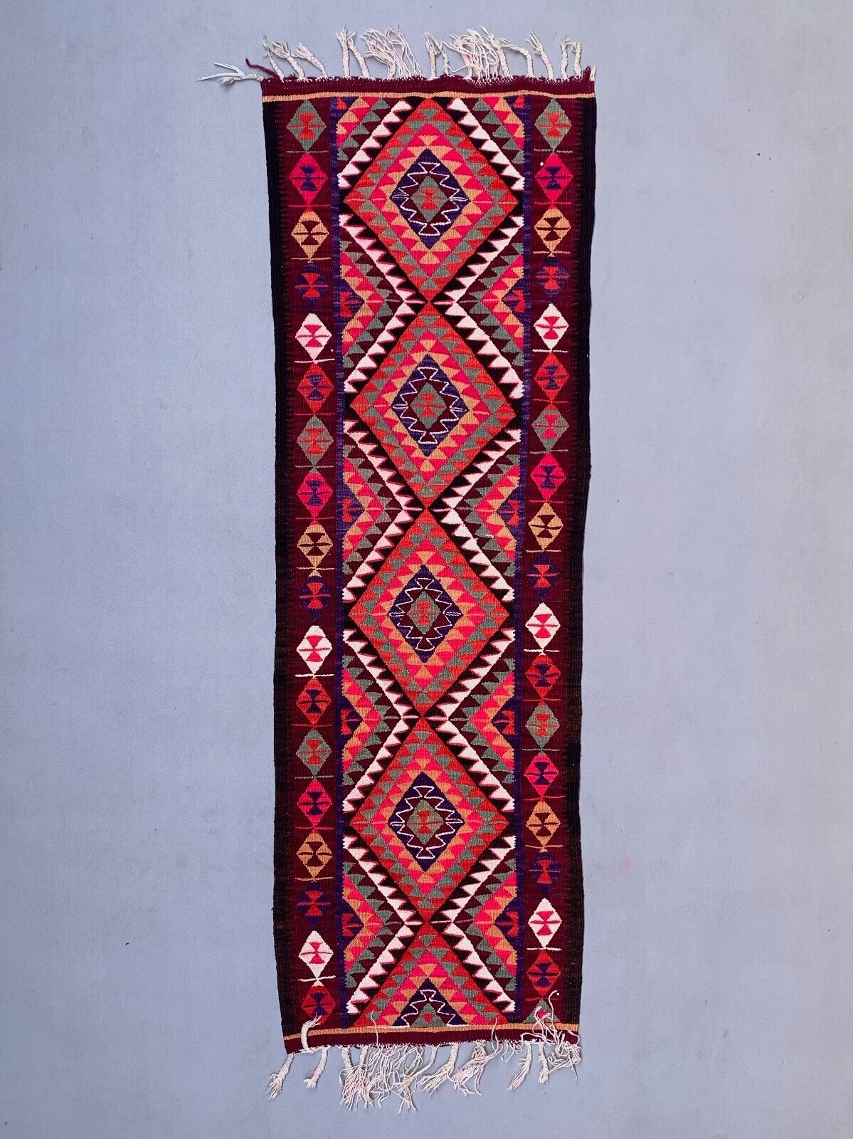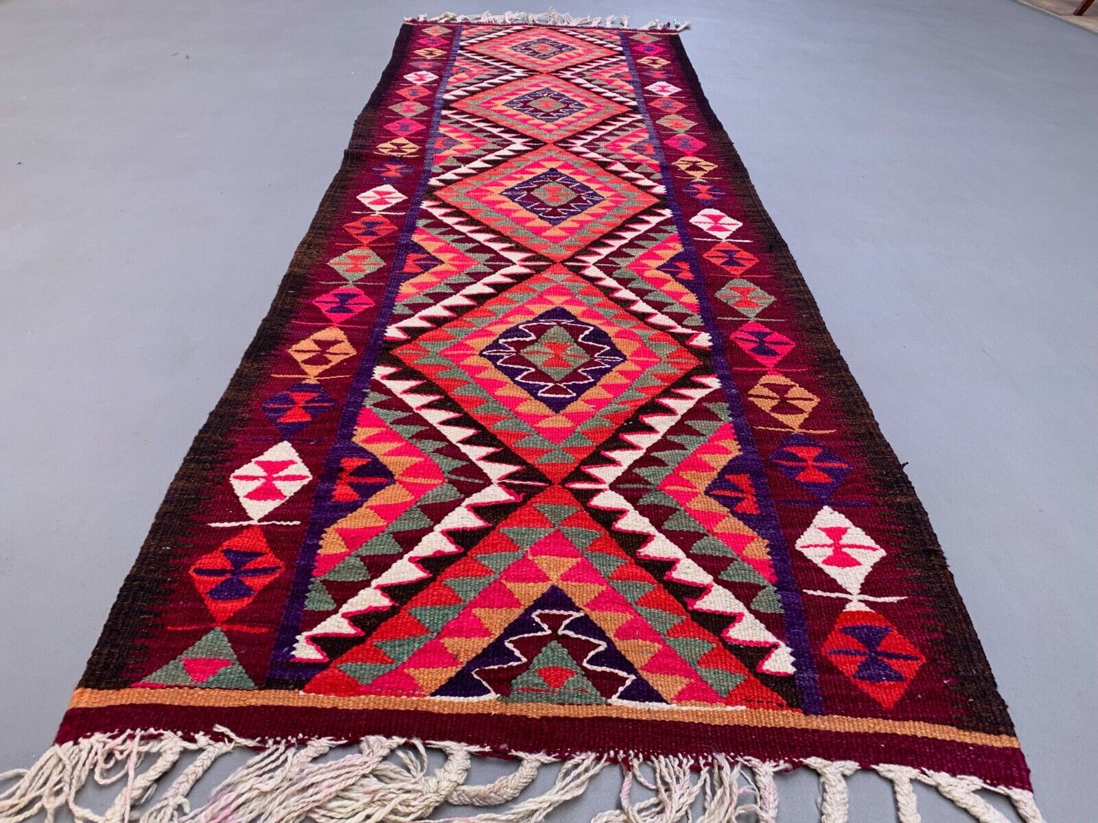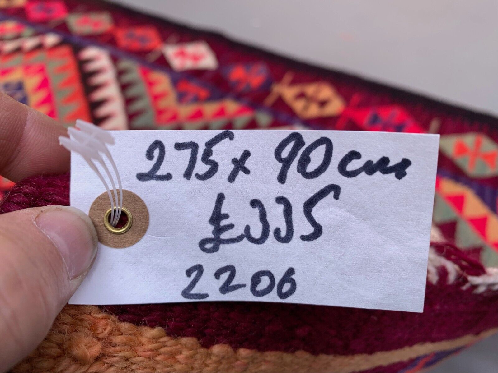 Old Turkish Kilim Runner 275x90 cm, Vintage Kelim Rug, Long and Narrow