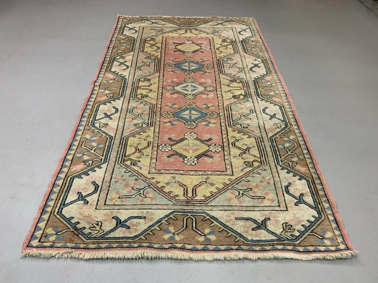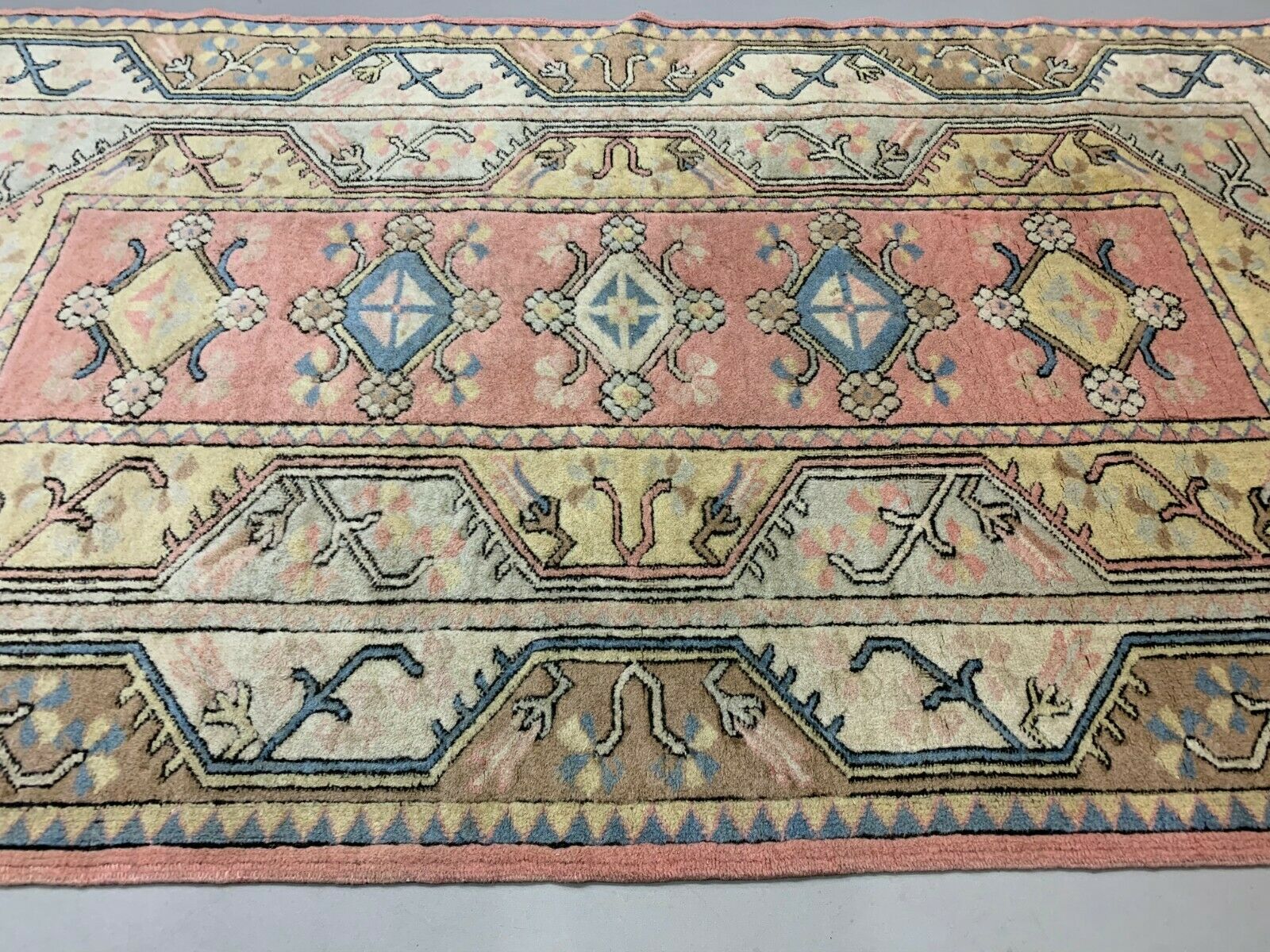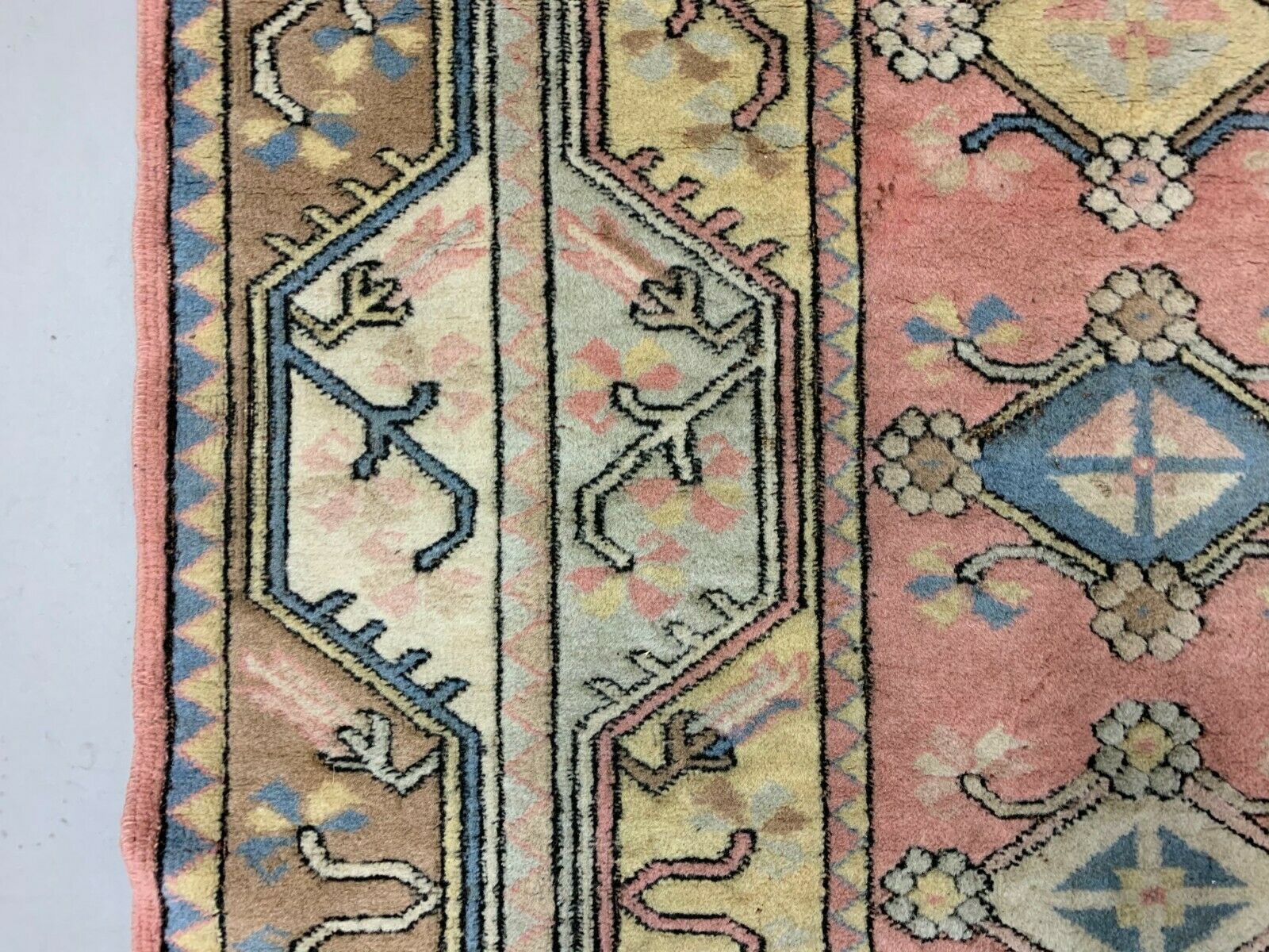 Old Turkish Milas Rug 212x122 cm old vintage carpet Ushak Region Pink Beige Blue