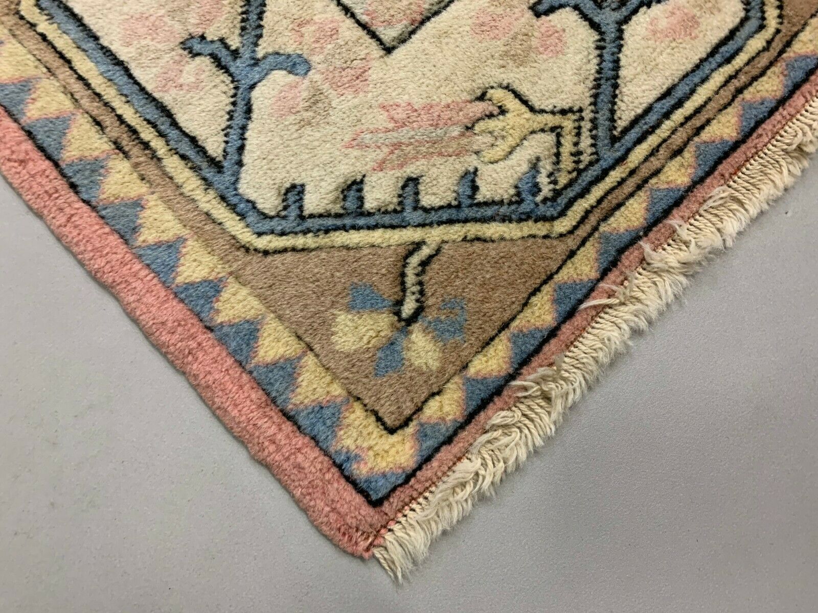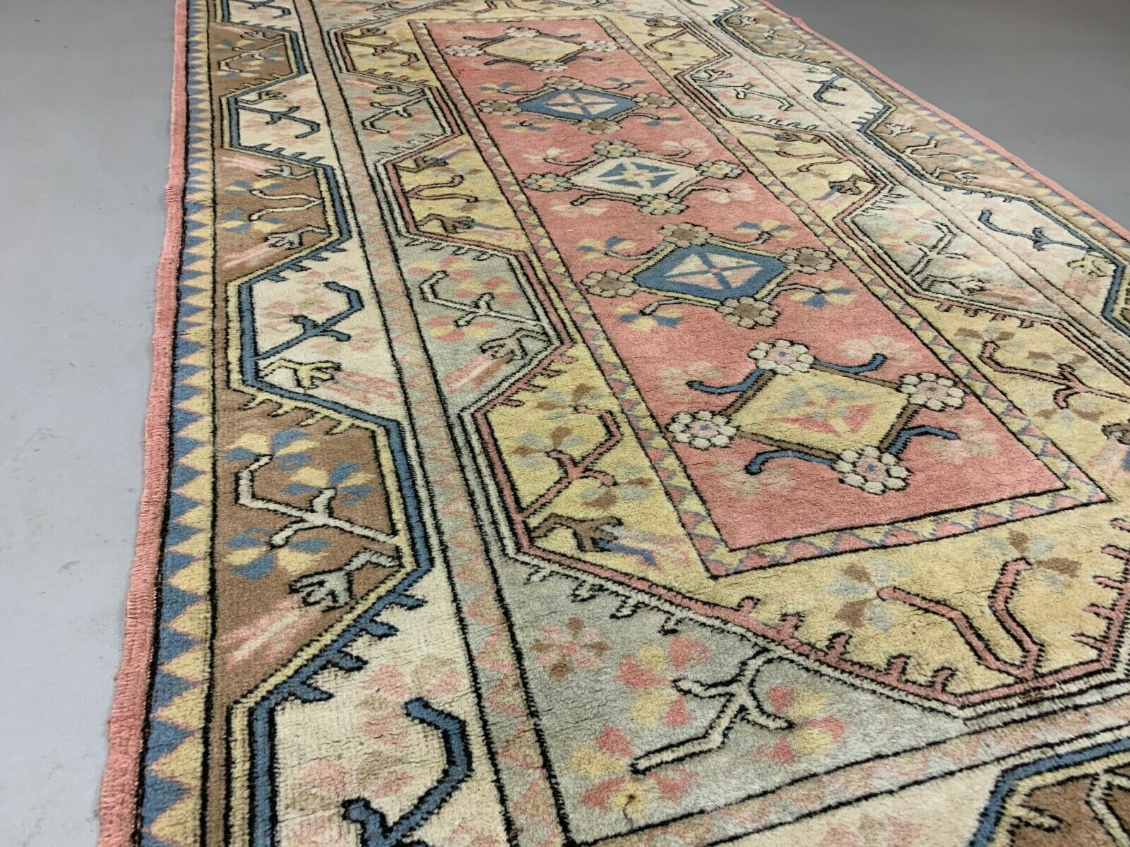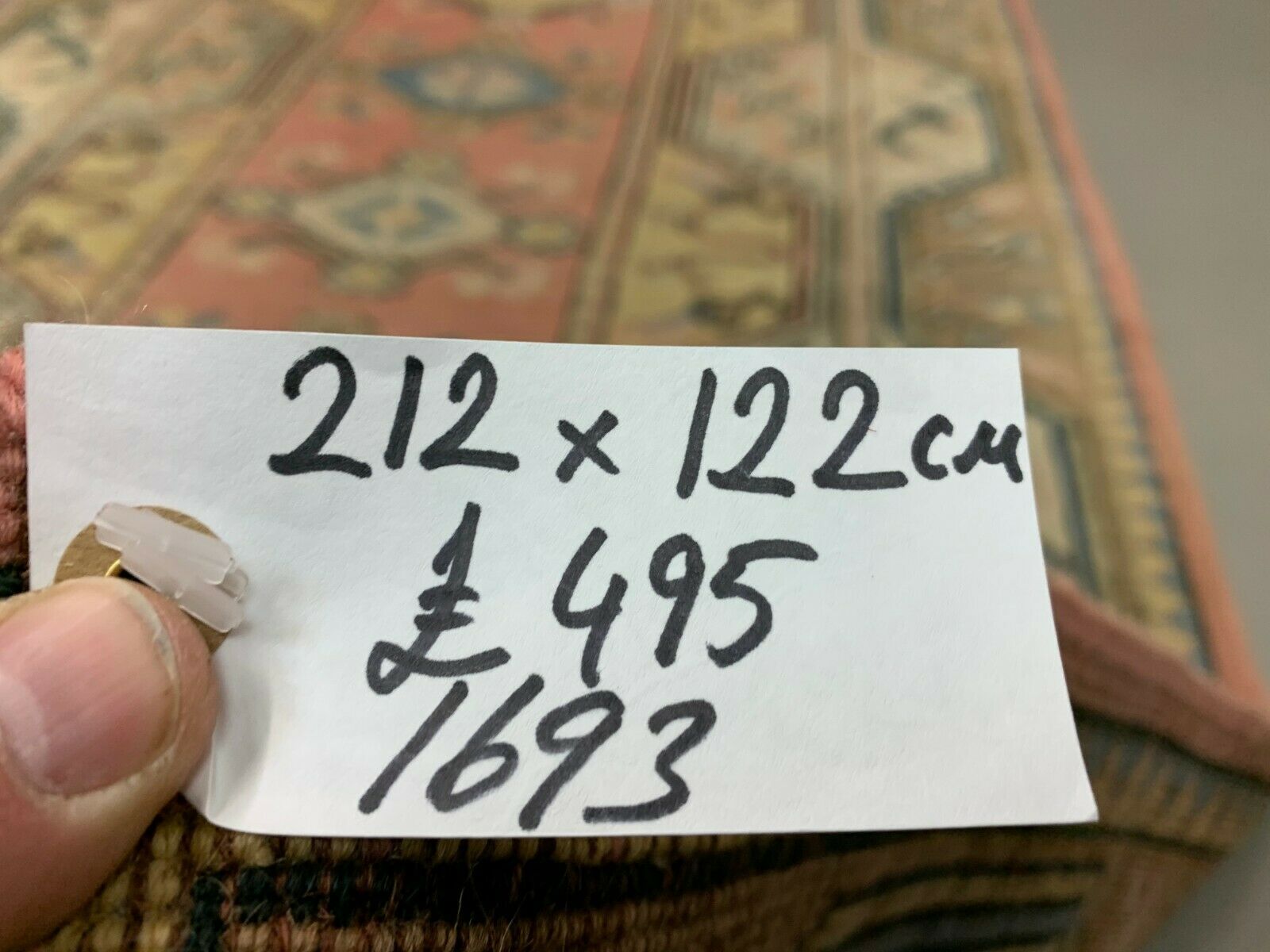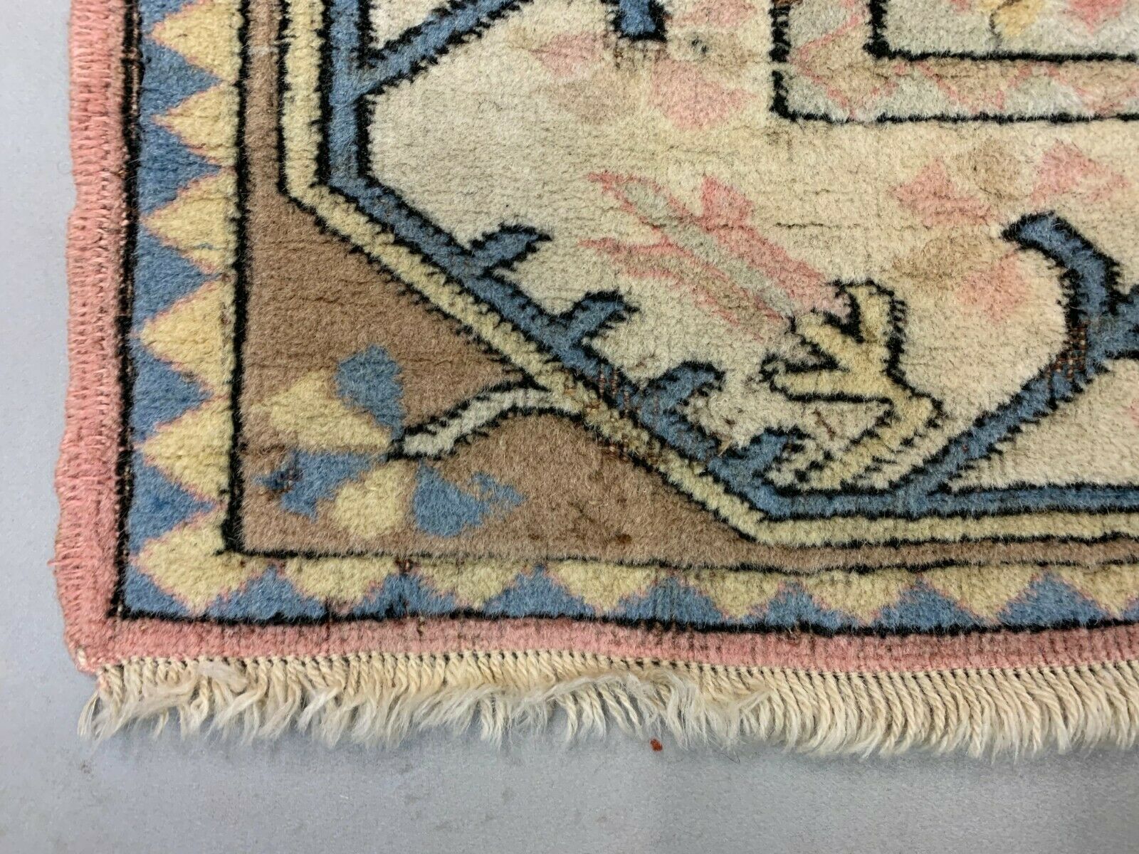 Old Turkish Milas Rug 212x122 cm old vintage carpet Ushak Region Pink Beige Blue