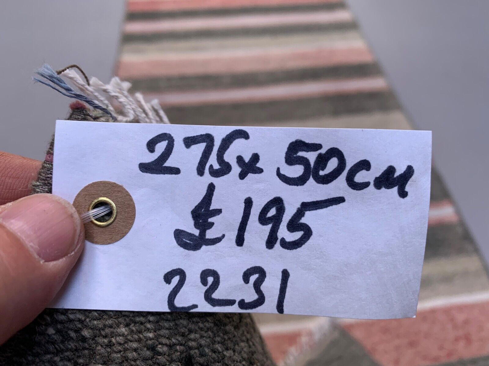 Old Turkish narrow Kilim Runner 275x50 cm shabby chic, vintage kelim