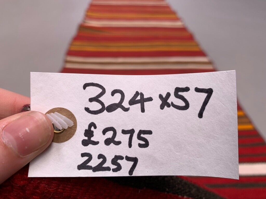 Old Turkish narrow Kilim Runner 324x57 cm shabby chic, vintage kelim