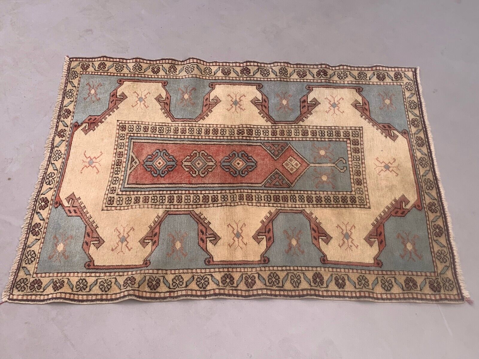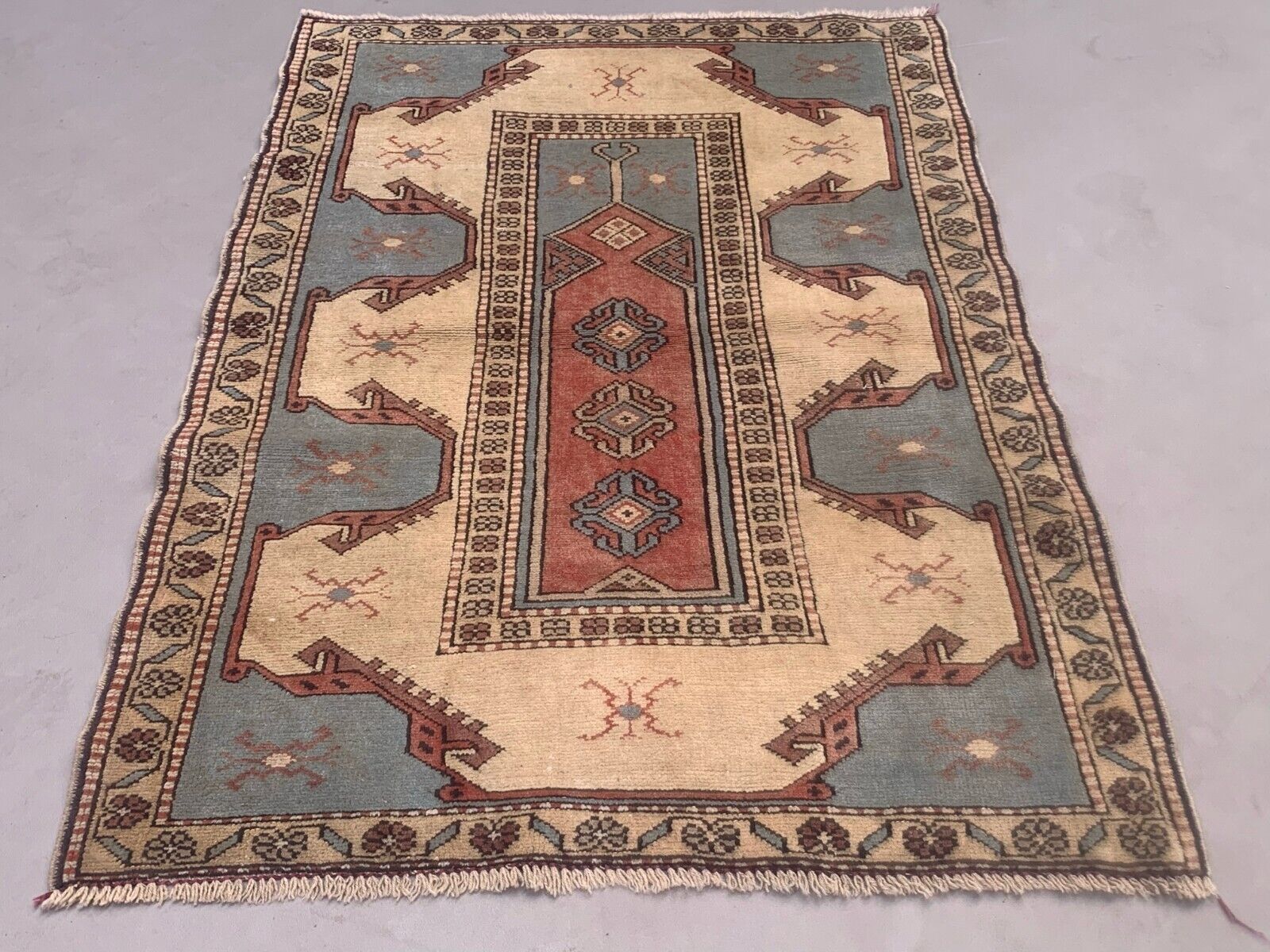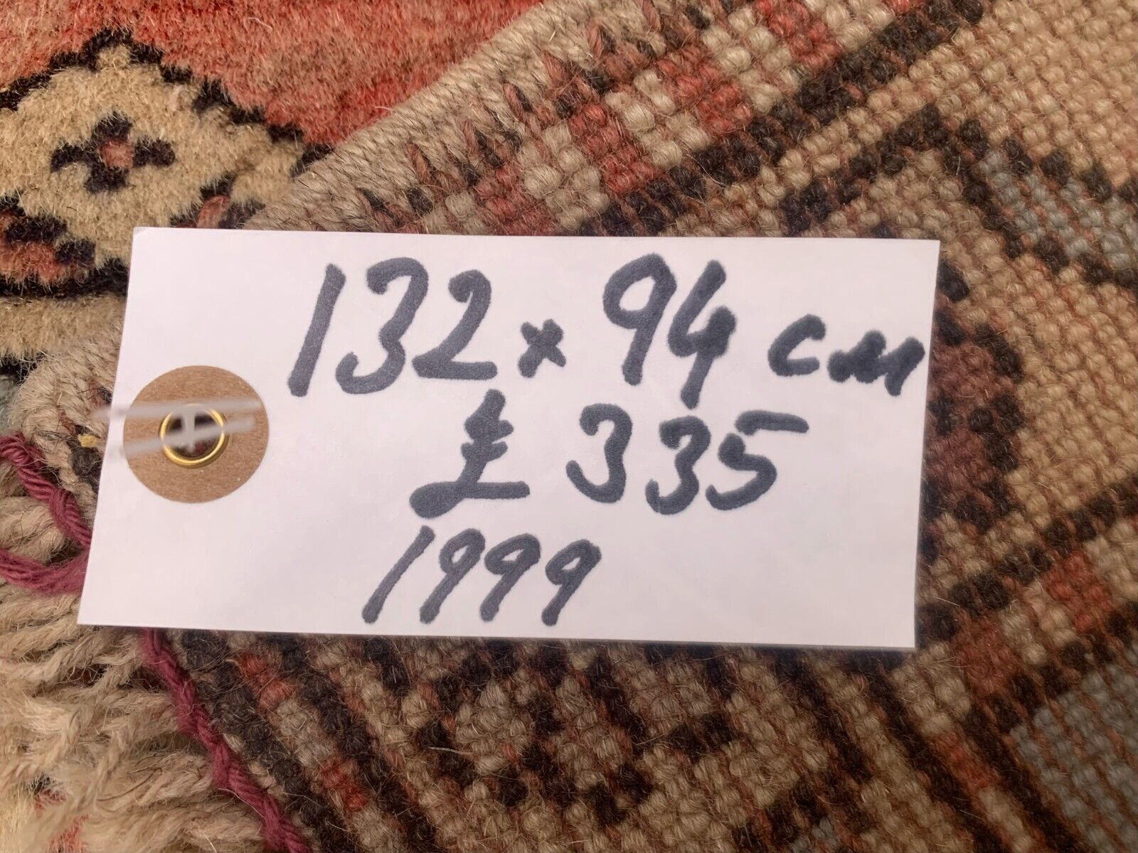 Old Turkish Small Milas Rug 132x94 cm old vintage carpet Ushak Pink Beige Blue