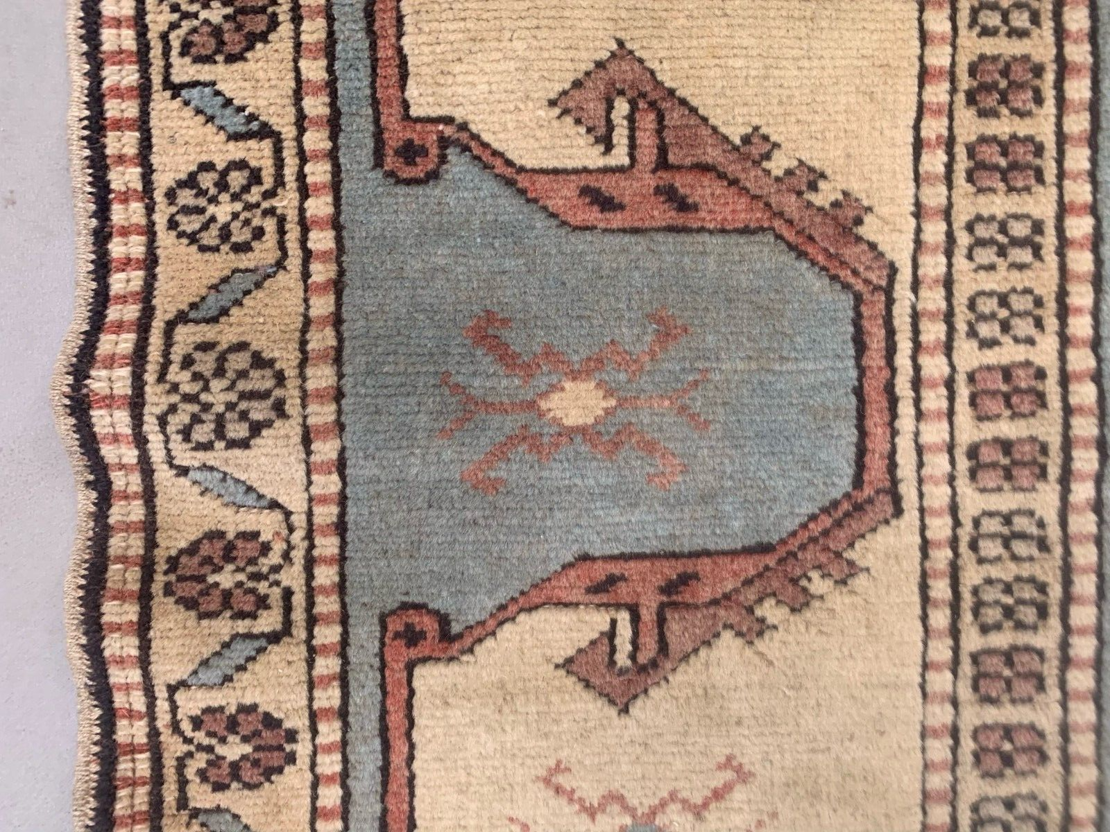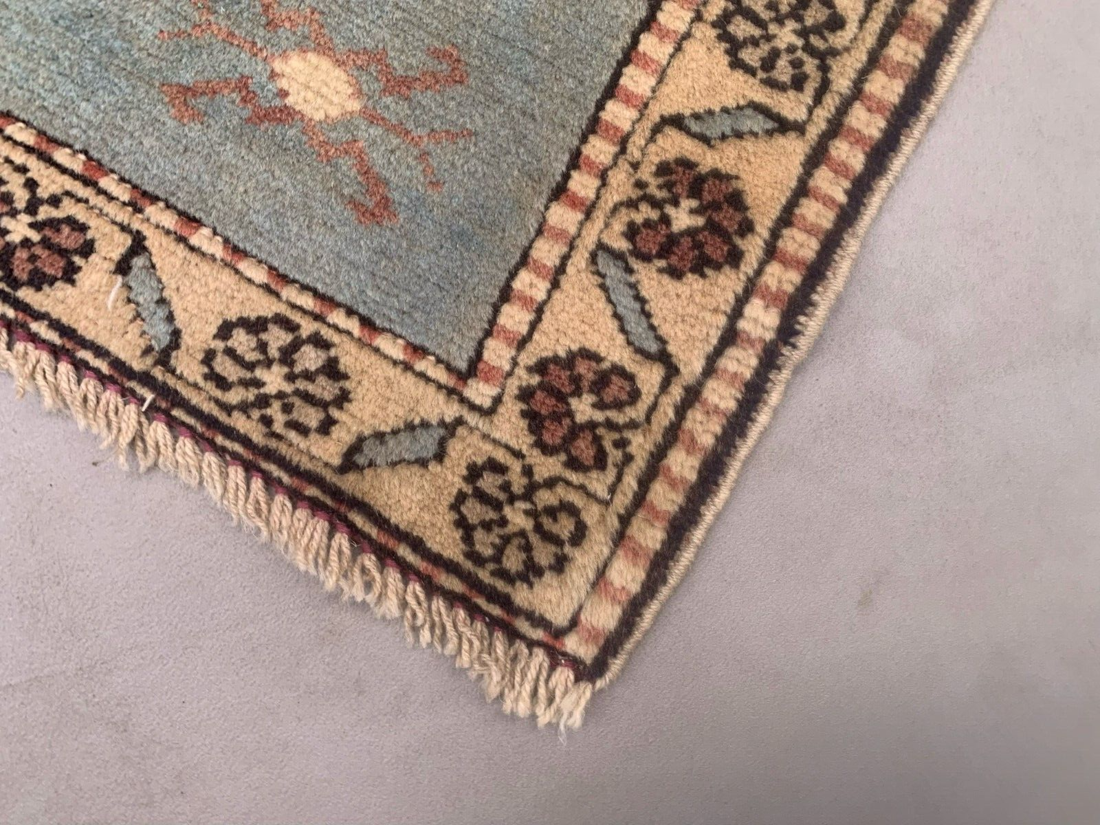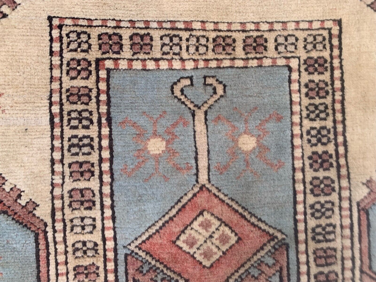Old Turkish Small Milas Rug 132x94 cm old vintage carpet Ushak Pink Beige Blue