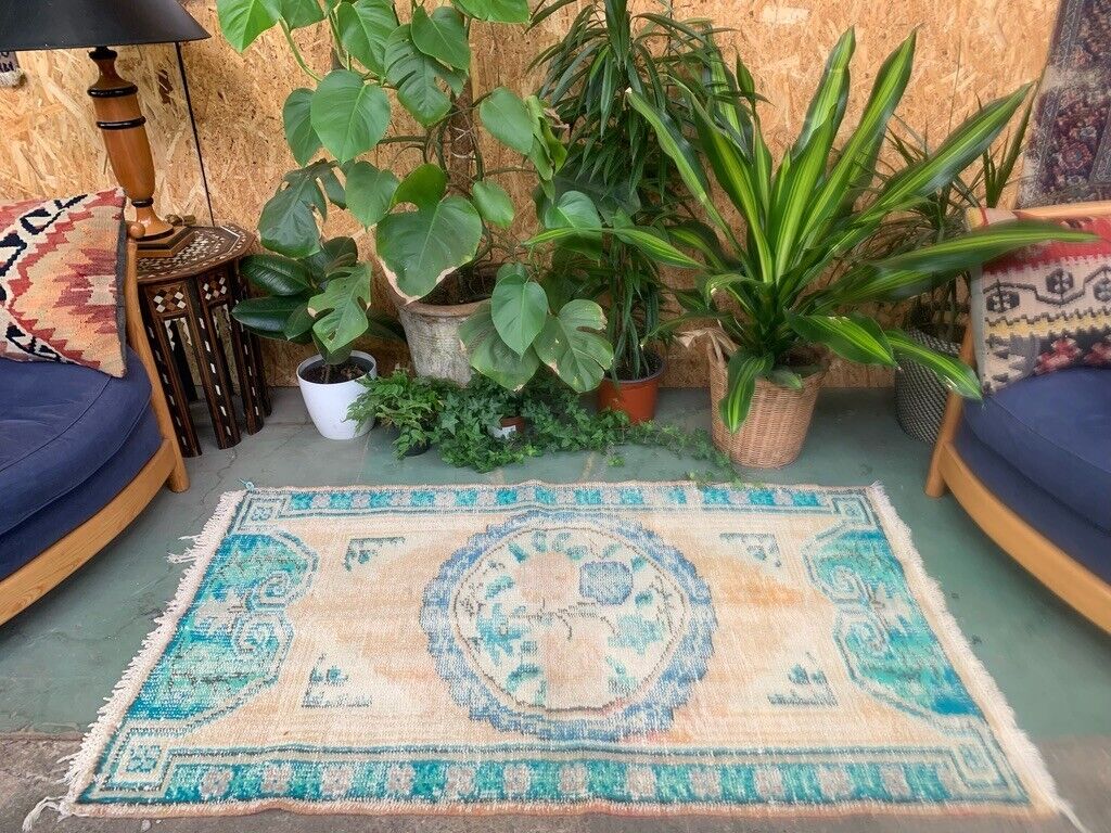 Shabby Turkish Oushak Rug 155x89 cm vintage carpet Ushak Region Medium