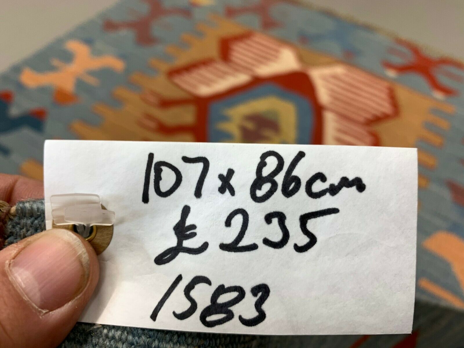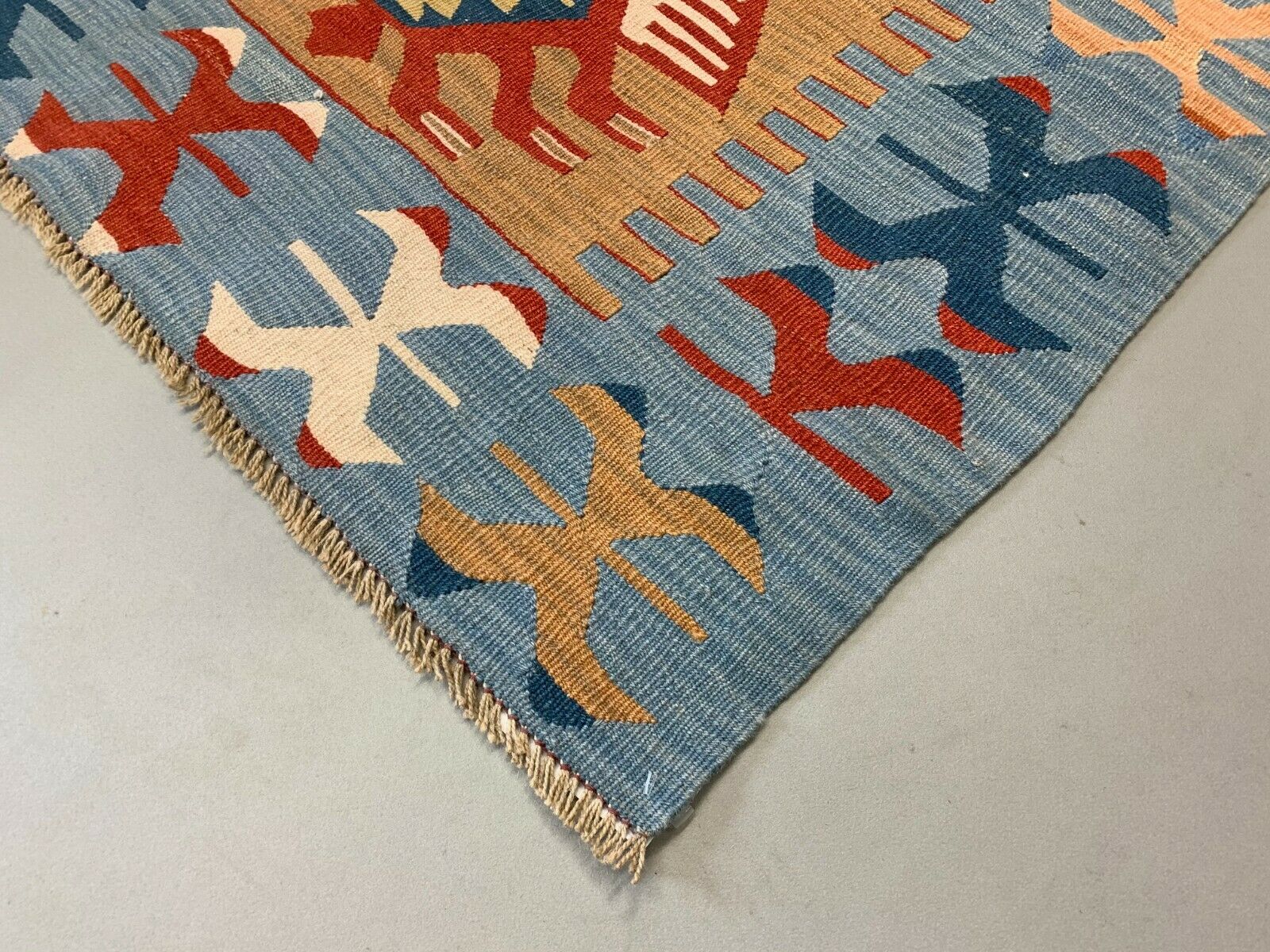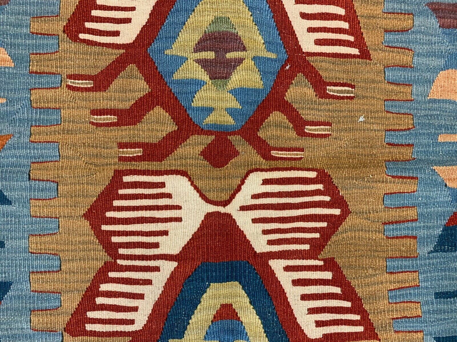 Small Vintage Turkish Kilim 107x86 cm Wool Kelim Rug Red Blue Brown