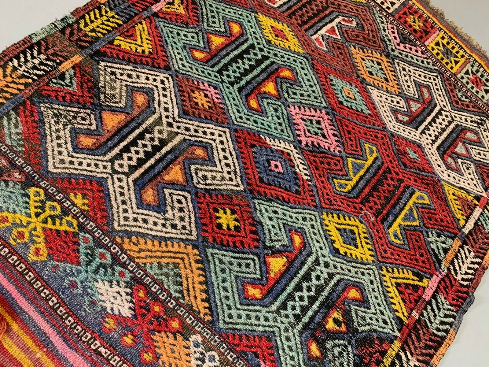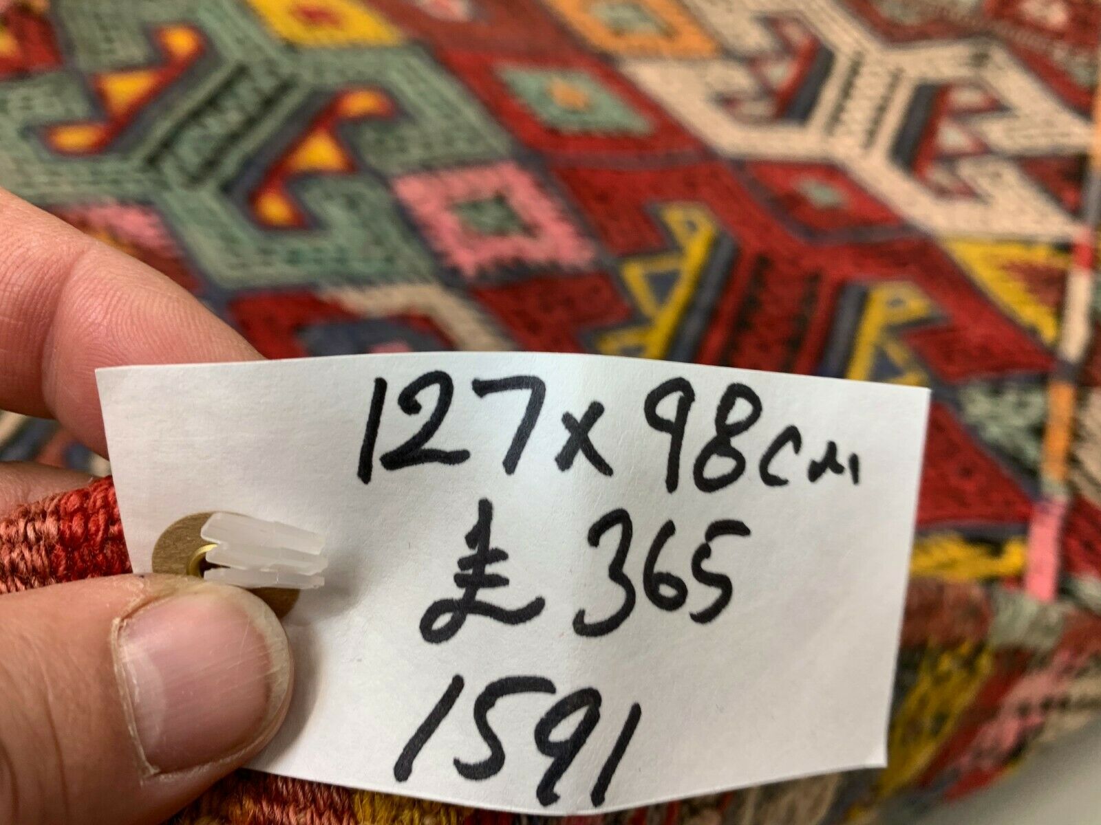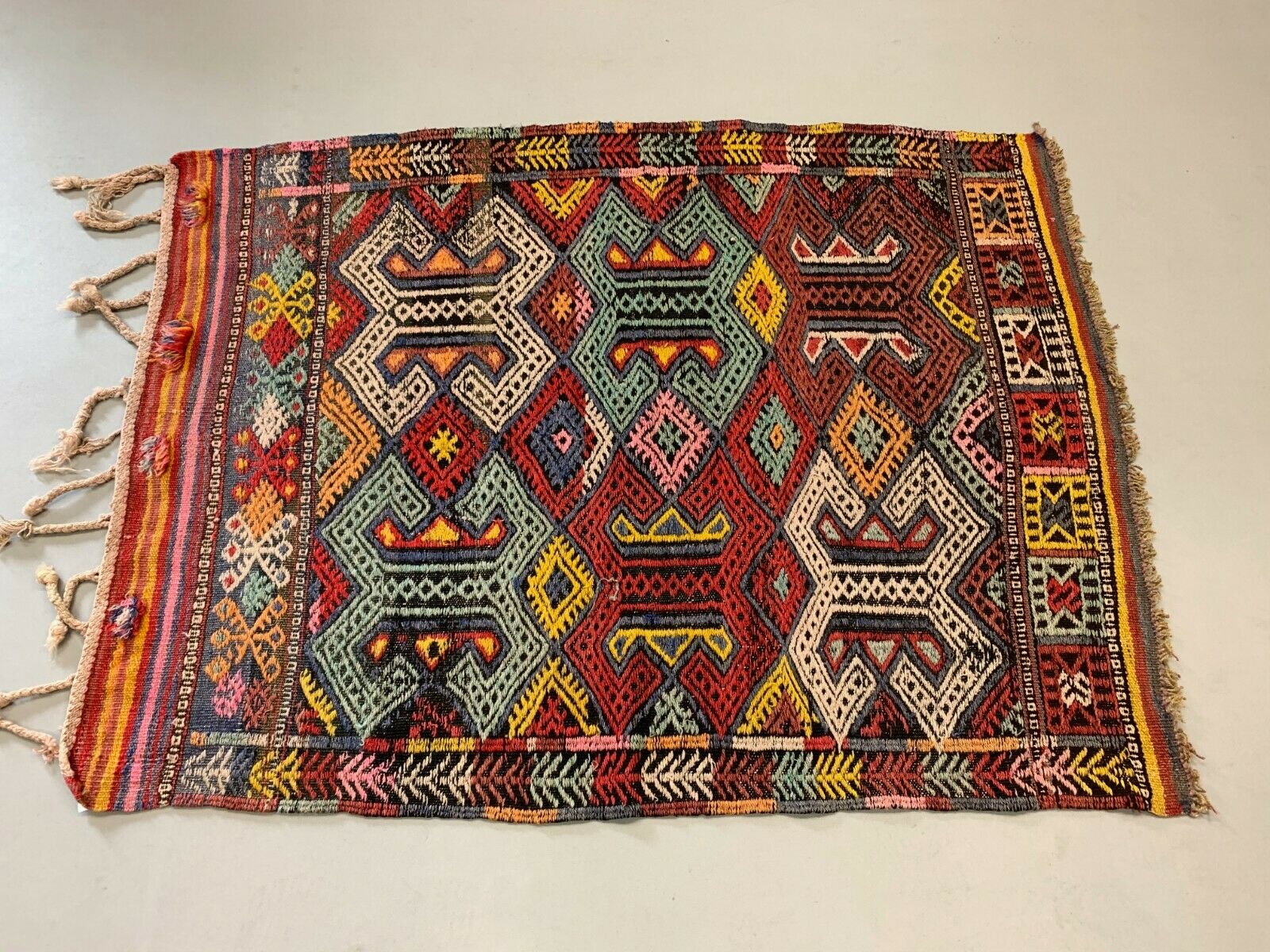 Small Vintage Turkish Kilim 127x98 cm Wool Kelim Rug Red Black Blue