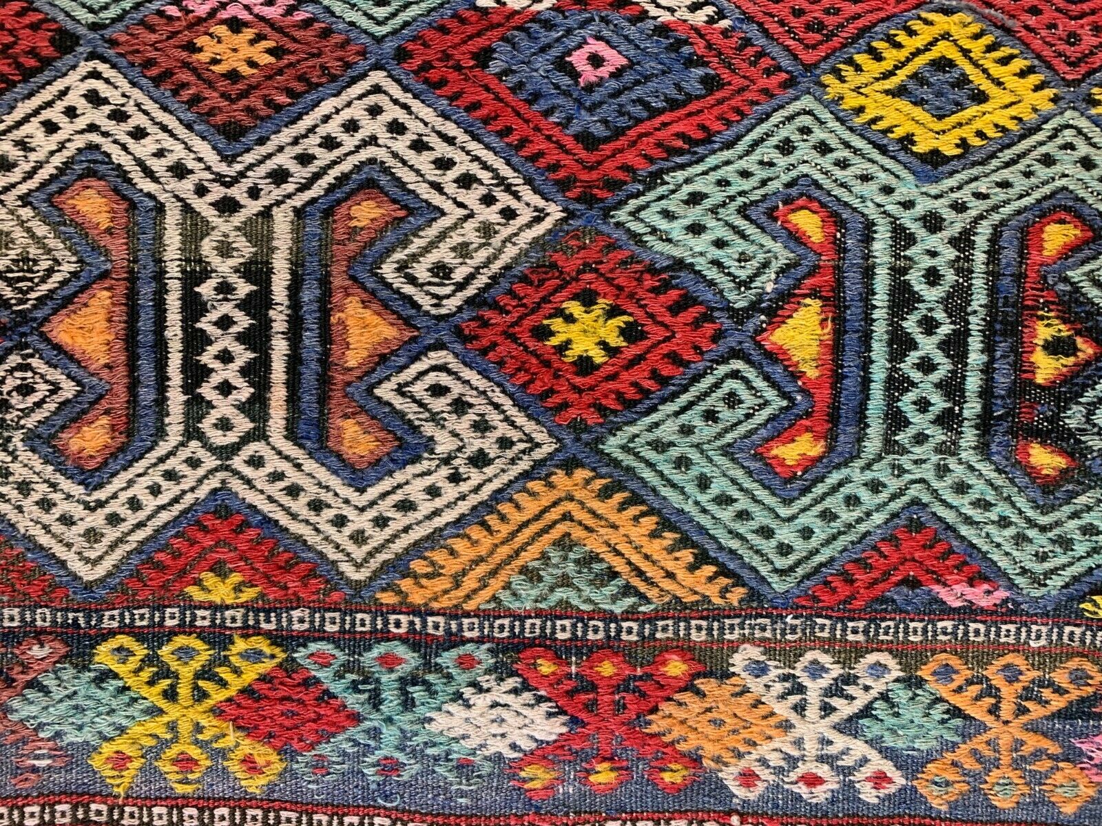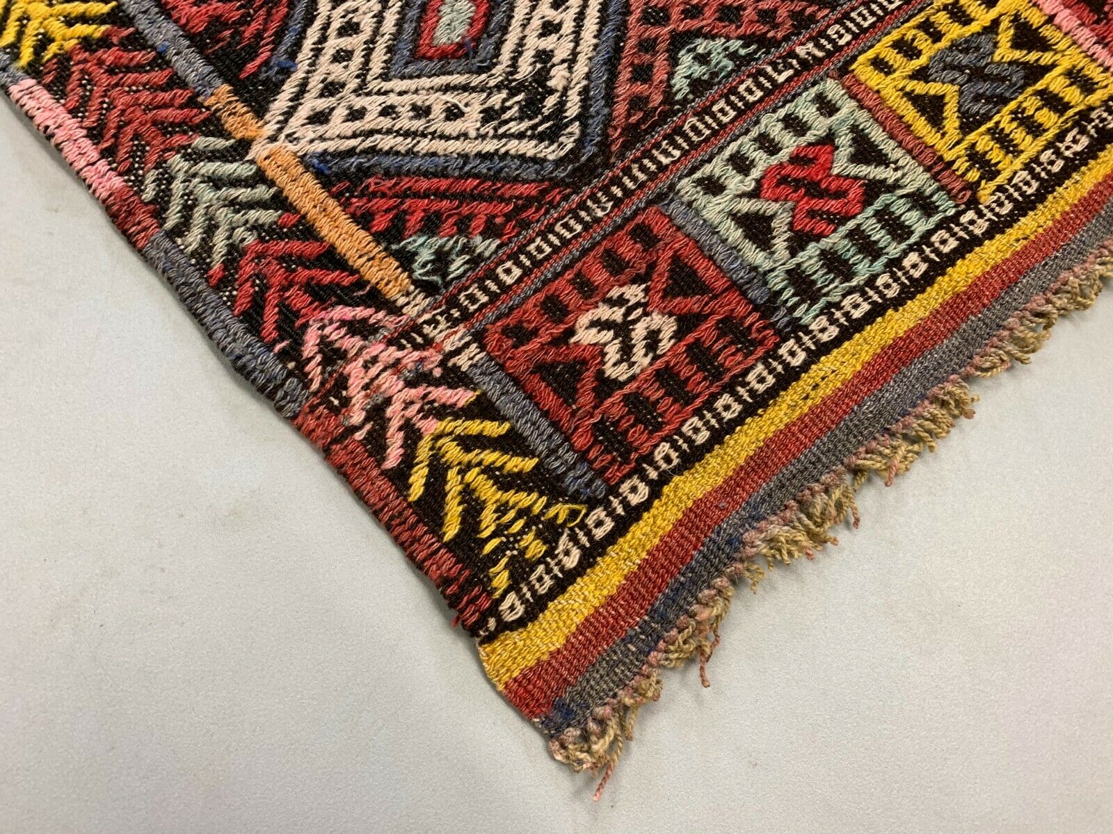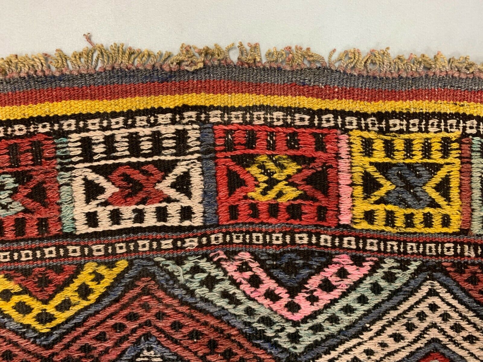 Small Vintage Turkish Kilim 127x98 cm Wool Kelim Rug Red Black Blue