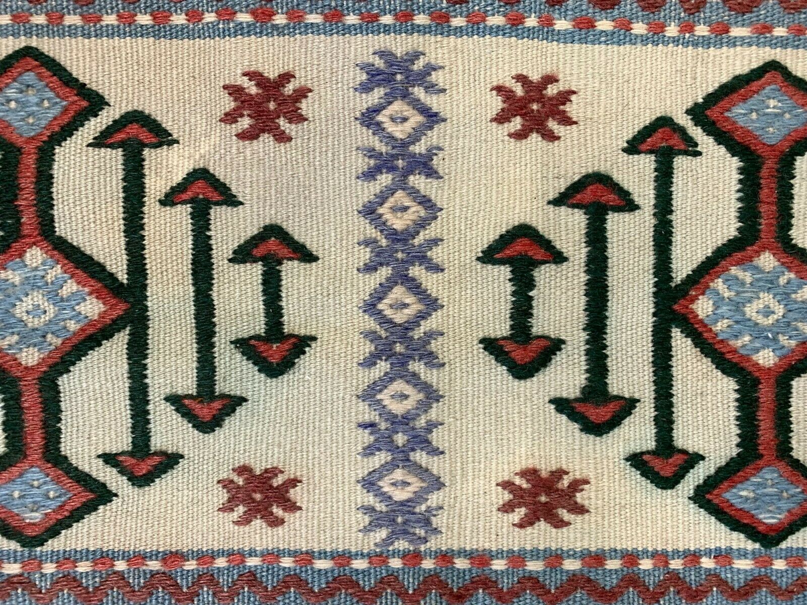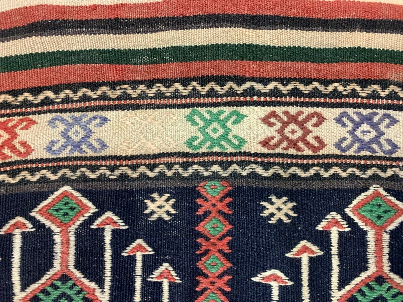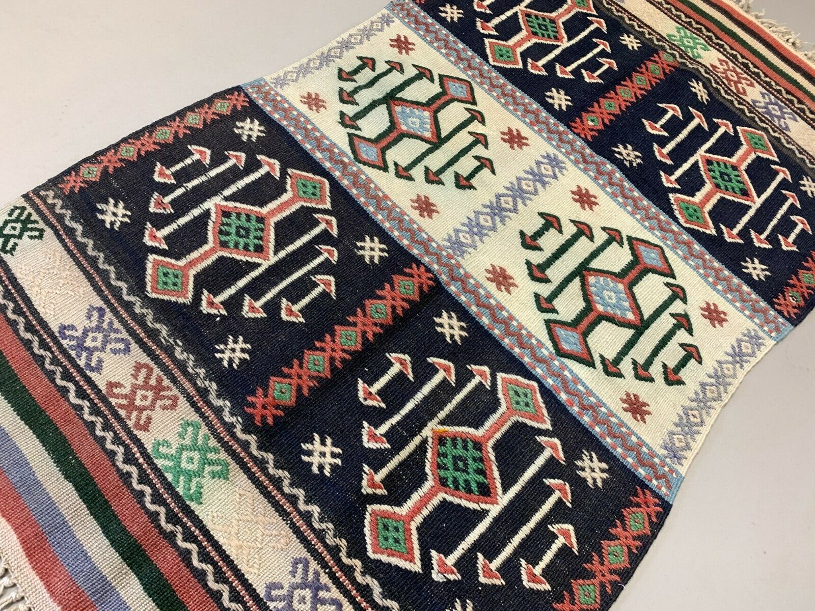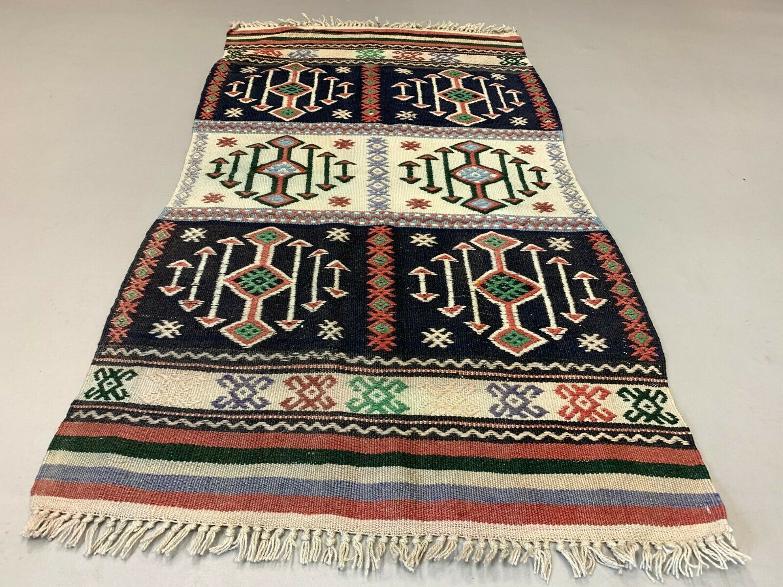 Small Vintage Turkish Kilim 145x80 cm Wool Kelim Rug Red Beige Black