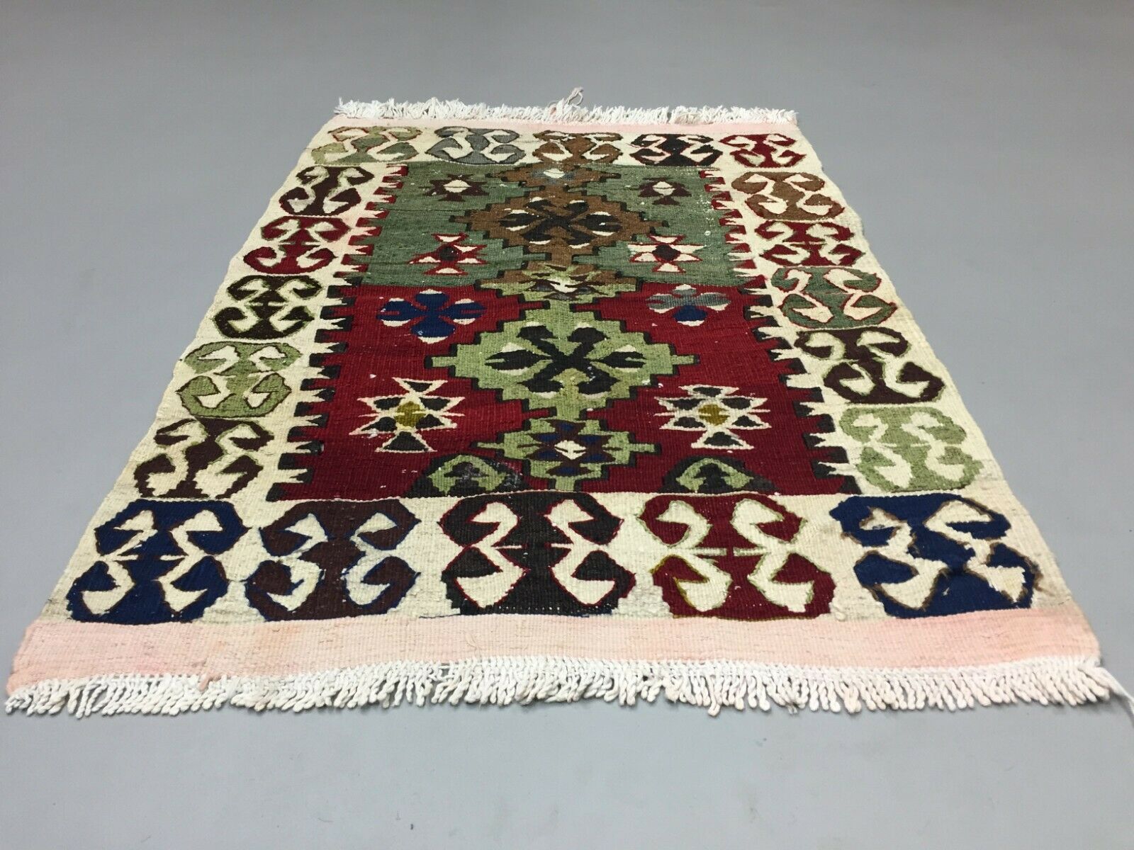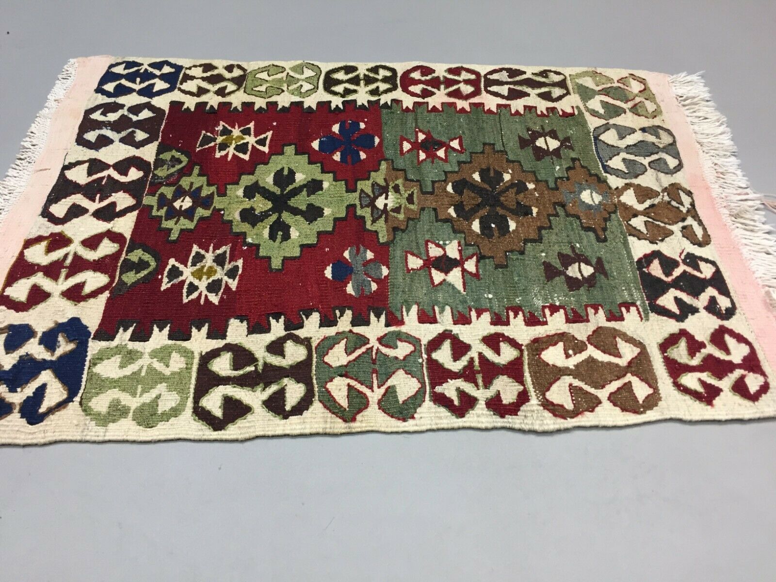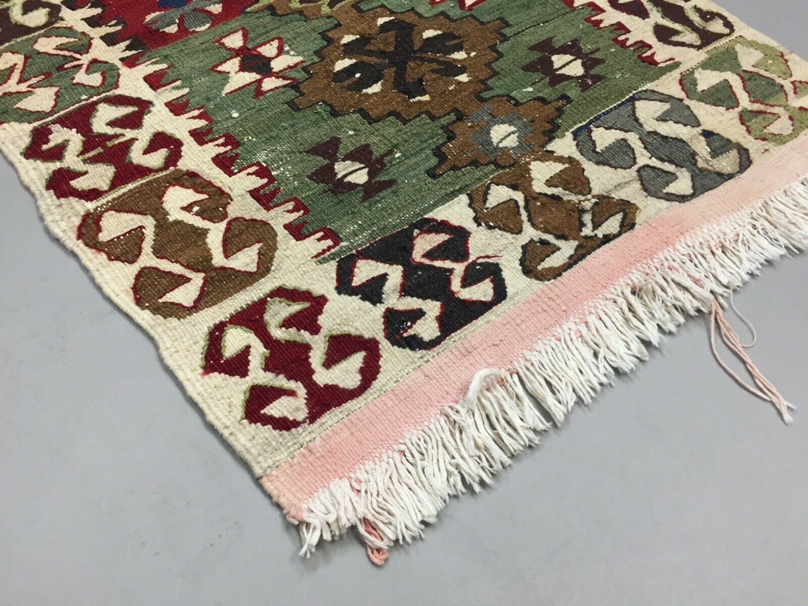Small Vintage Turkish Kilim 97x70 cm Wool Kelim Rug Red Green beige Black