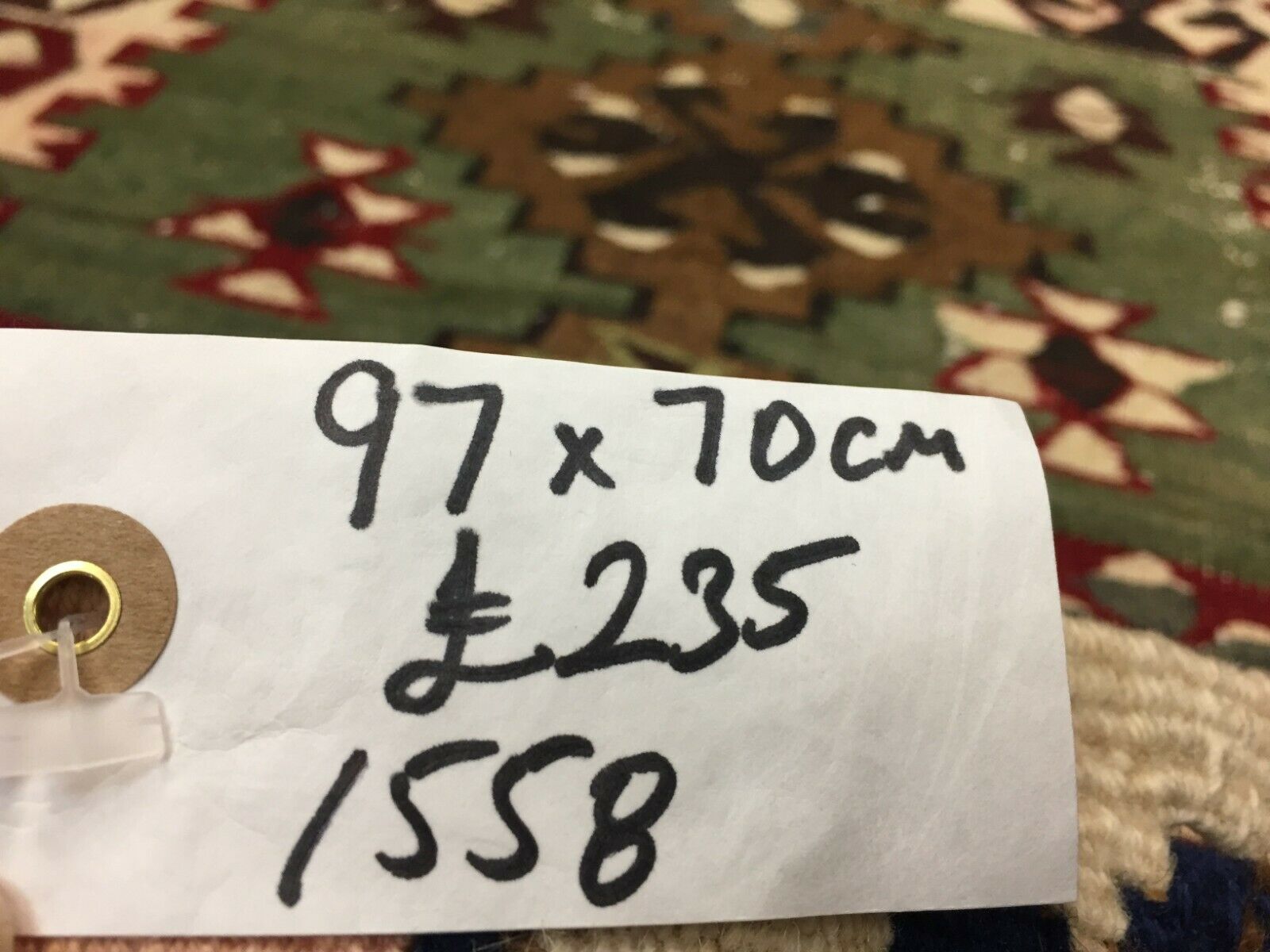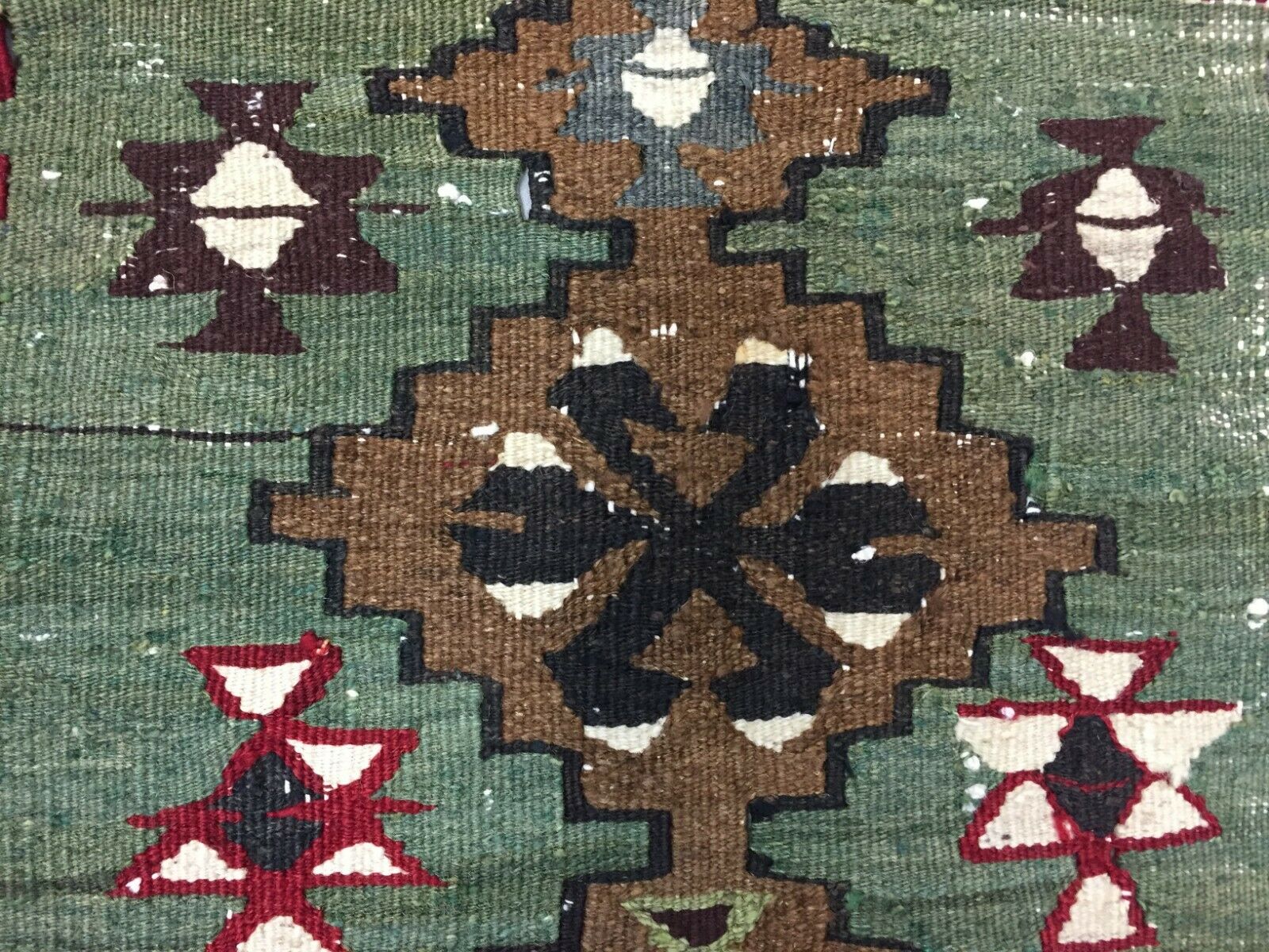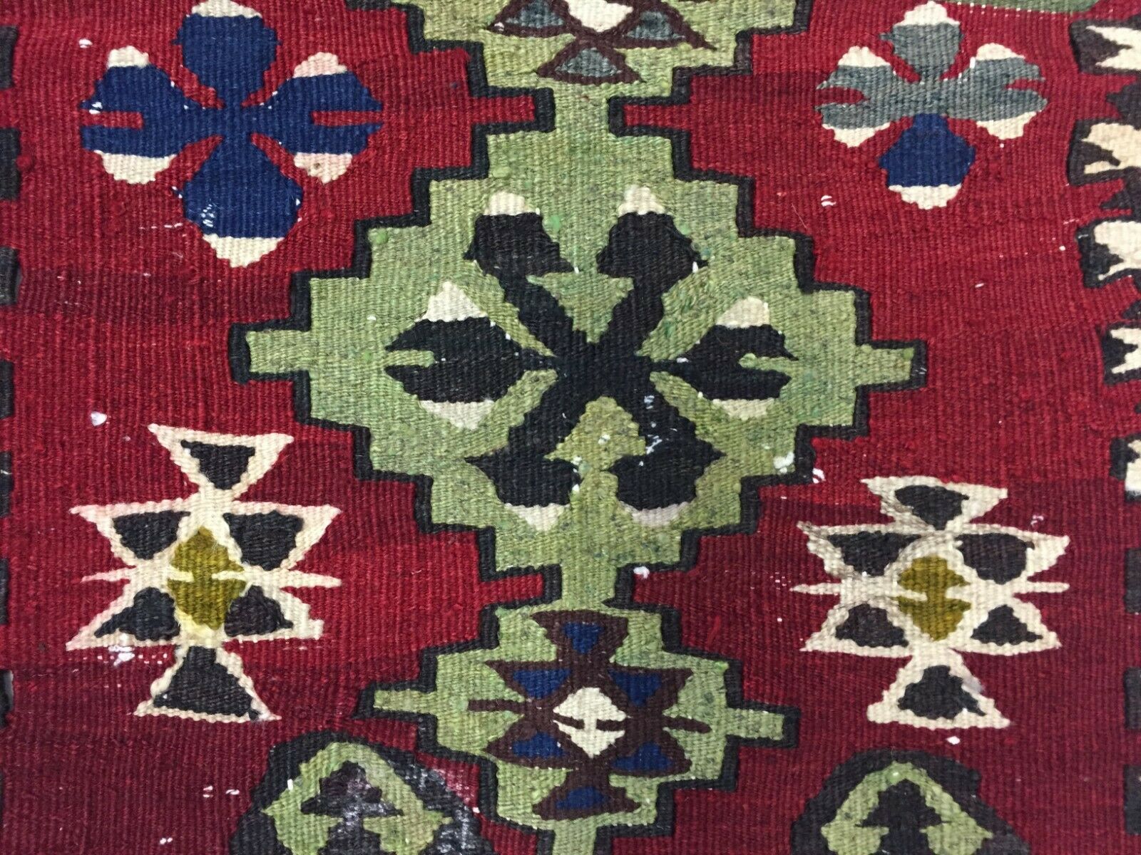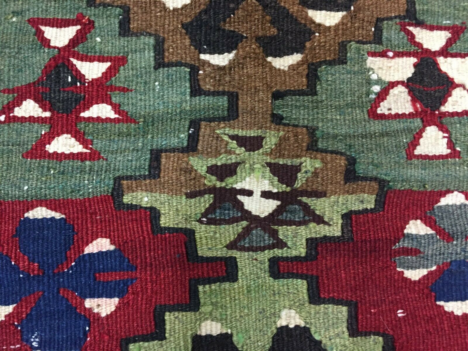 Small Vintage Turkish Kilim 97x70 cm Wool Kelim Rug Red Green beige Black