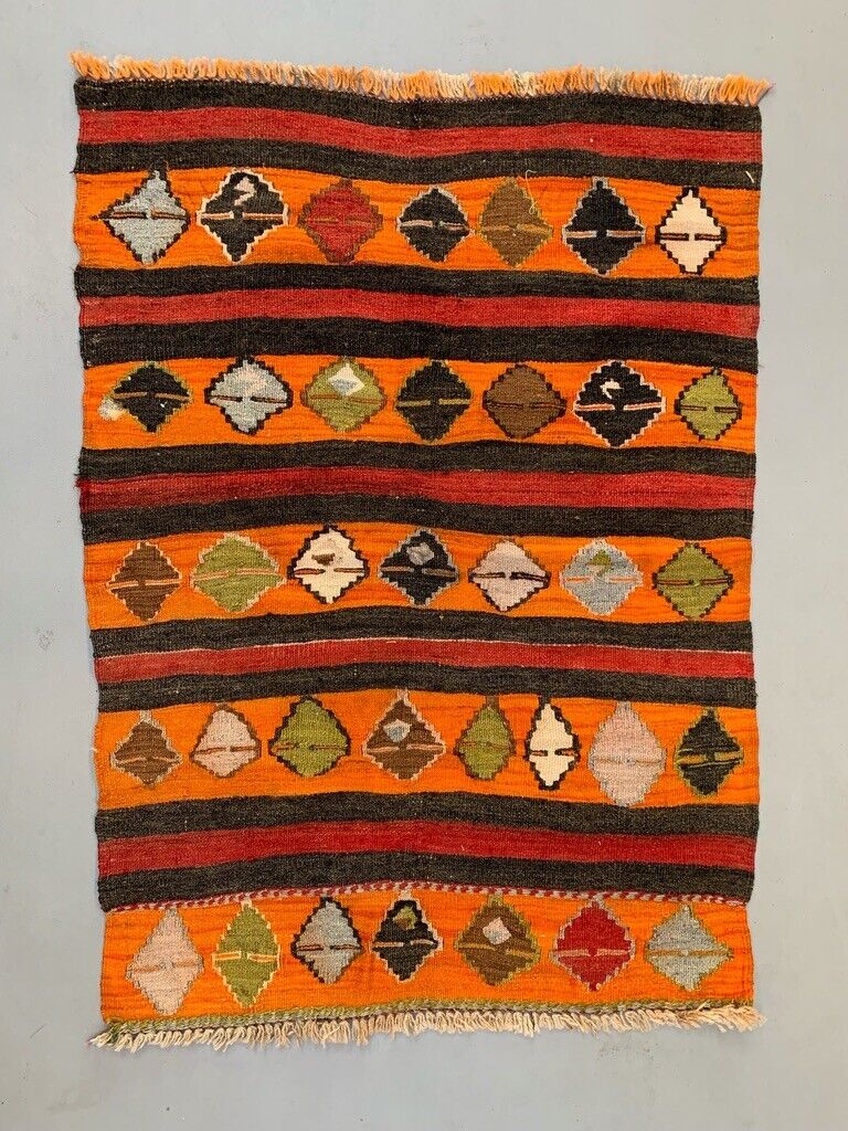 Small Vintage Turkish Kilim Rug 113x84 cm Wool Kelim