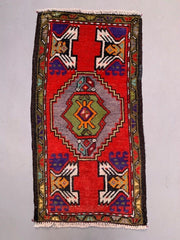 Small Vintage Turkish Rug 100x51 cm, Short Runner, Tribal, Shabby Chic
