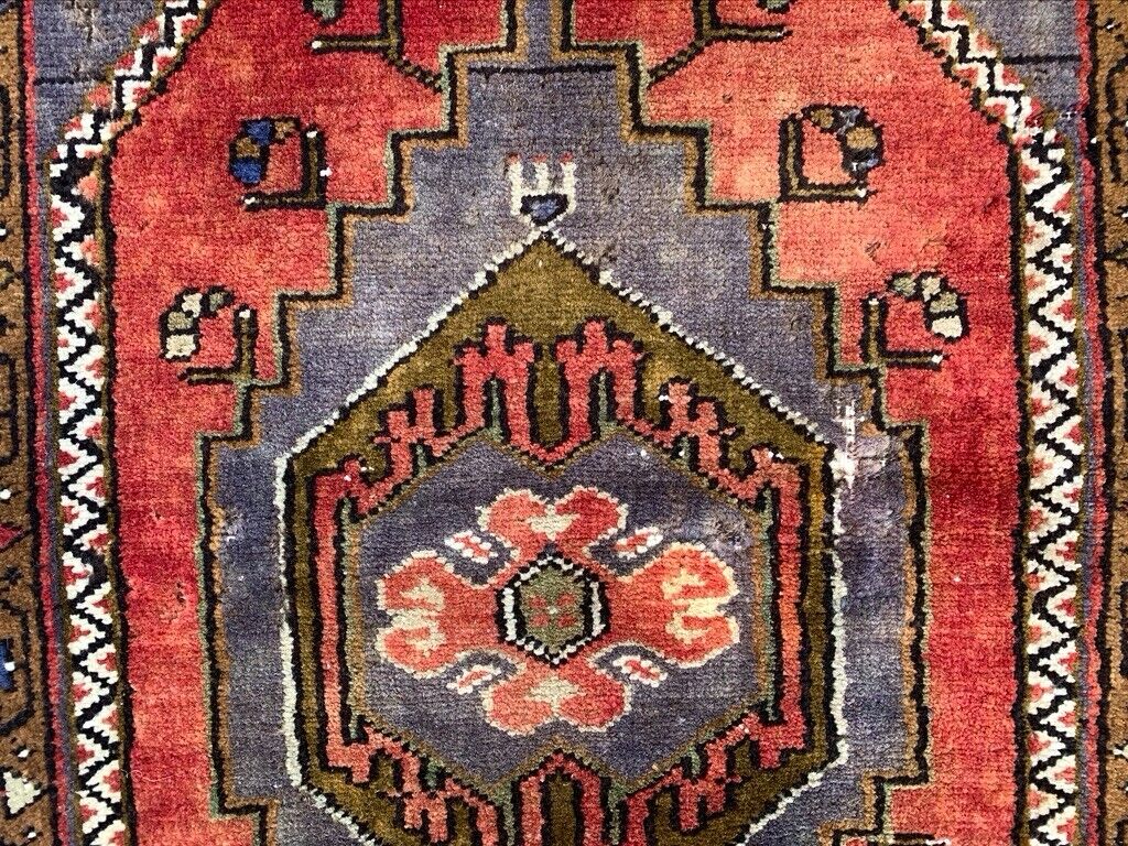 Small Vintage Turkish Rug 108x55 cm, Short Runner, Tribal, Shabby, Mini Carpet