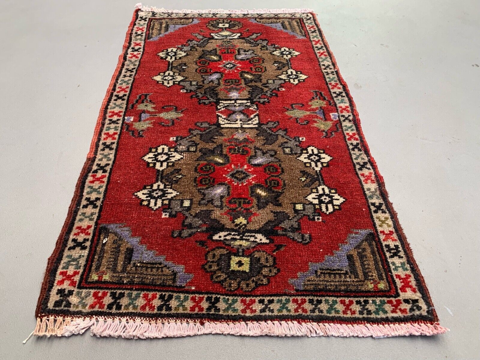 Small Vintage Turkish Rug 90x51 cm, Short Runner, Tribal, Shabby Chic