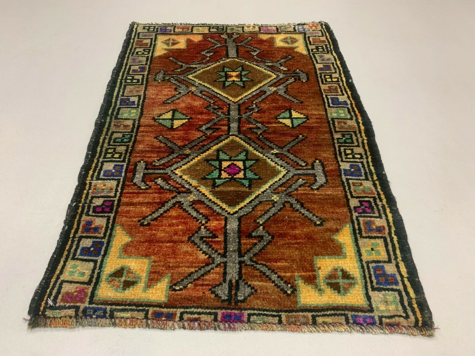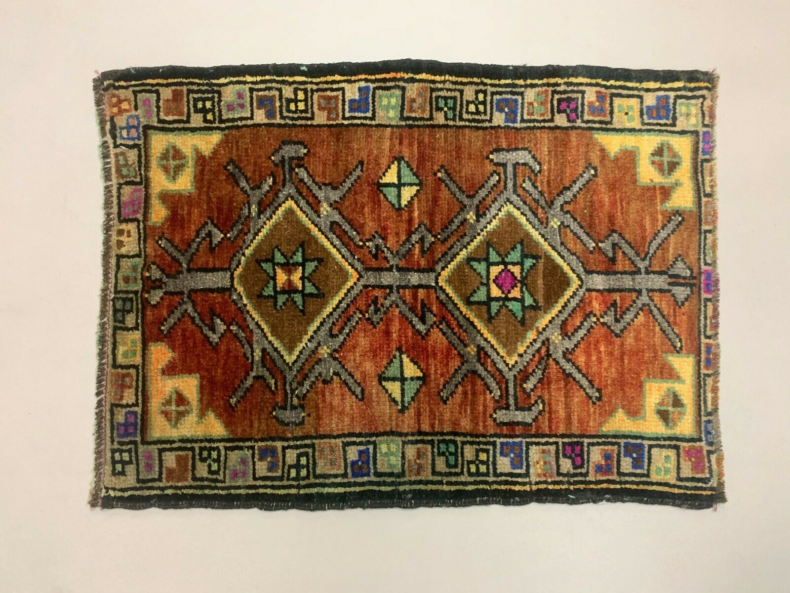 Small Vintage Turkish Rug 90x60 cm, Short Runner, Tribal, Shabby Chic