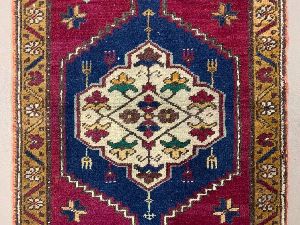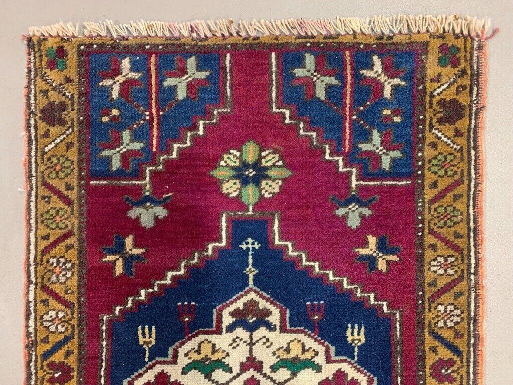Small Vintage Turkish Rug 92x55 cm, Short Runner, Tribal, Shabby, Mini Carpet