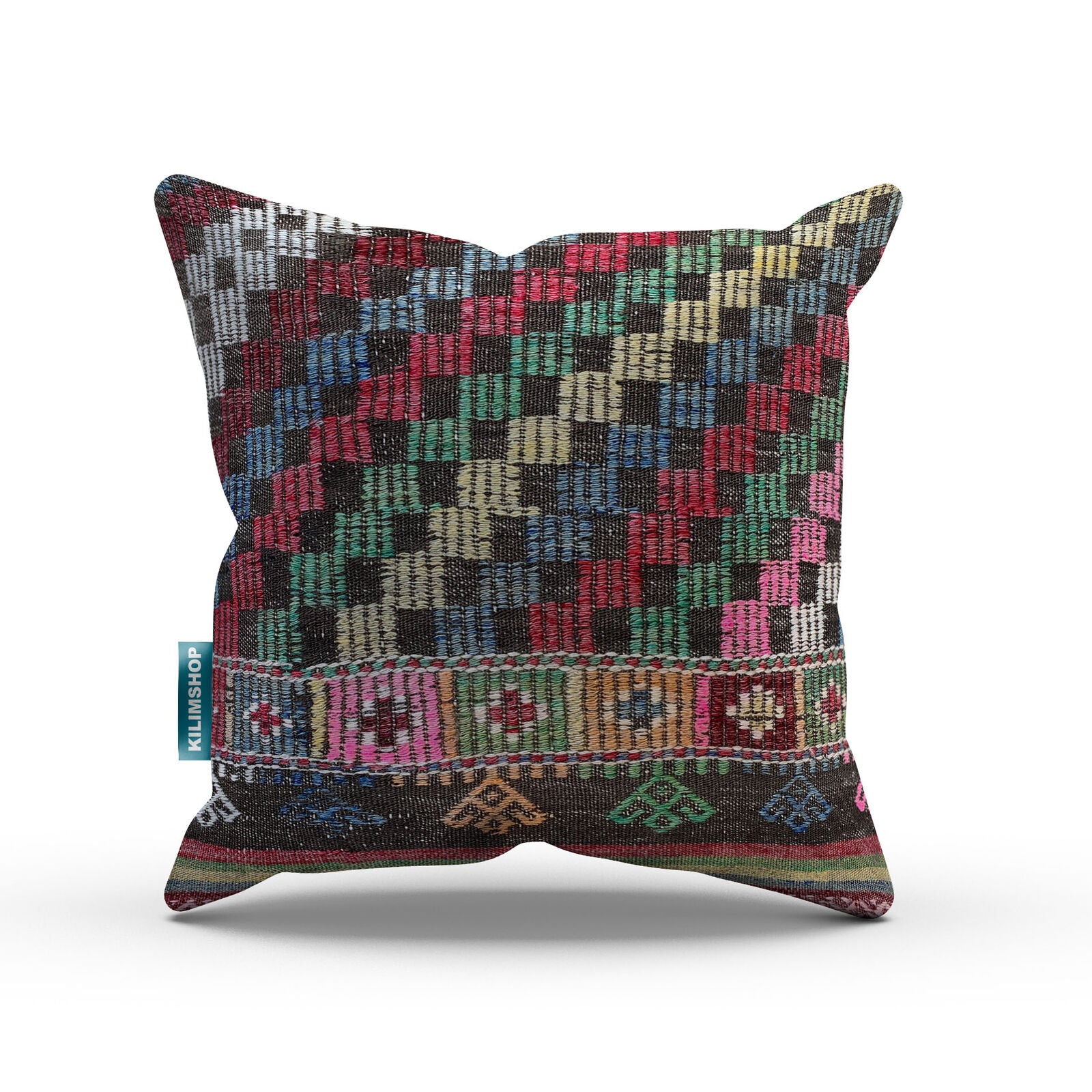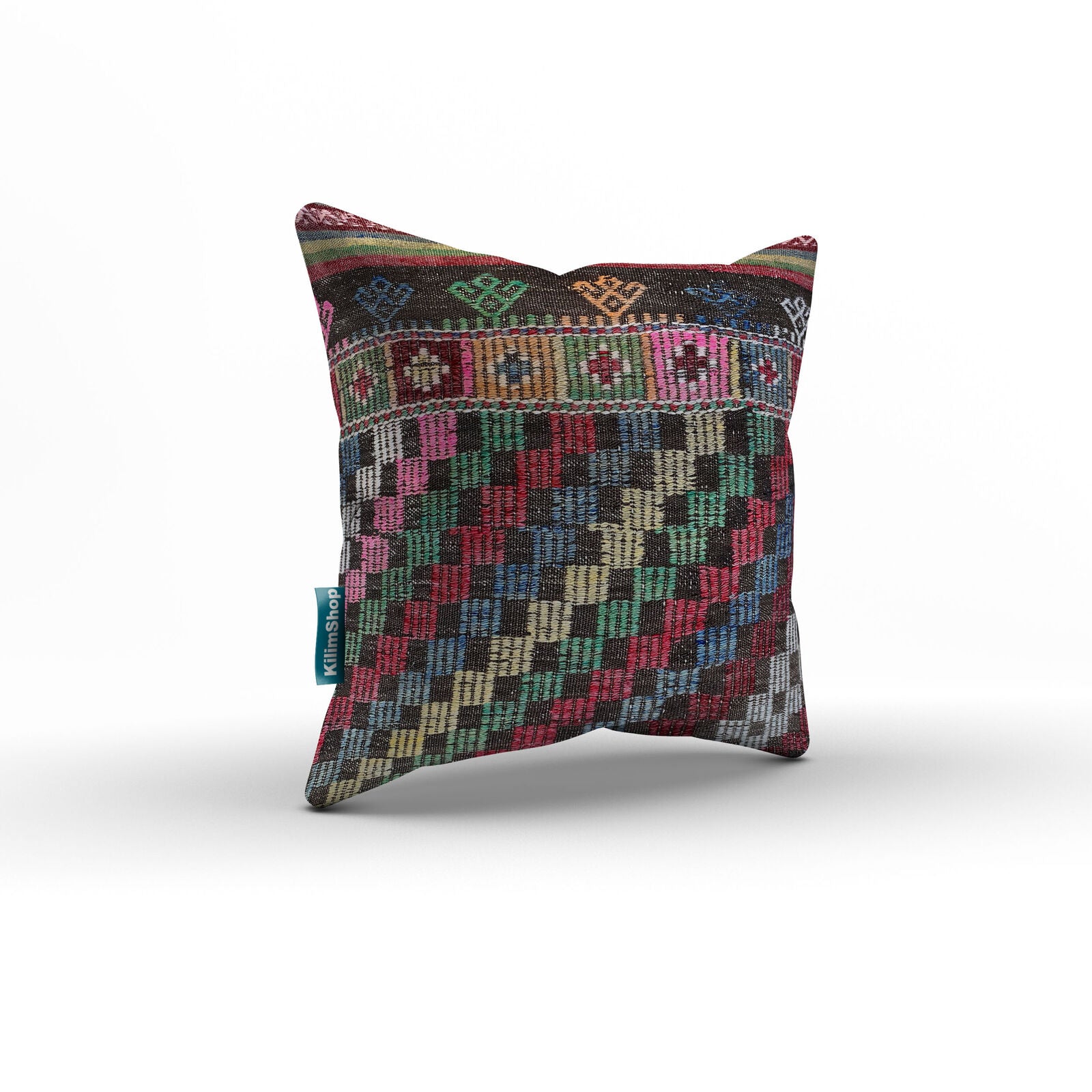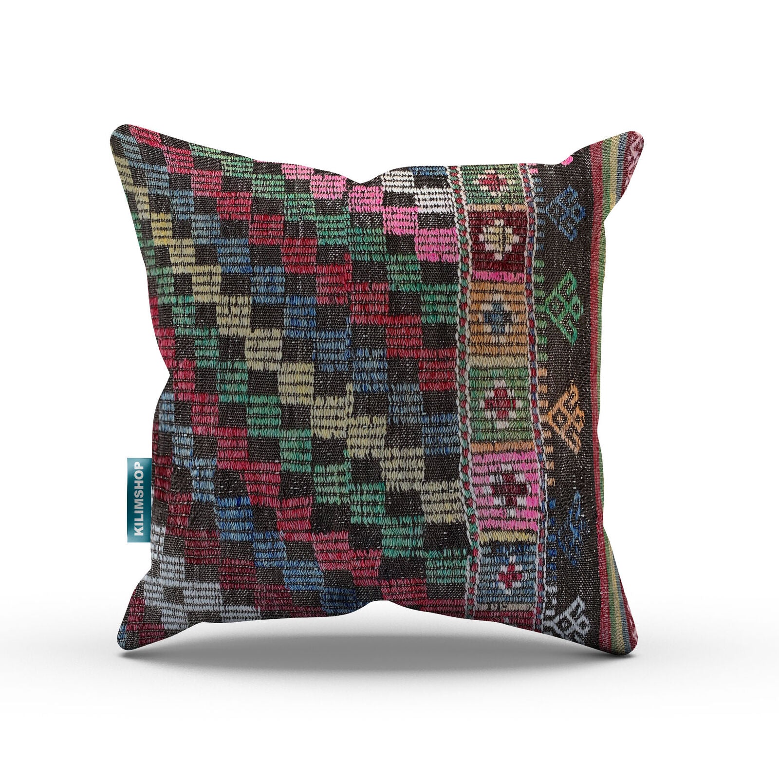 Turkish Kilim Cushion Cover 60x60 cm Square Wool Kelim Pillow Moroccan 66398