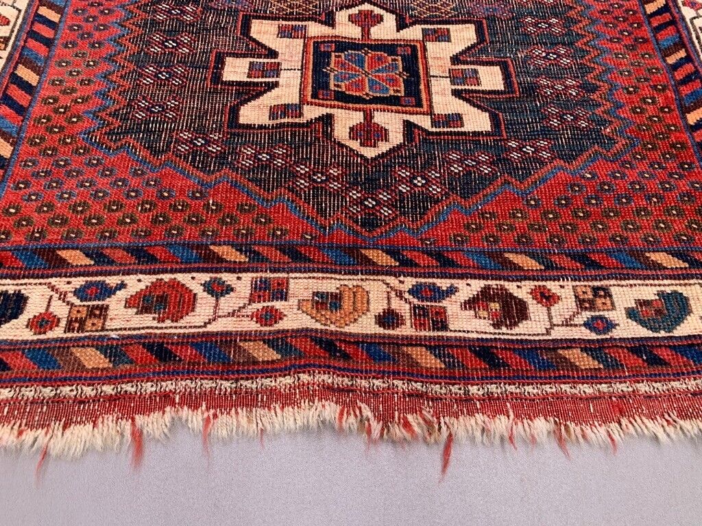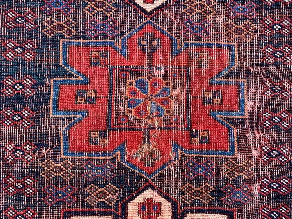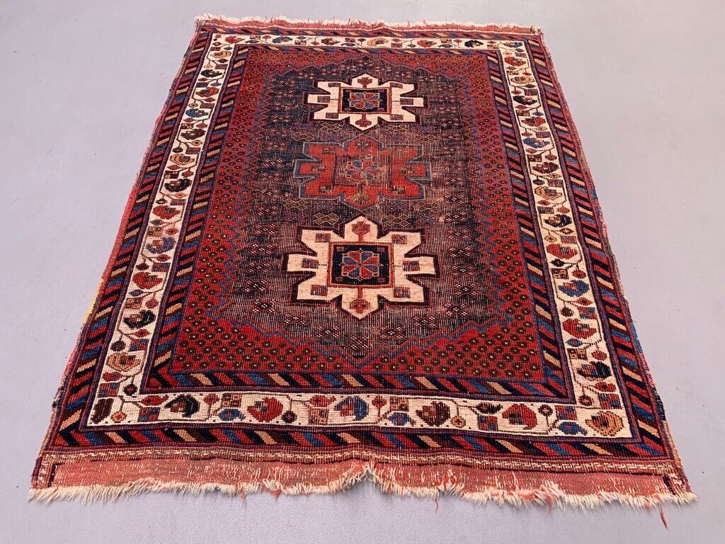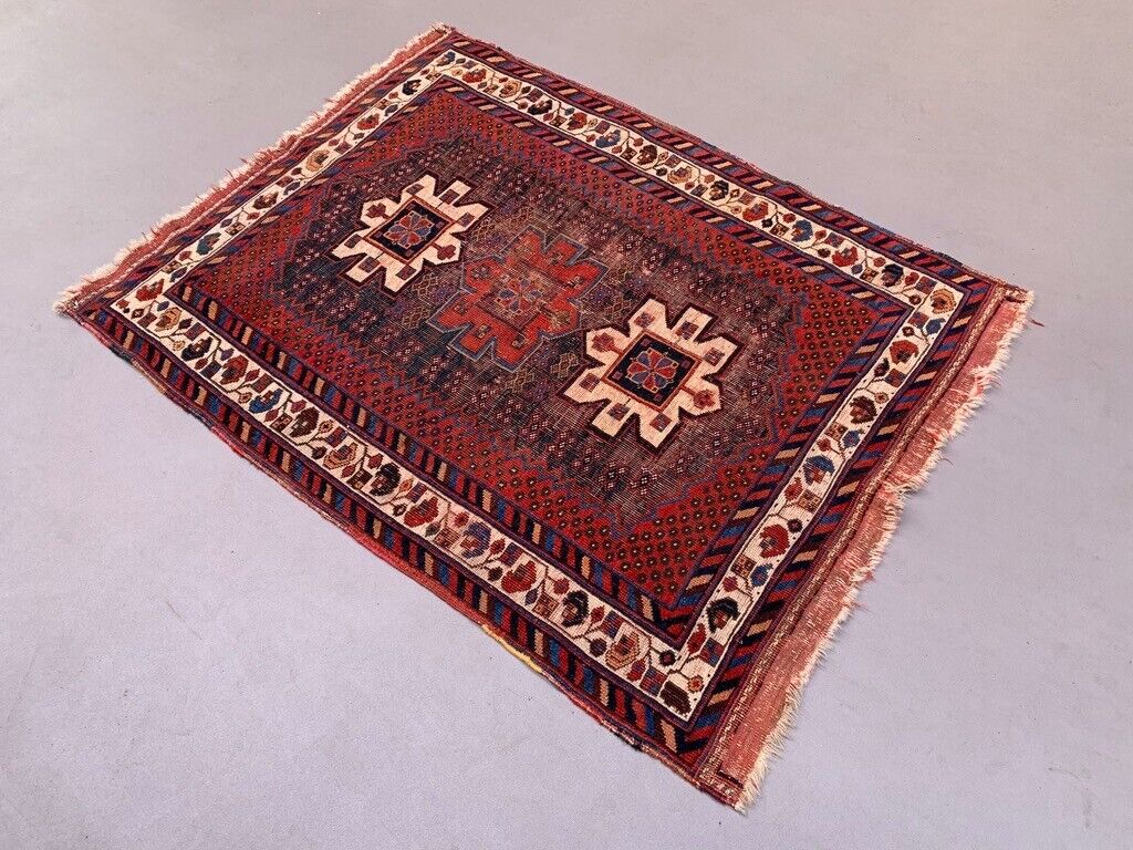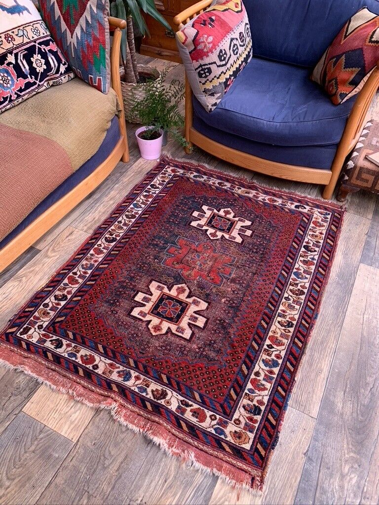Vintage Kamseh Rug 130x97 cm, small, Tribal oriental Carpet truly Shabby Chic