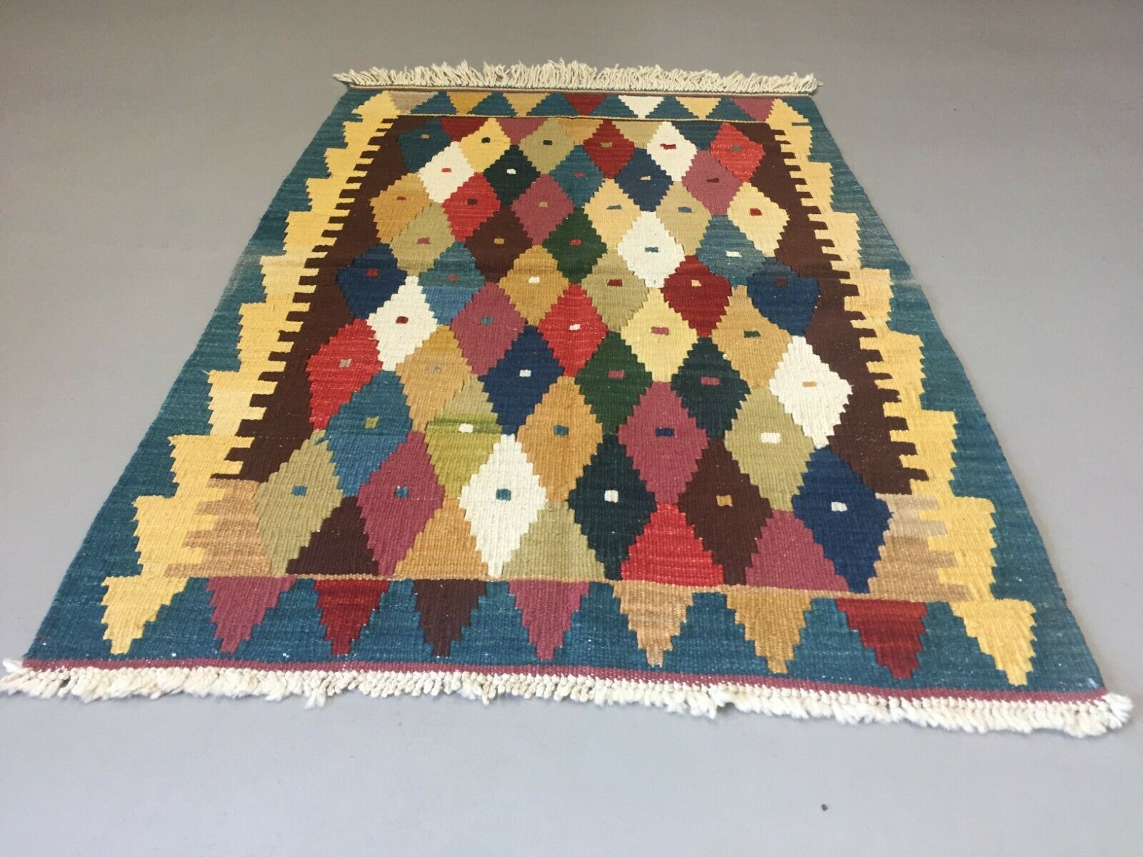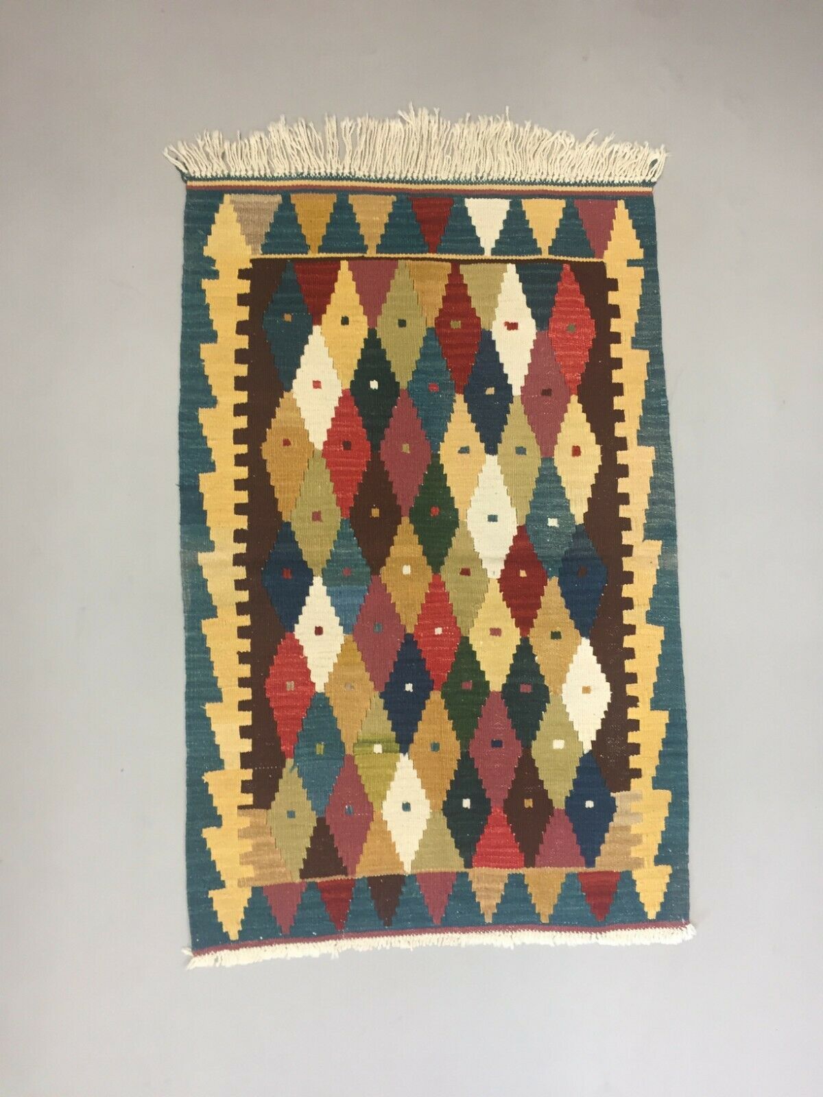 Vintage Turkish Kilim 153x100 cm Wool Kelim Rug Red Beige Blue Medium