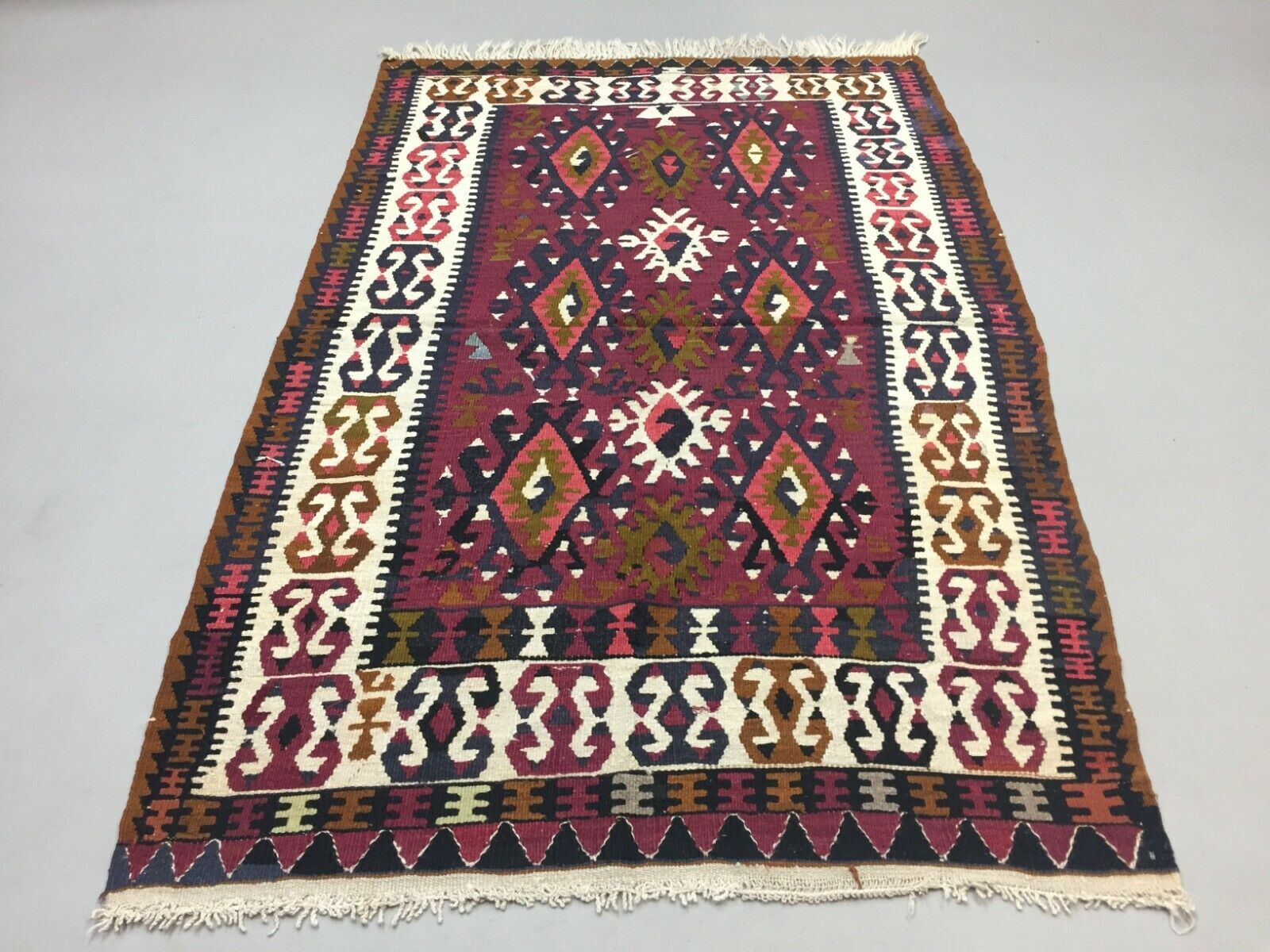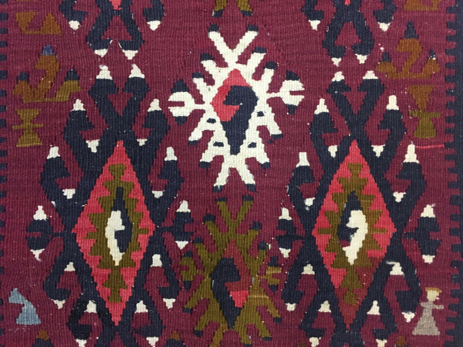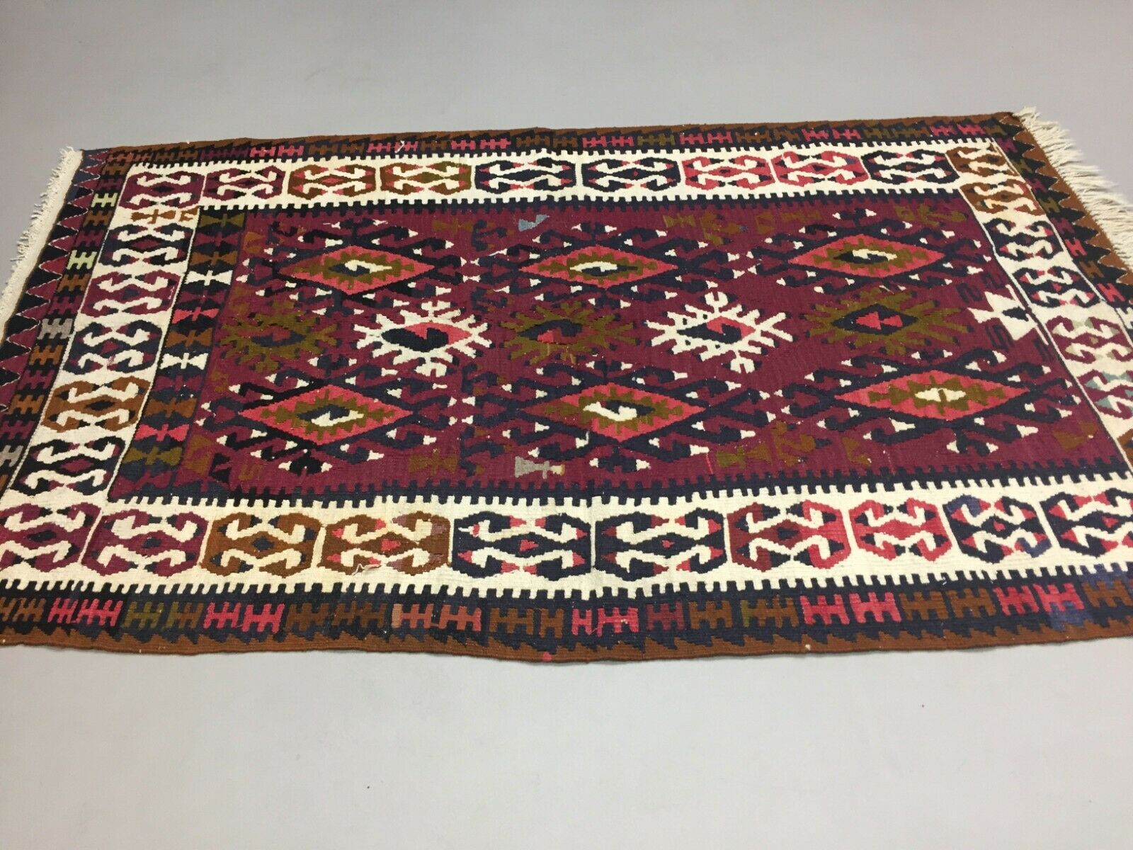 Vintage Turkish Kilim 180x112 cm Wool Kelim Rug Red Black Ocra Green Medium