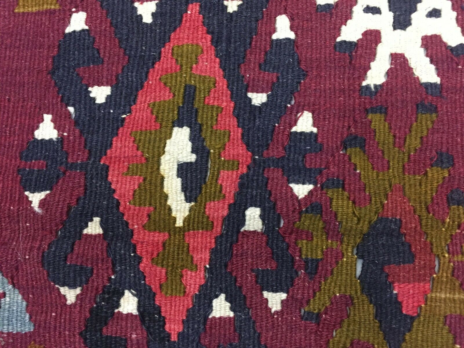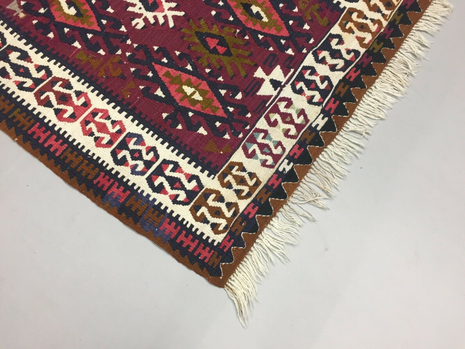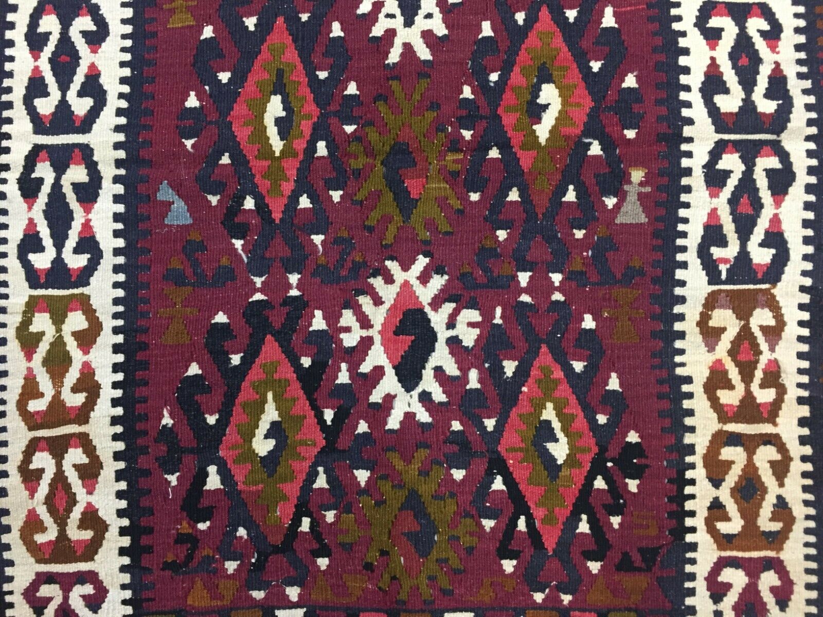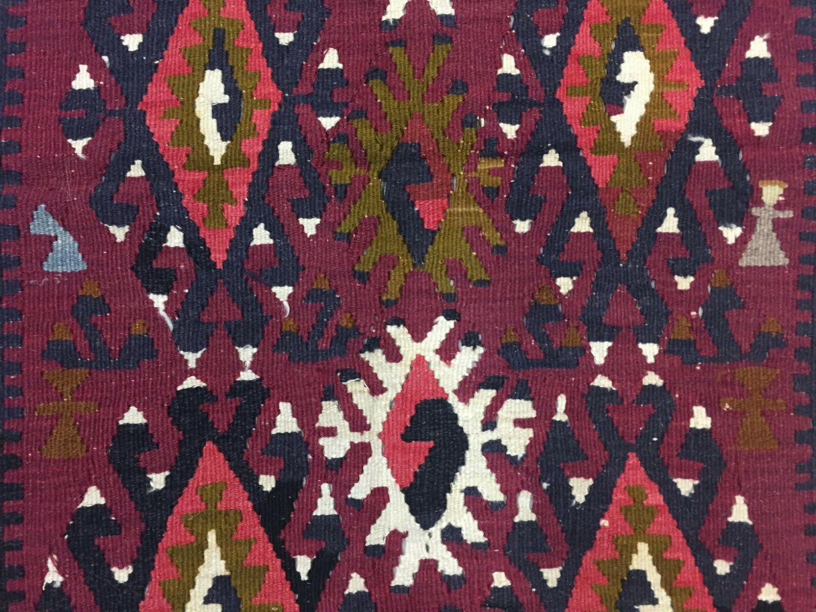Vintage Turkish Kilim 180x112 cm Wool Kelim Rug Red Black Ocra Green Medium
