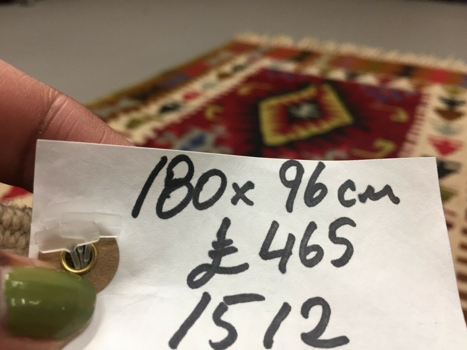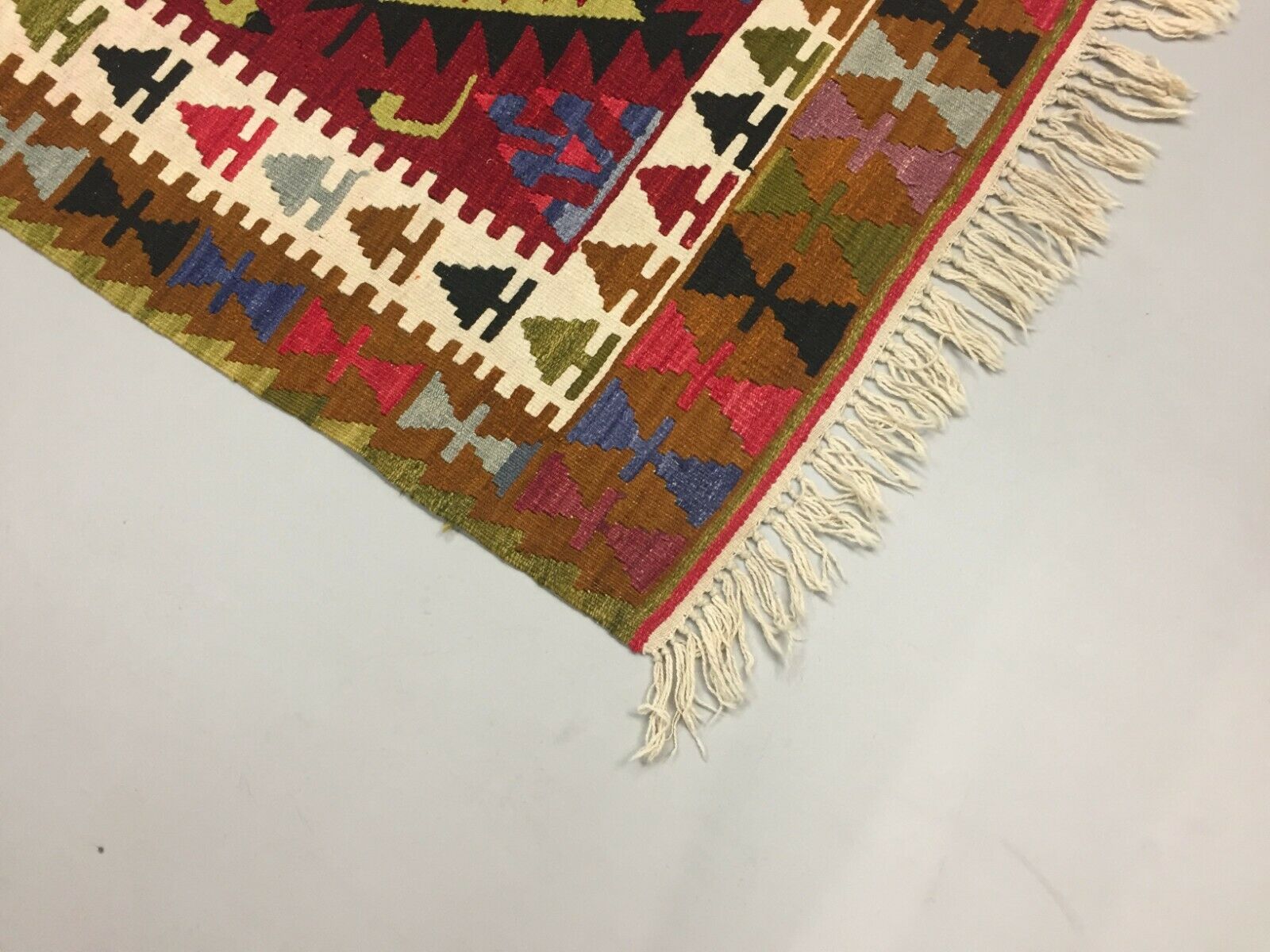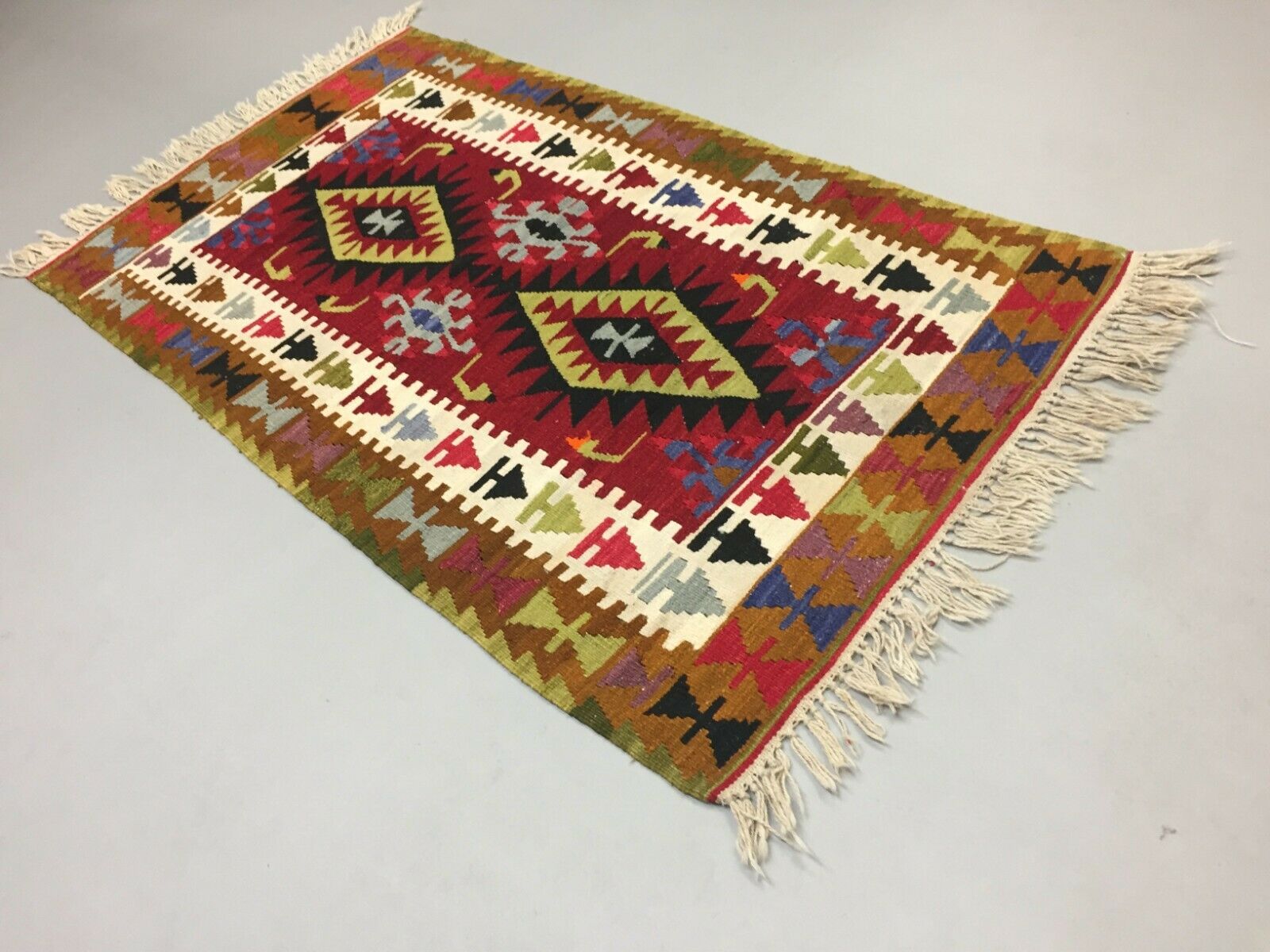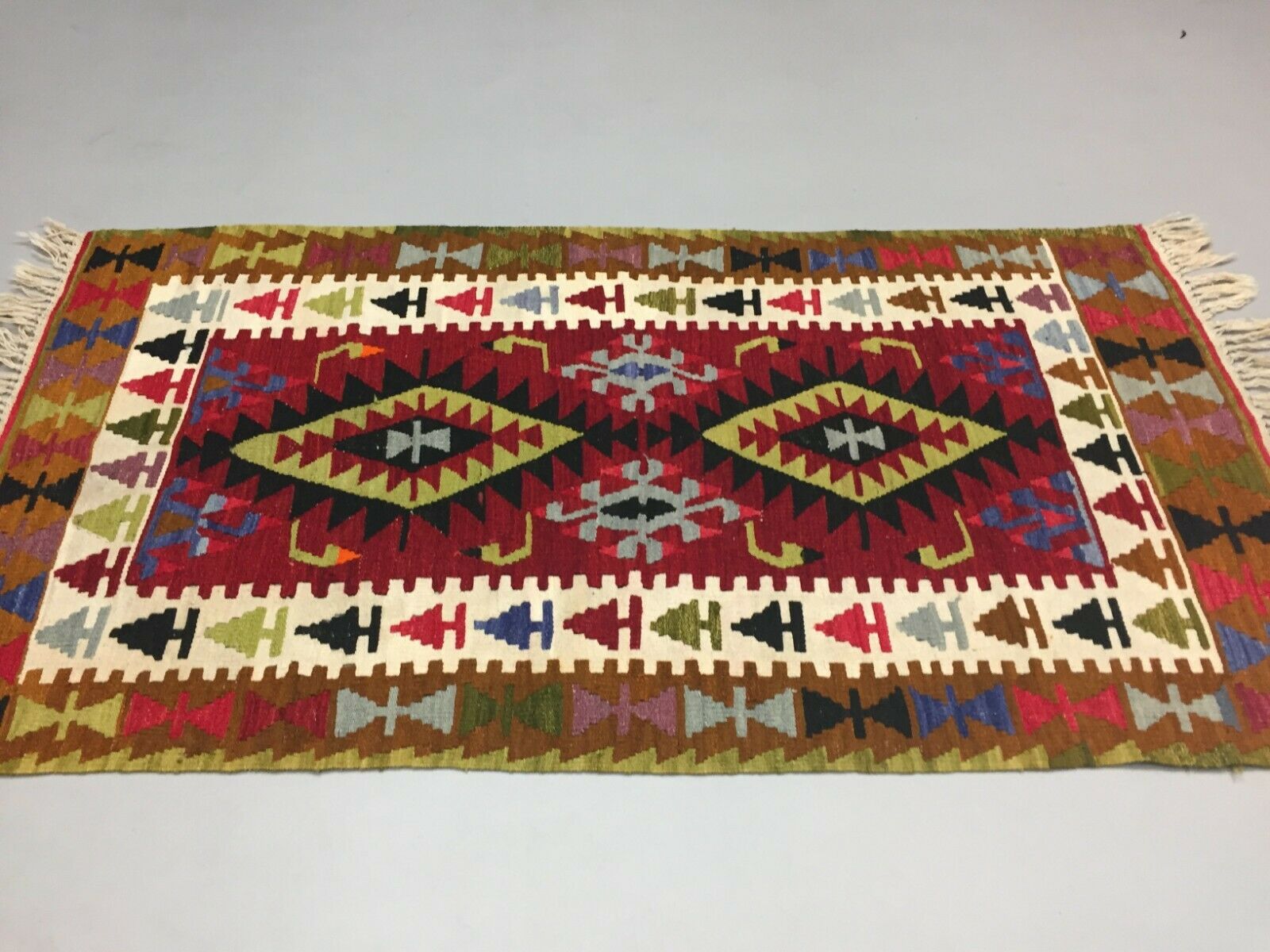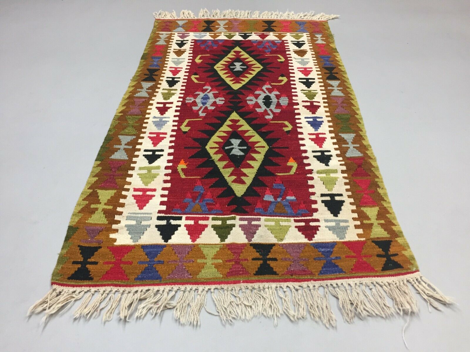 Vintage Turkish Kilim 180x96 cm Wool Kelim Rug Red Brown Green Beige Medium