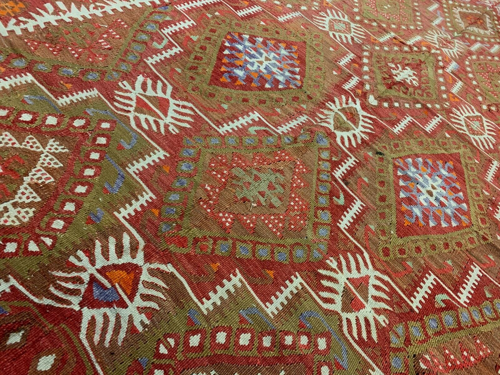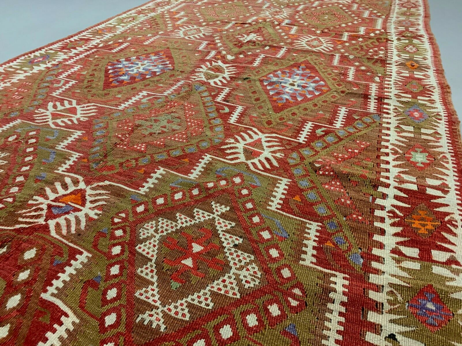 Vintage Turkish Kilim 348x144 cm Wool Kelim Rug, Runner Large