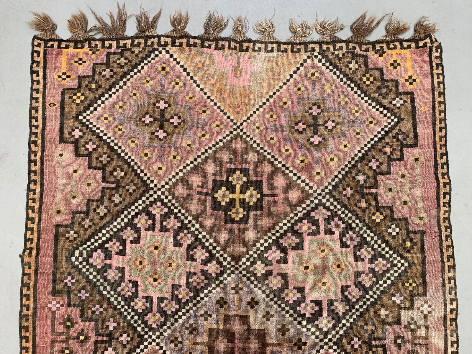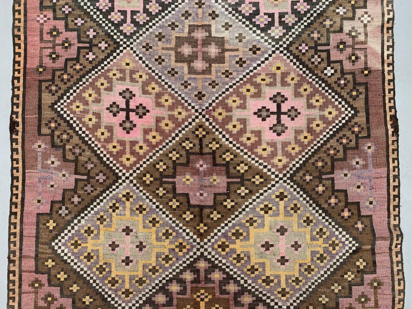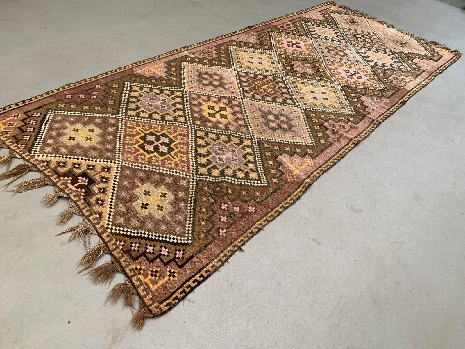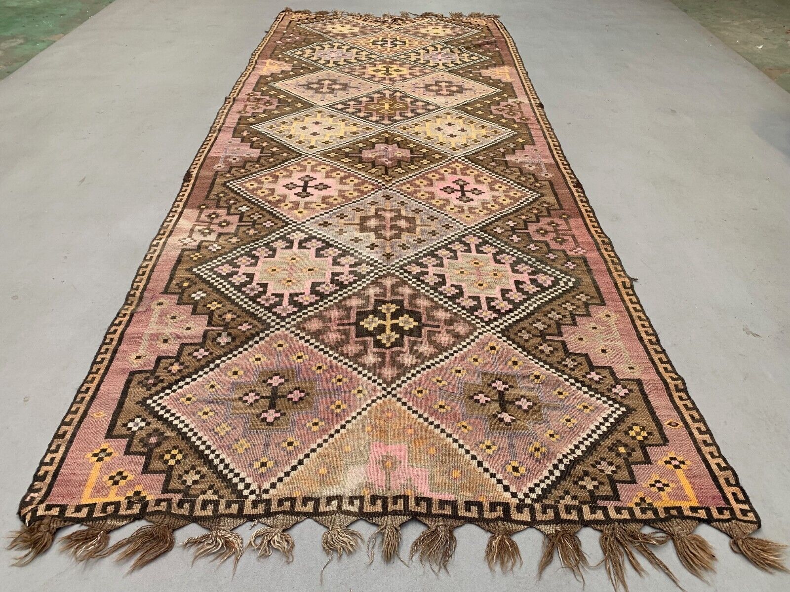 Vintage Turkish Kilim 377x152 cm Wool Kelim Rug Large 2496