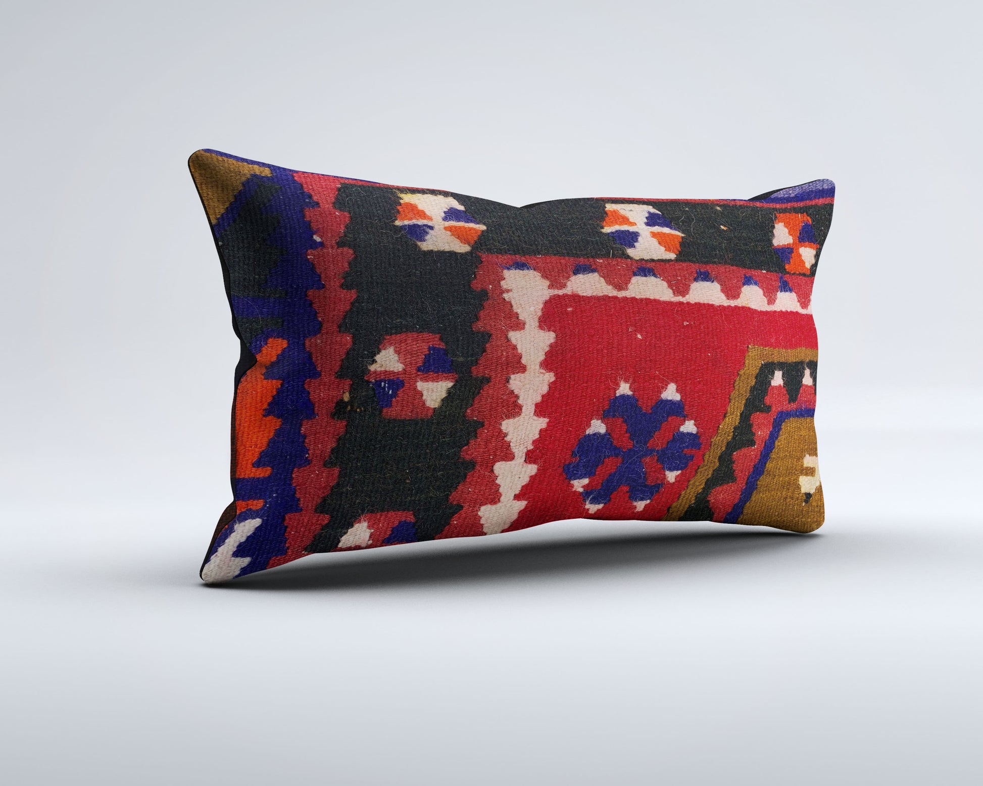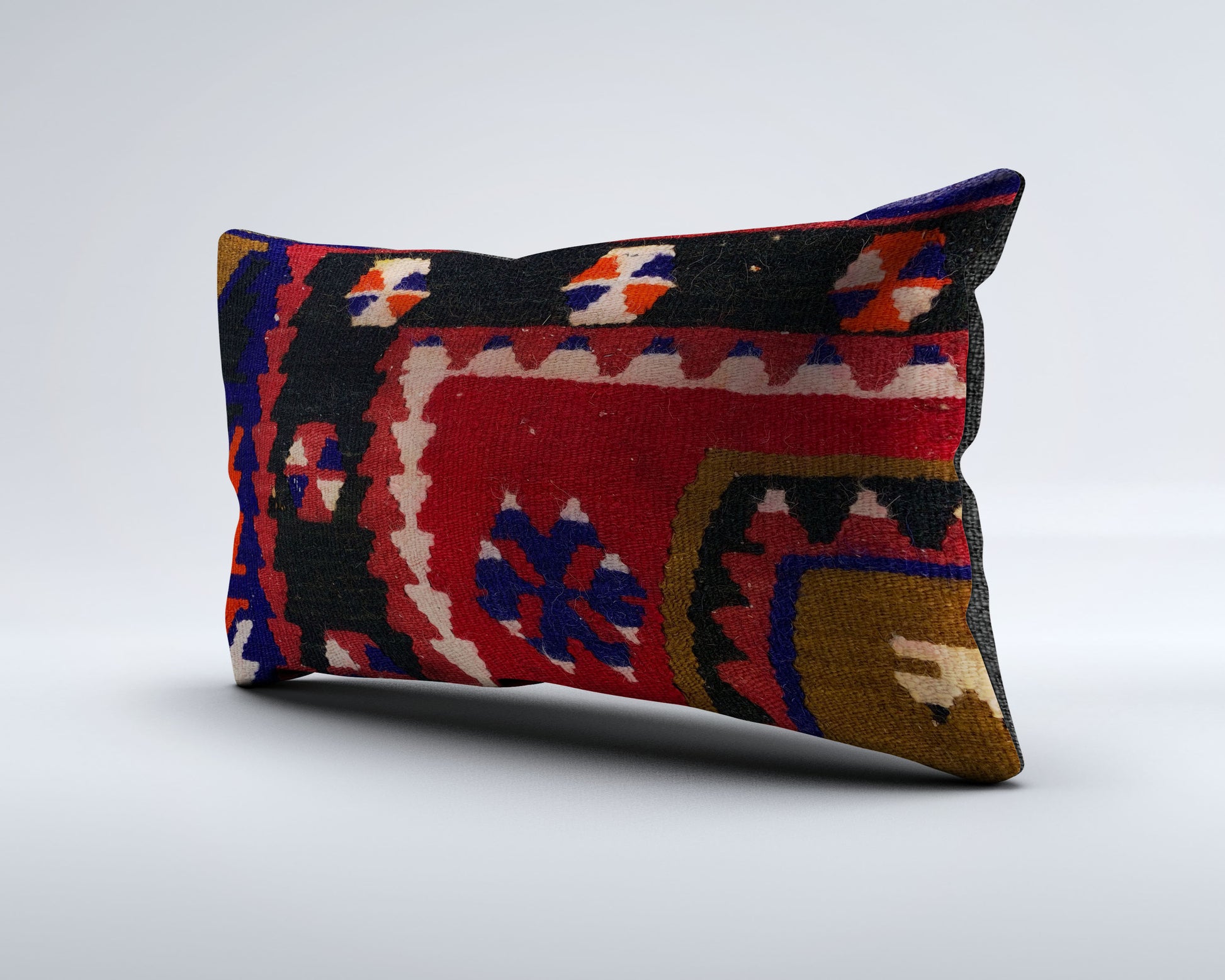 Vintage Turkish Kilim Cushion Cover 30x50 cm Lumbar Wool Kelim Pillowcase 35277