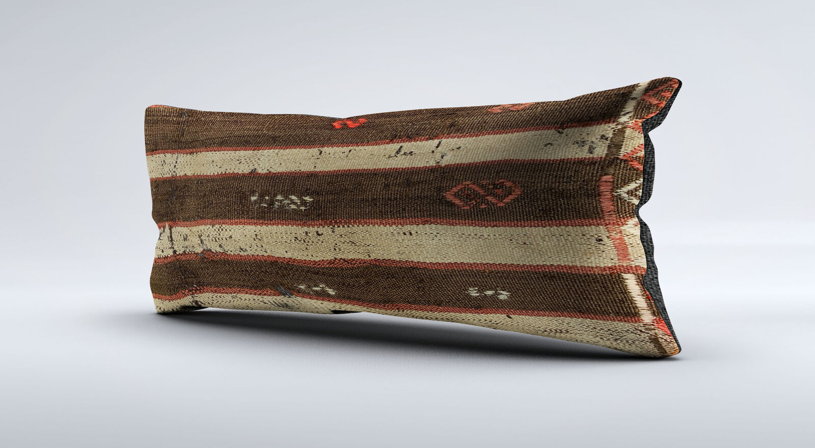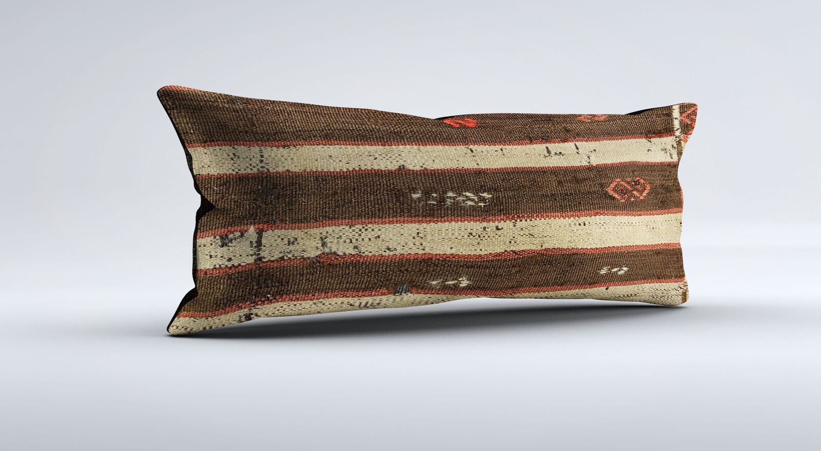 Vintage Turkish Kilim Cushion Cover 30x60 cm Lumbar Wool Kelim Pillowcase 36457