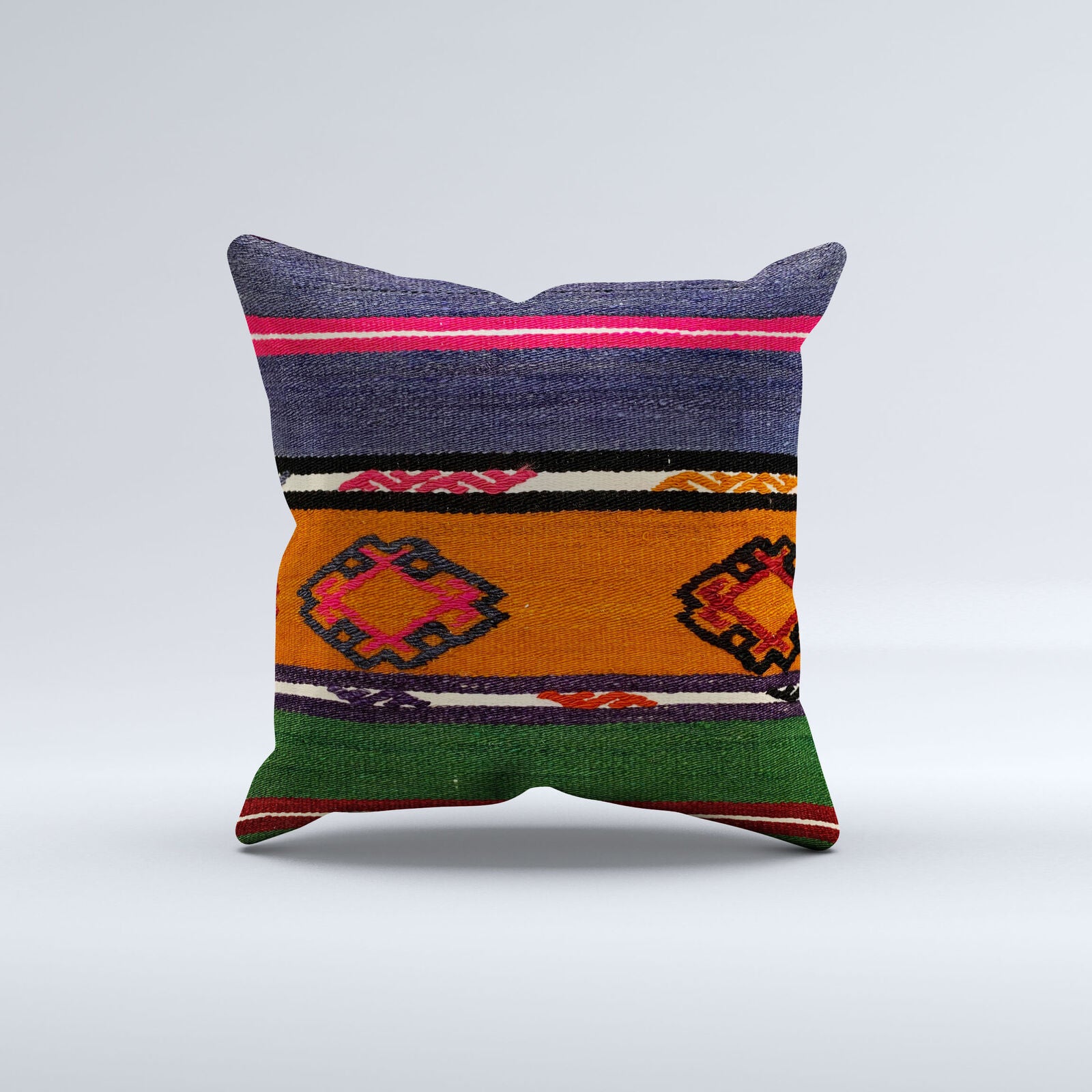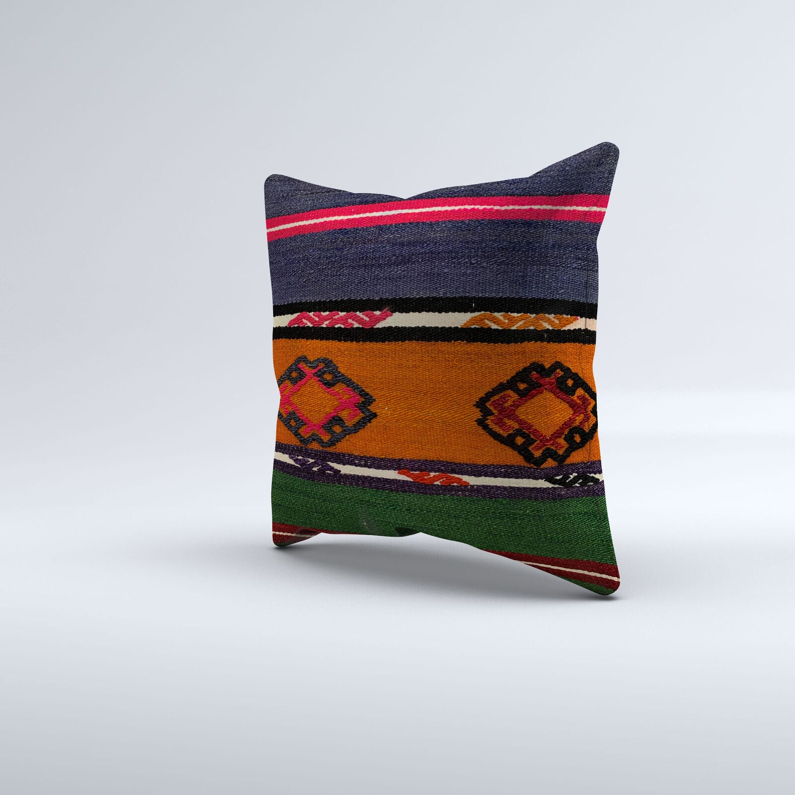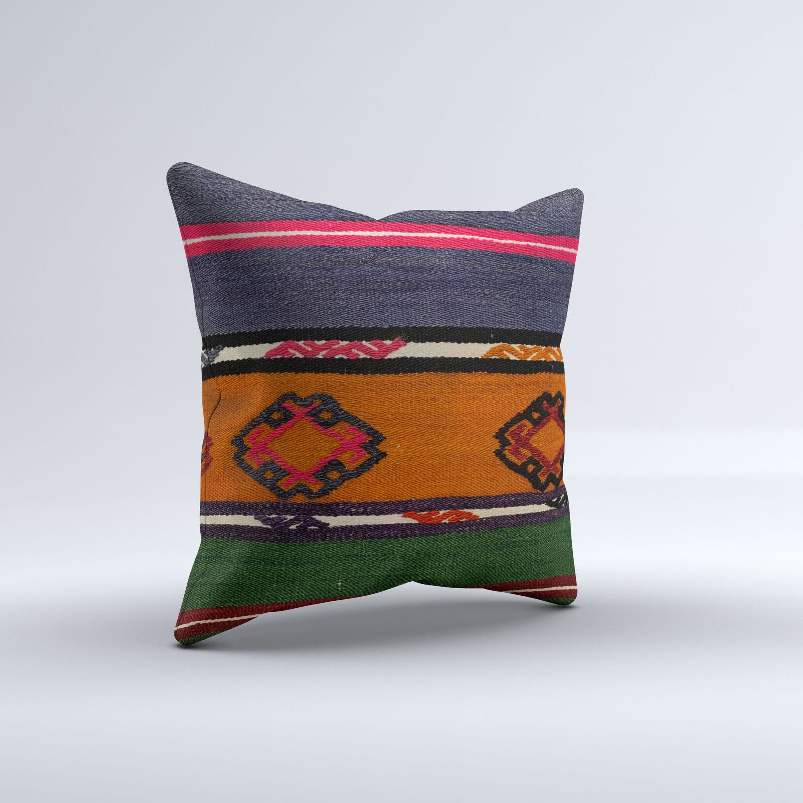 Vintage Turkish Kilim Cushion Cover 40x40 cm 16x16 in Square Pillowcase 40954