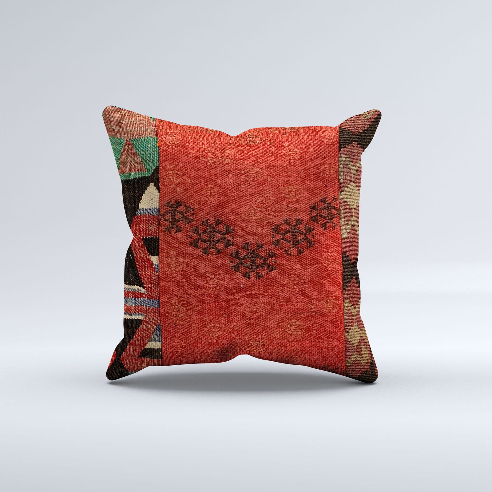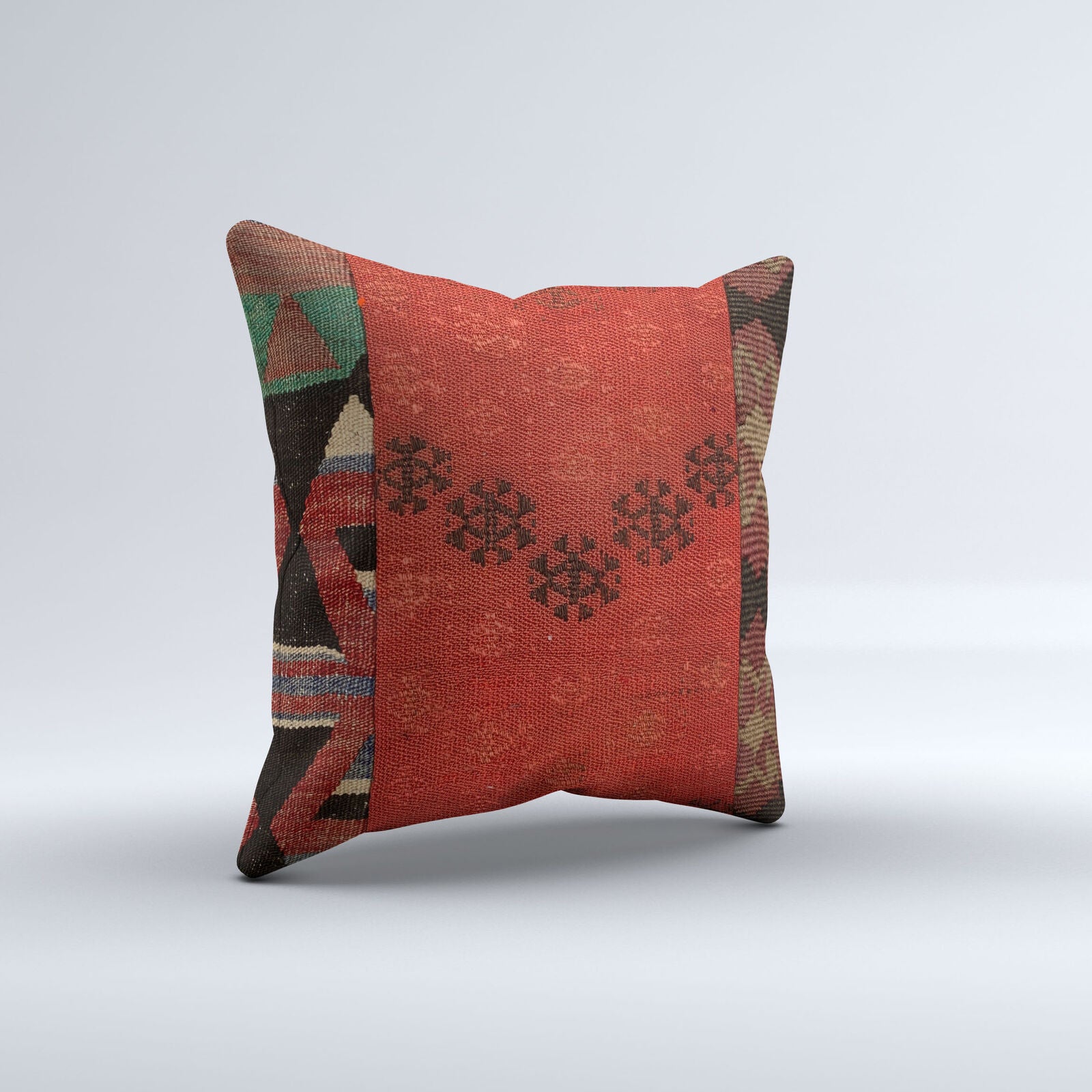Vintage Turkish Kilim Cushion Cover 40x40 cm 16x16 in Square Pillowcase 40957