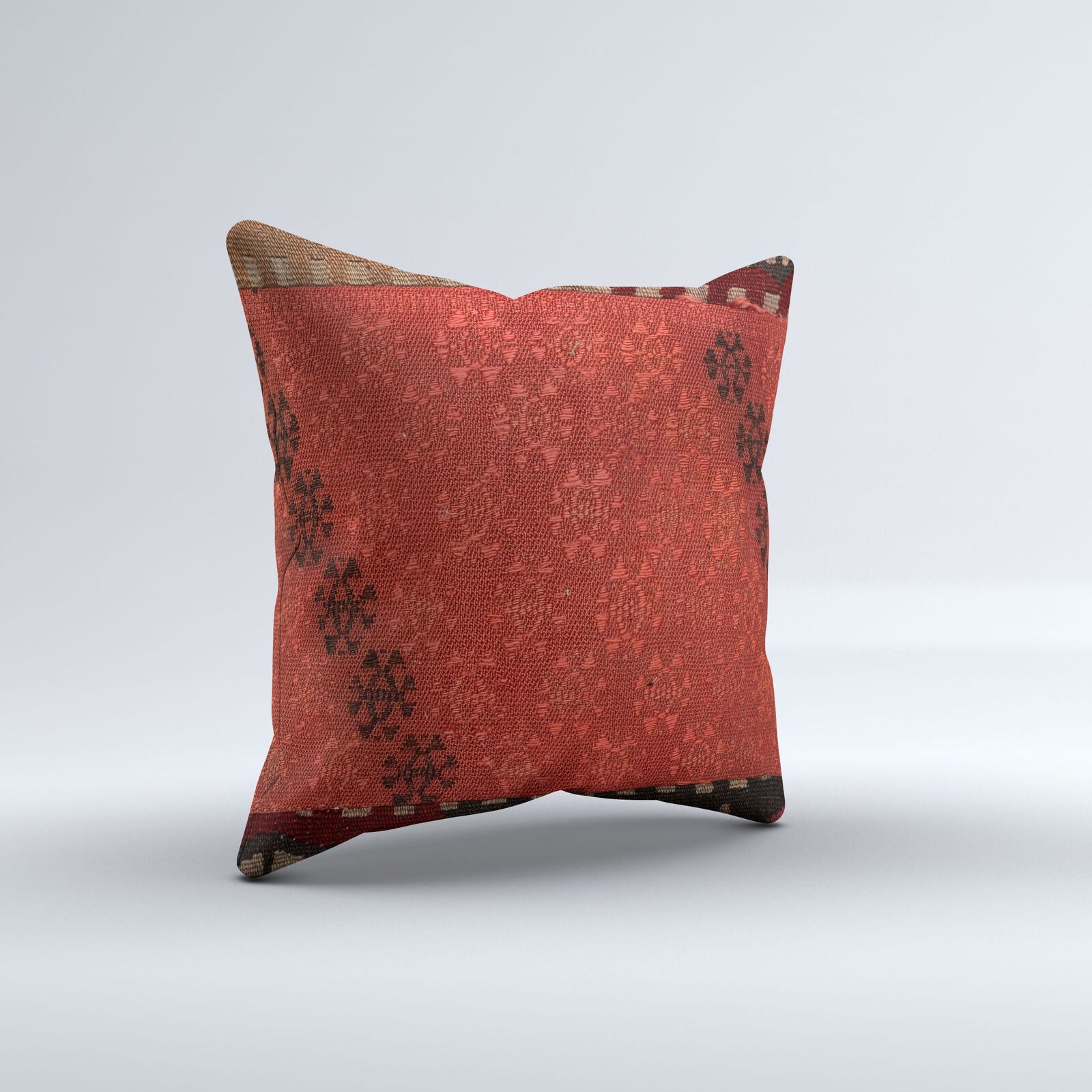 Vintage Turkish Kilim Cushion Cover 40x40 cm 16x16 in Square Pillowcase 40958