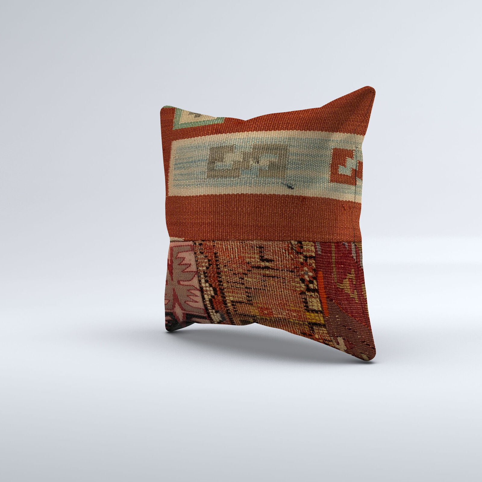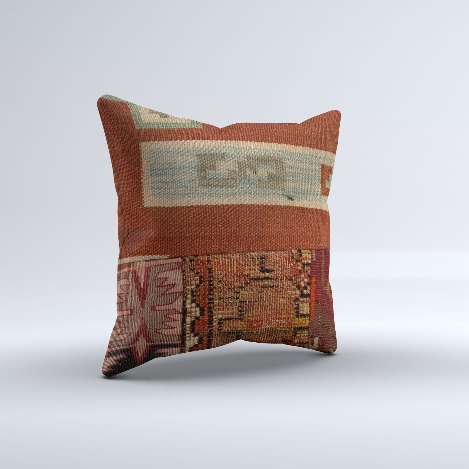 Vintage Turkish Kilim Cushion Cover 40x40 cm 16x16 in Square Pillowcase 40975