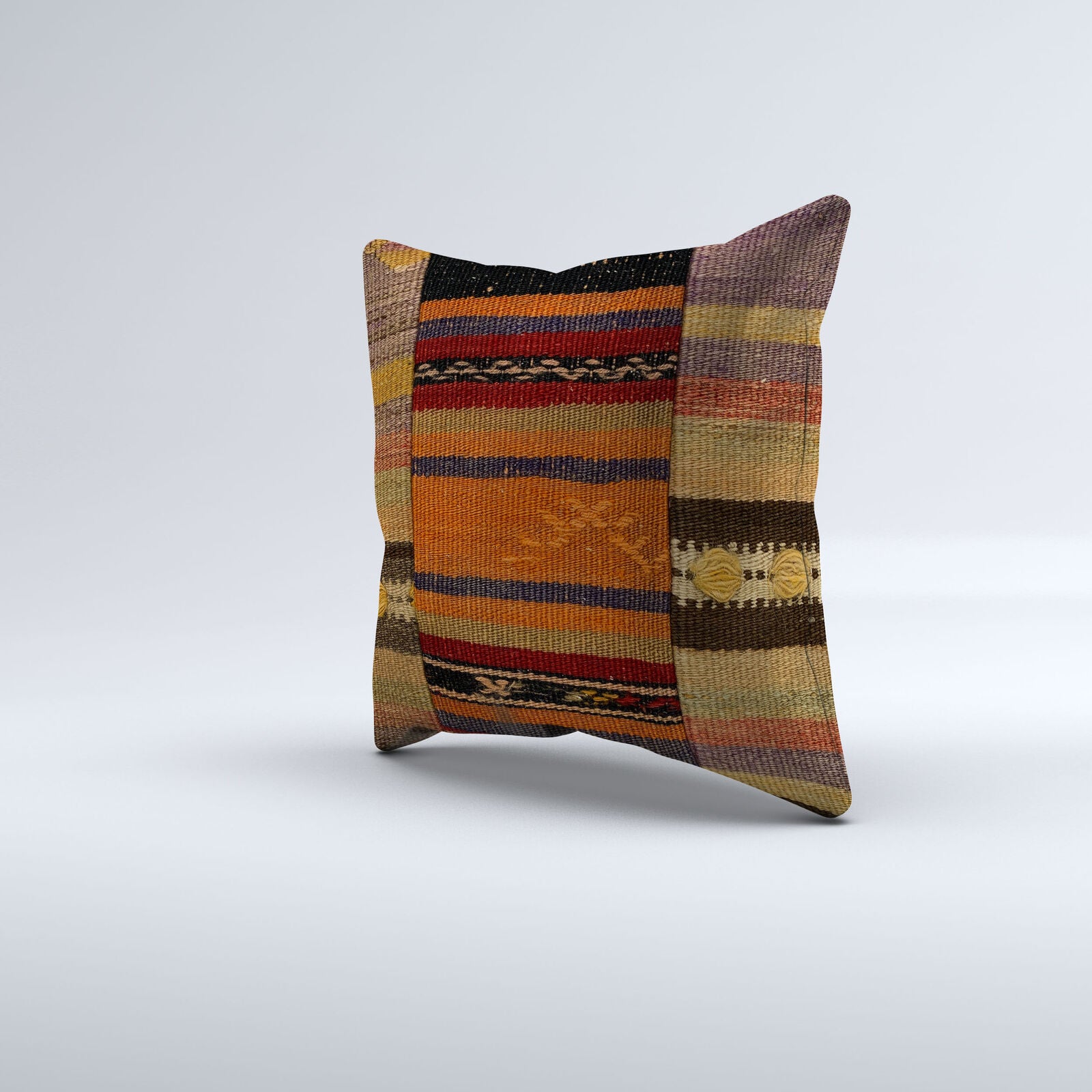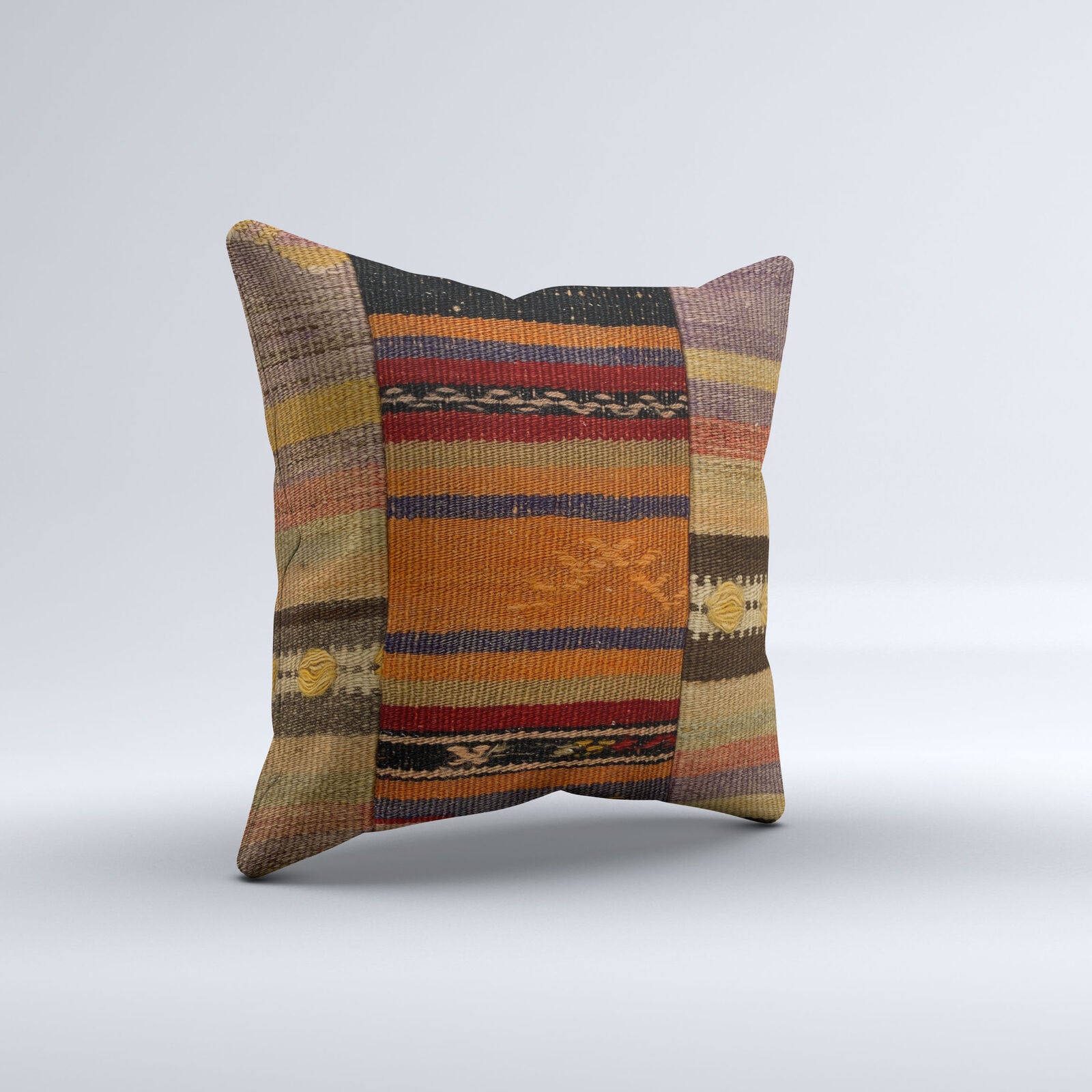 Vintage Turkish Kilim Cushion Cover 40x40 cm 16x16 in Square Pillowcase 40995