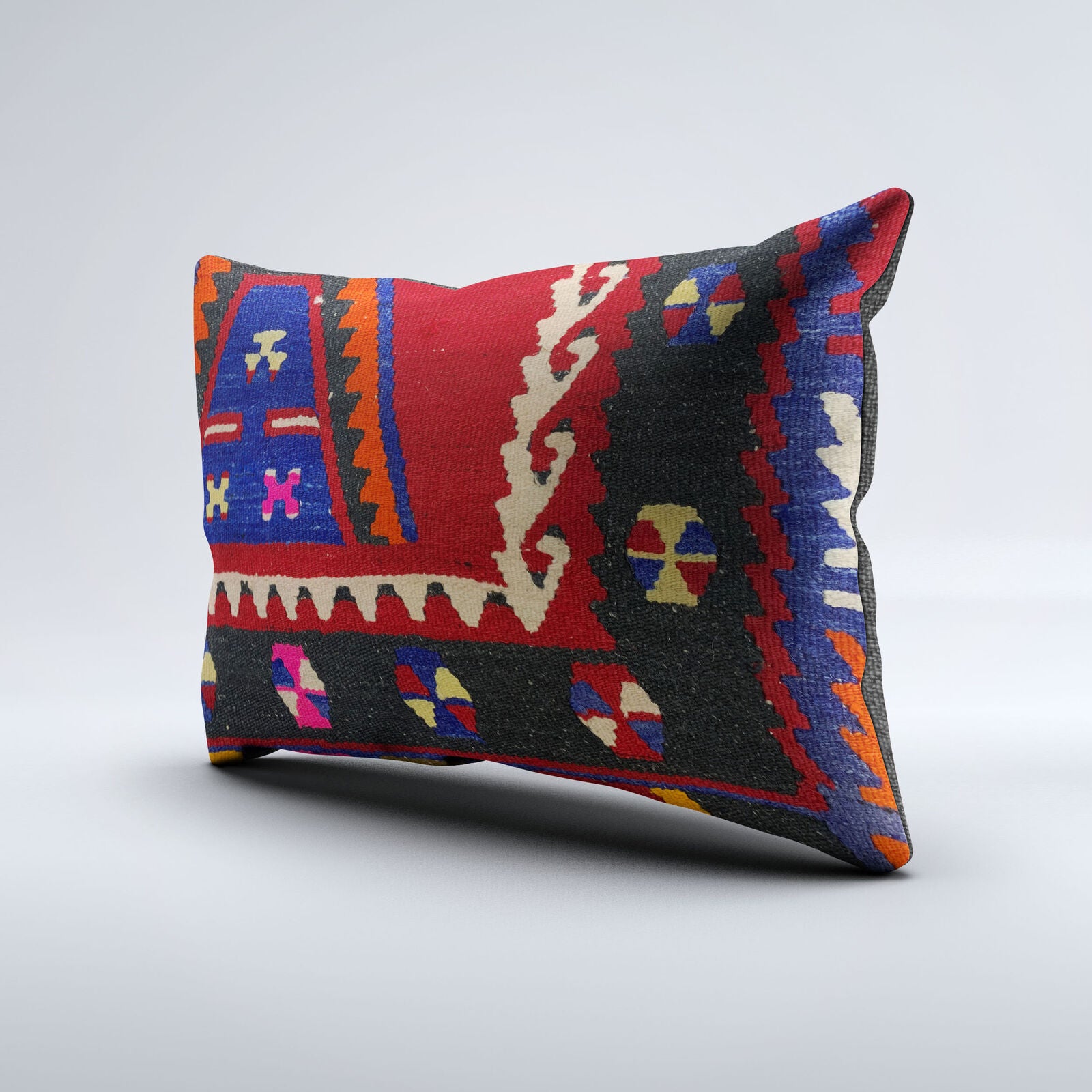Vintage Turkish Kilim Cushion Cover 60x40 cm Square Wool Kelim Pillowcase 64724